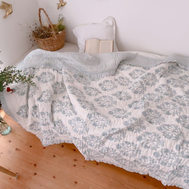 ※オーダーを頂いてからの製作致します。 そのため、お届けが5月末頃の予定となります。 お待ち頂く時間を余白の時間として... 体や心を整えたり、また空間を整えるお時間として、 お待ちいただけますように♡ ブロックプリントの綿入りキルトです。 綿入りのフワフワした温もりをお楽しみいただける一枚です。 ブロックプリントキルトの愛らしい柄は、 お部屋を明るく彩ってくれます。 また、肌触りも抜群なので、 赤ちゃんの敏感なお肌にも 優しい一枚になっています。 シングルサイズのベッドカバーに すると、程よく垂れて、 ちょうどいい大きさです。 ブロックプリントキルトとは・・・ インドの職人さんが、 木版画を押し付けて 模様を描いていきます。 美しくならびながらも、 プリント生地にはない 手仕事の風合いが、 優しい気持ちにさせてくれます。 ■サイズ:約145㎝×約225㎝(フリル部分は、含まない) (5cm程度の誤差があります) フリル:約4cm ■素材:綿100% ■made in india 【製品の特性】 インドで手作りされている商品のため、 ブロックプリントならではのプリントのズレや濃淡、 染料のハネなどがあります。 既製品にはない手作りの温かみを感じて頂けたら幸いです。 中綿に茶色い点が見えることがありますが、綿を摘み取る際に混じった 植物のカスになります。ご了承くださいませ。 【お手入れ】 デリケートな素材のため、中性洗剤を使用し長時間水に浸けず、日干しください。 太陽の下で干される場合は、長時間干さないようにお気をつけください。 長時間太陽の下に当たりますと色褪せの原因となります。 ※お洗濯は、単独をオススメします。 【注意事項】 ・ご使用のモニターや日光によりお色味の違いが見られる場合がございます。 ・インド直輸入品のため、特有の香りがある場合がございます。