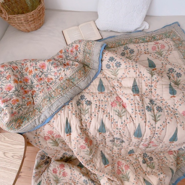綿入り【L】スプリングガーデン ブロックプリントキルト