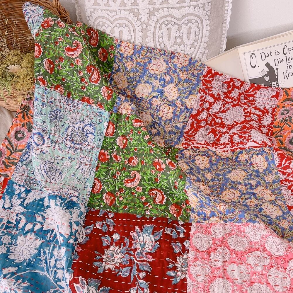 ブロックプリントキルトの愛らしい柄は、