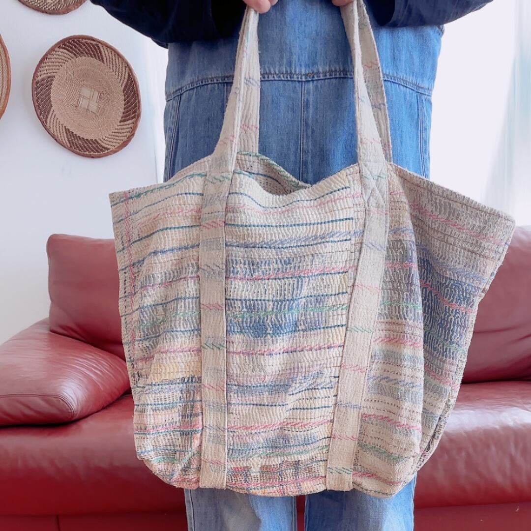 ヴィンテージ・カンタキルトbigトートバッグ(ホワイト系)