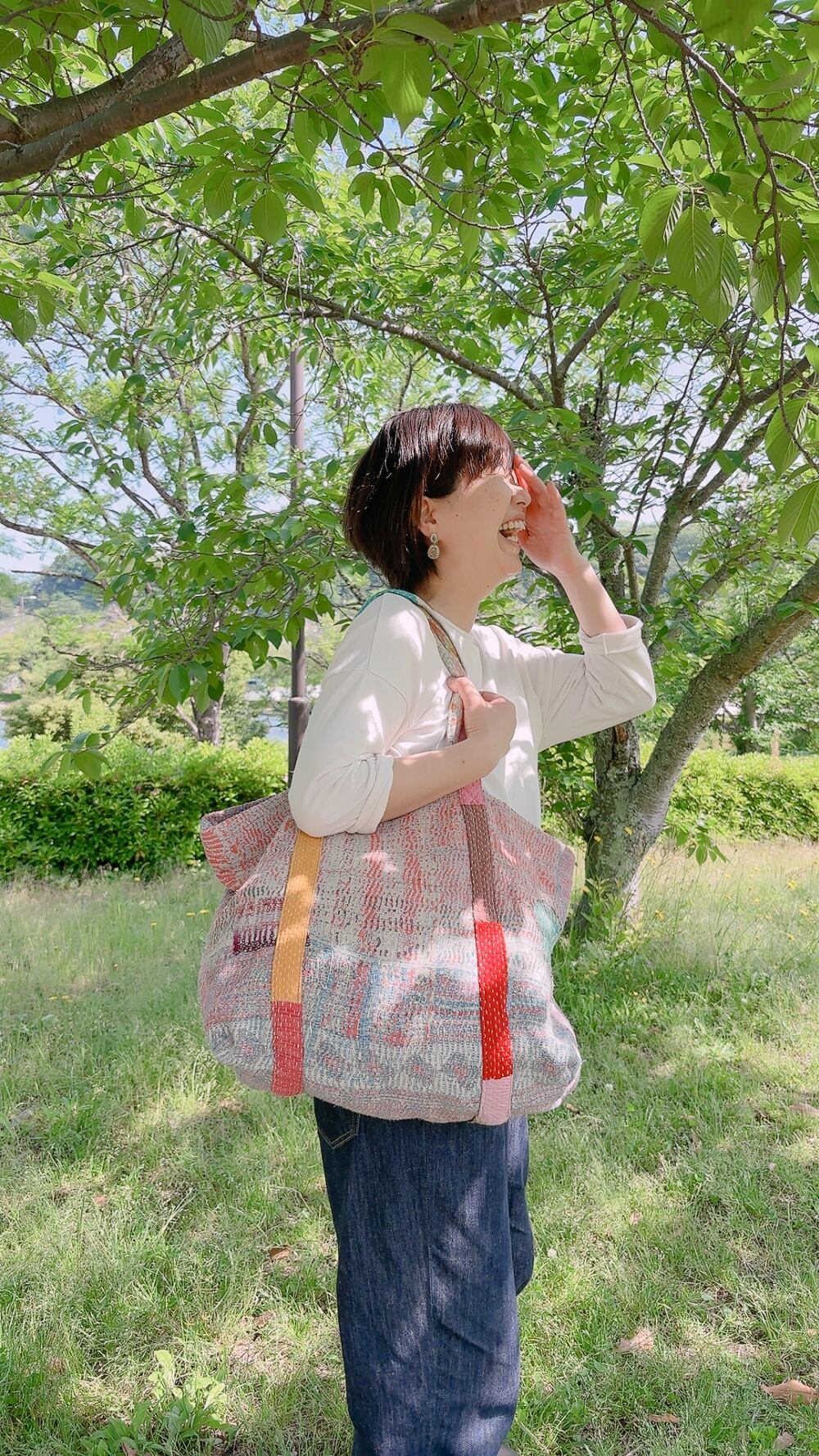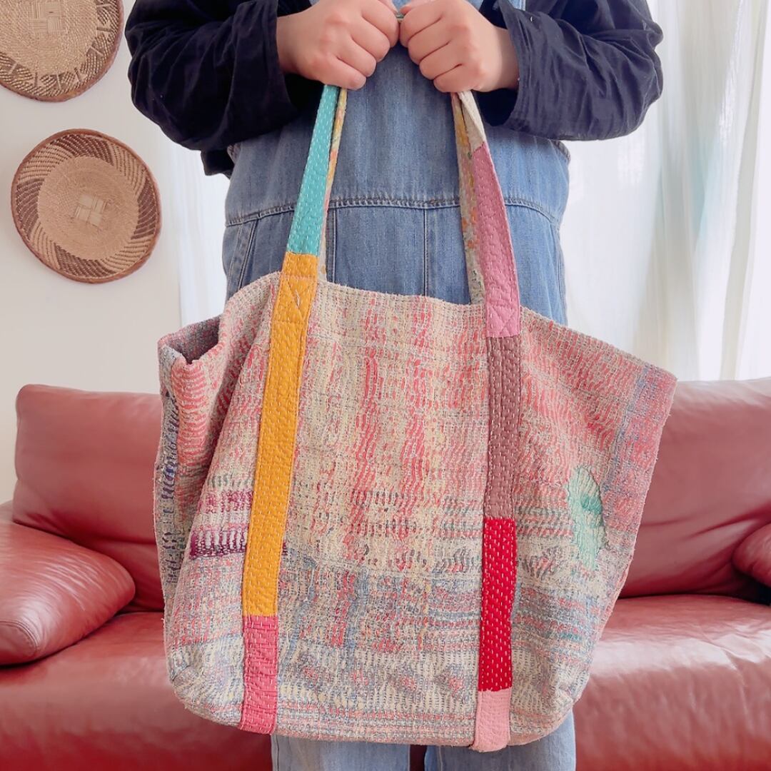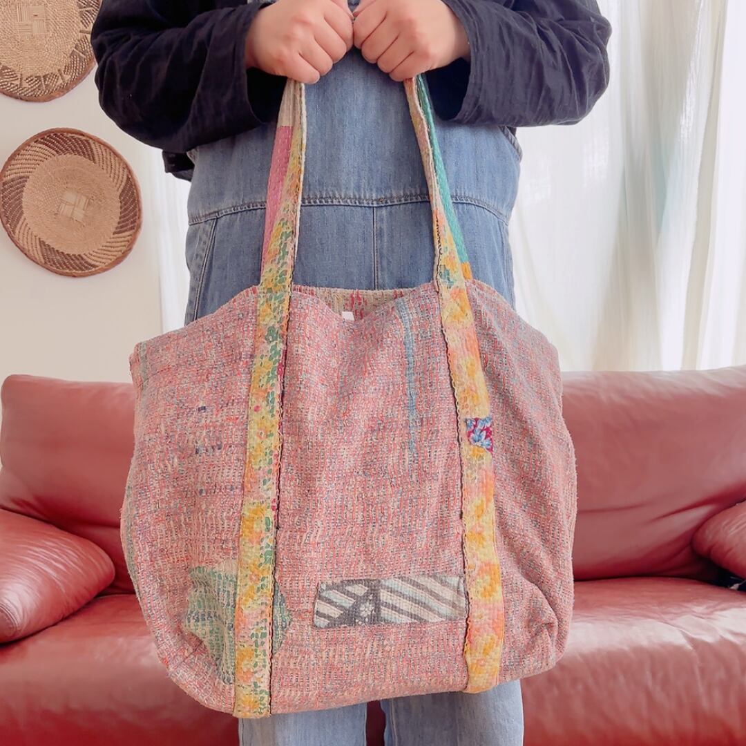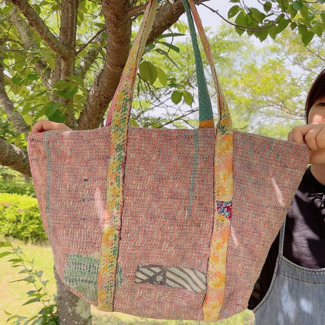 ヴィンテージ・カンタキルトbigトートバッグ(ピンク系)