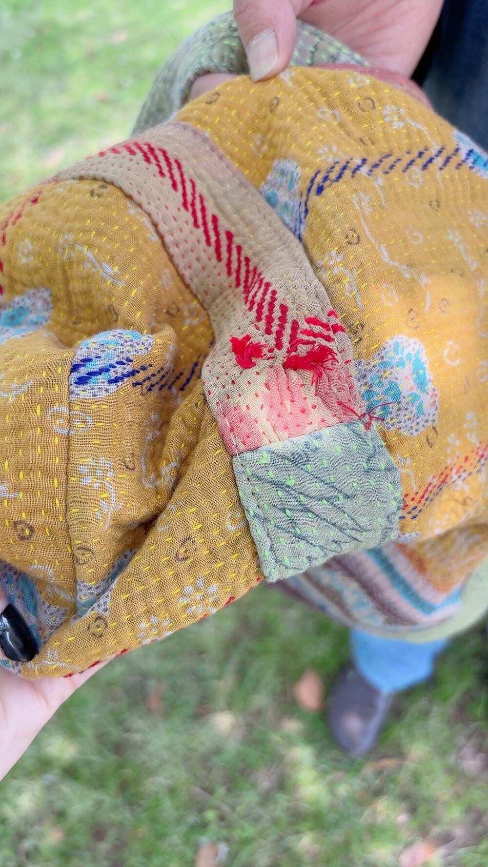 アップサイクルされたヴィンテージのインドのサリーから作られ、