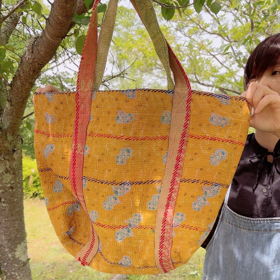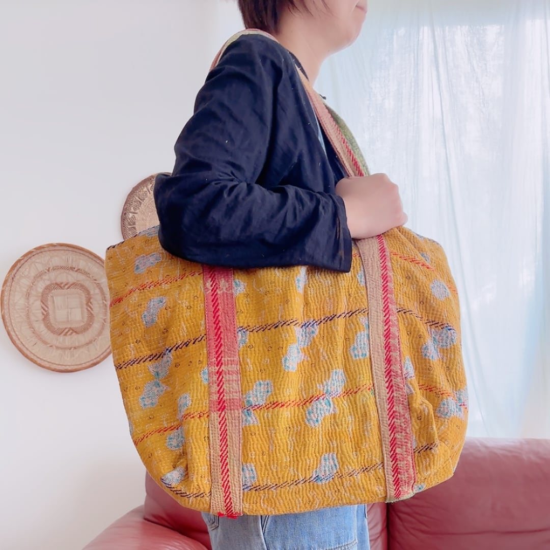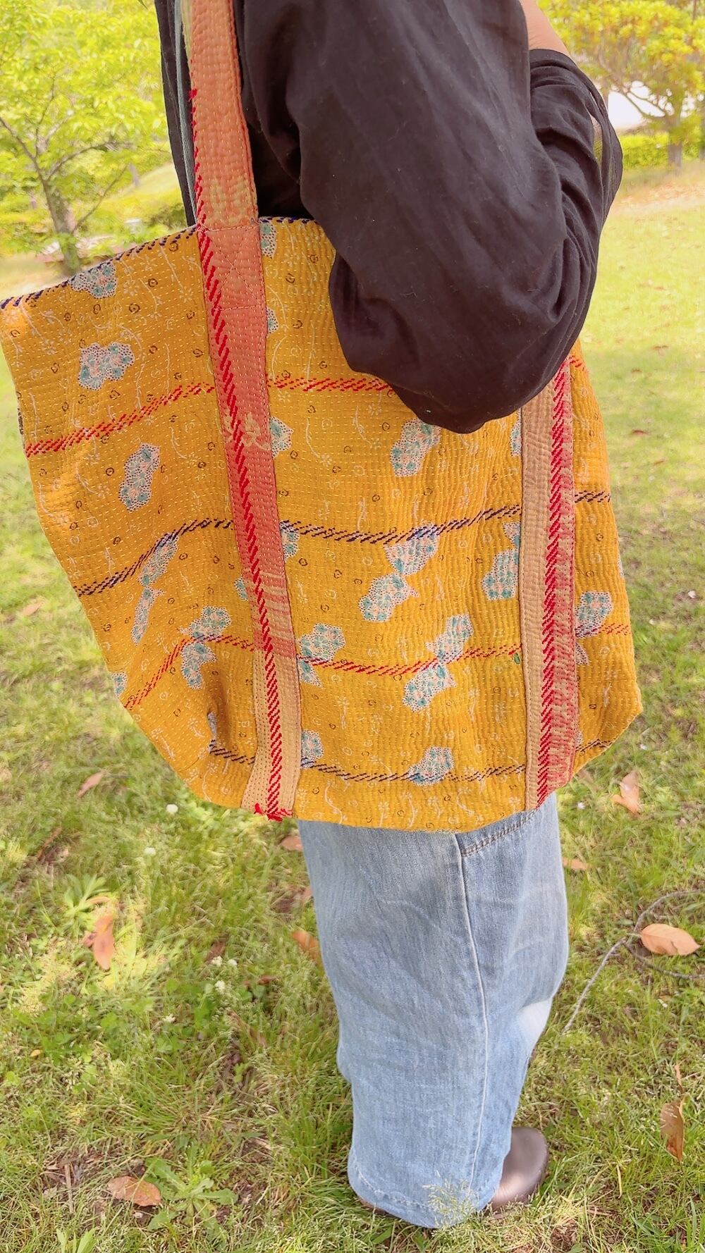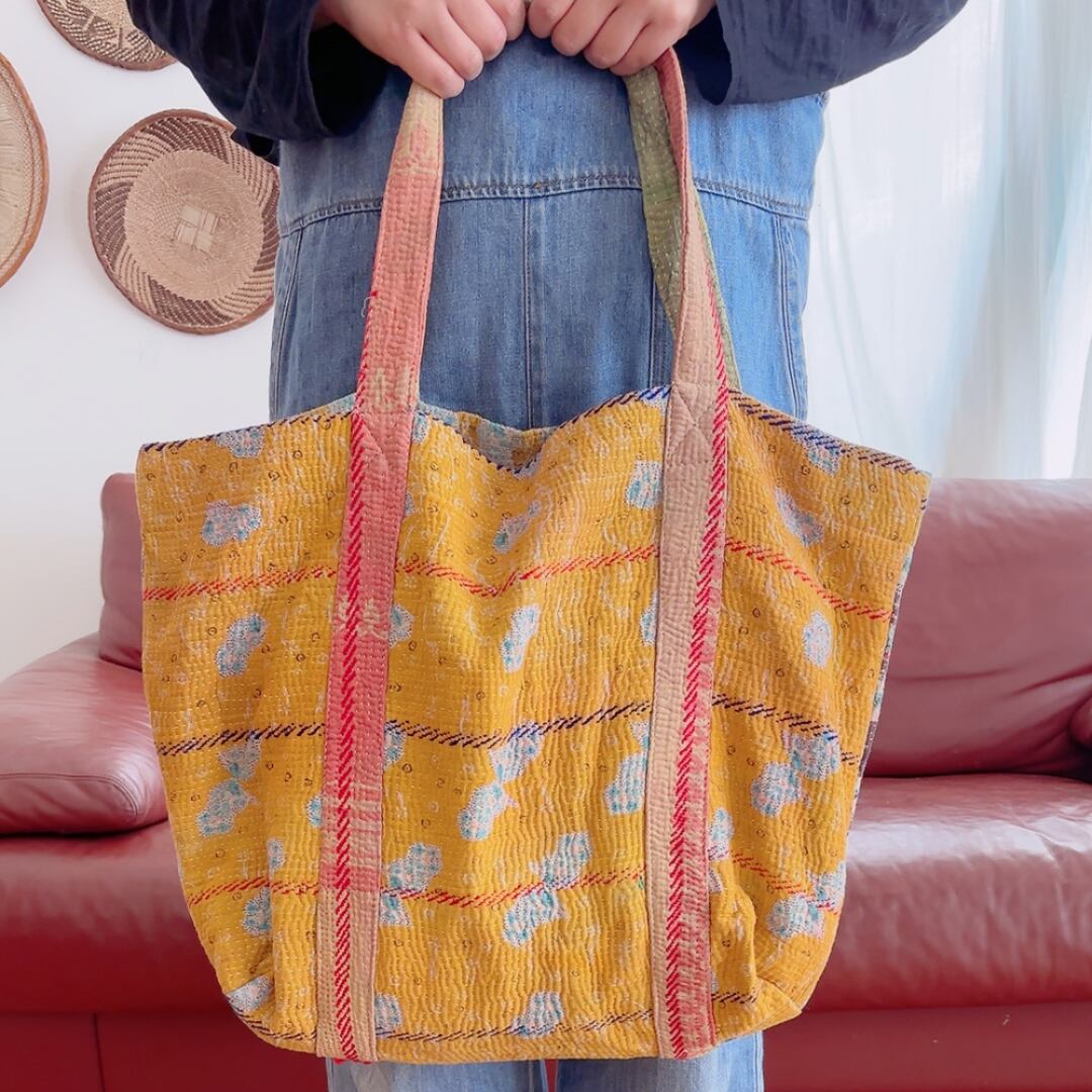 ヴィンテージ・カンタキルトbigトートバッグ(イエロー系)