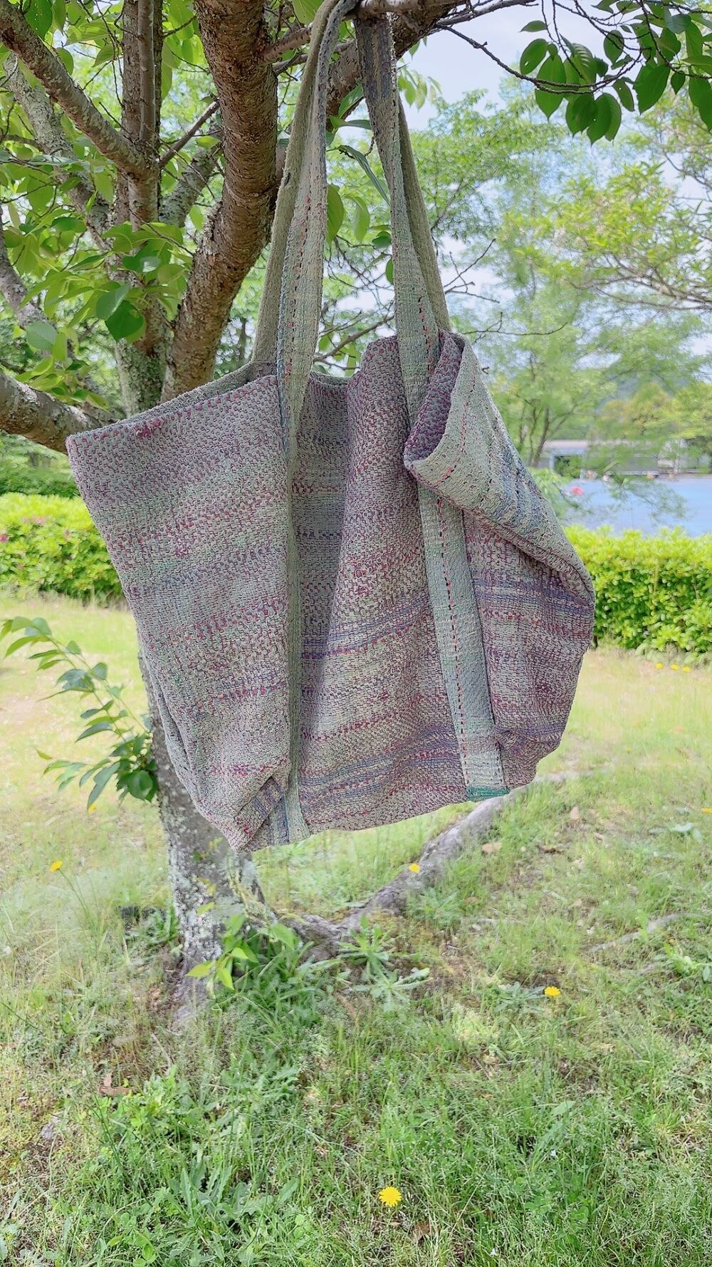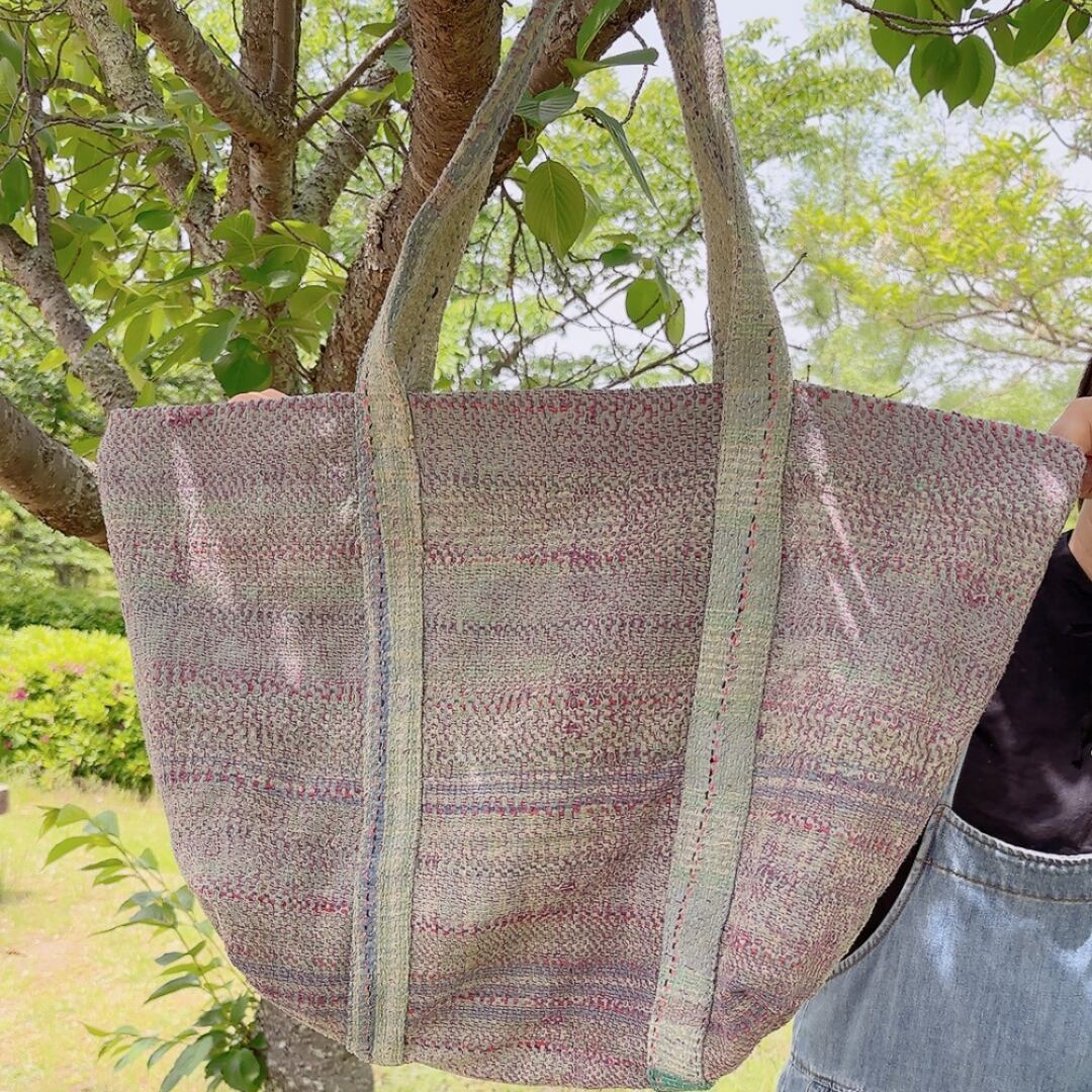 ヴィンテージ・カンタキルトbigトートバッグ(ブルー&パープル系)