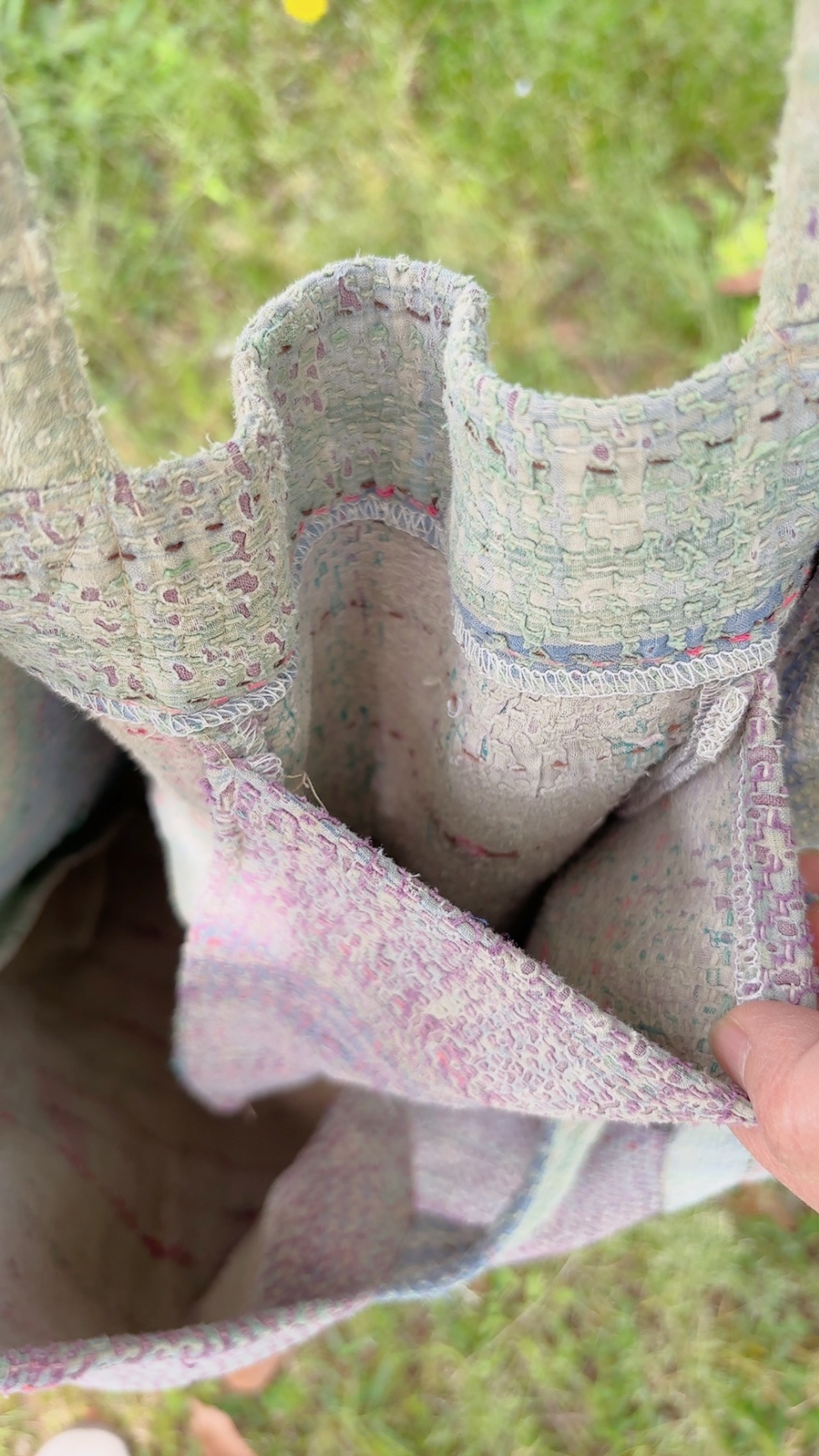 アップサイクルされたヴィンテージのインドのサリーから作られ、