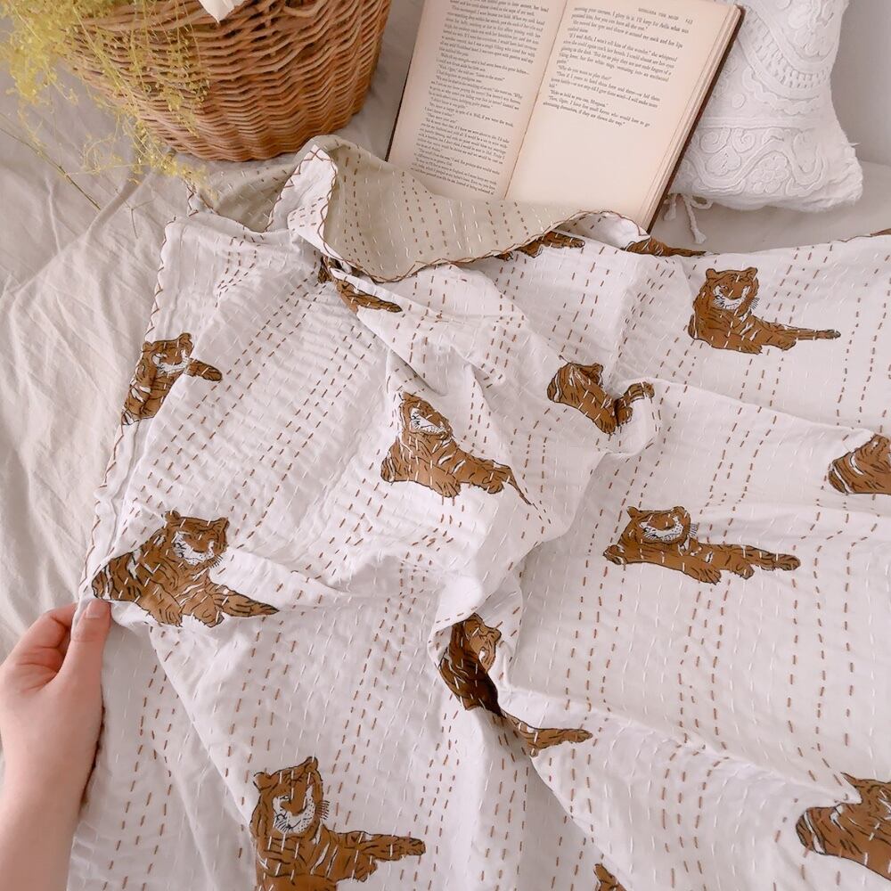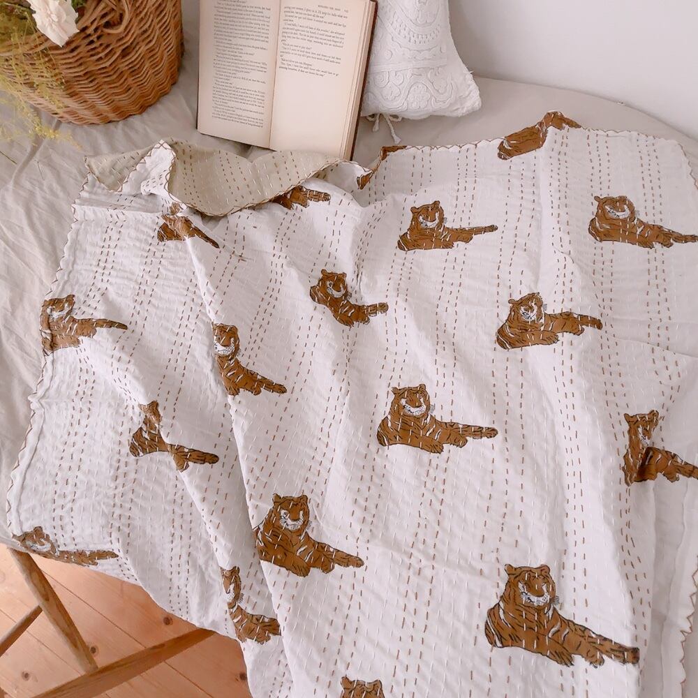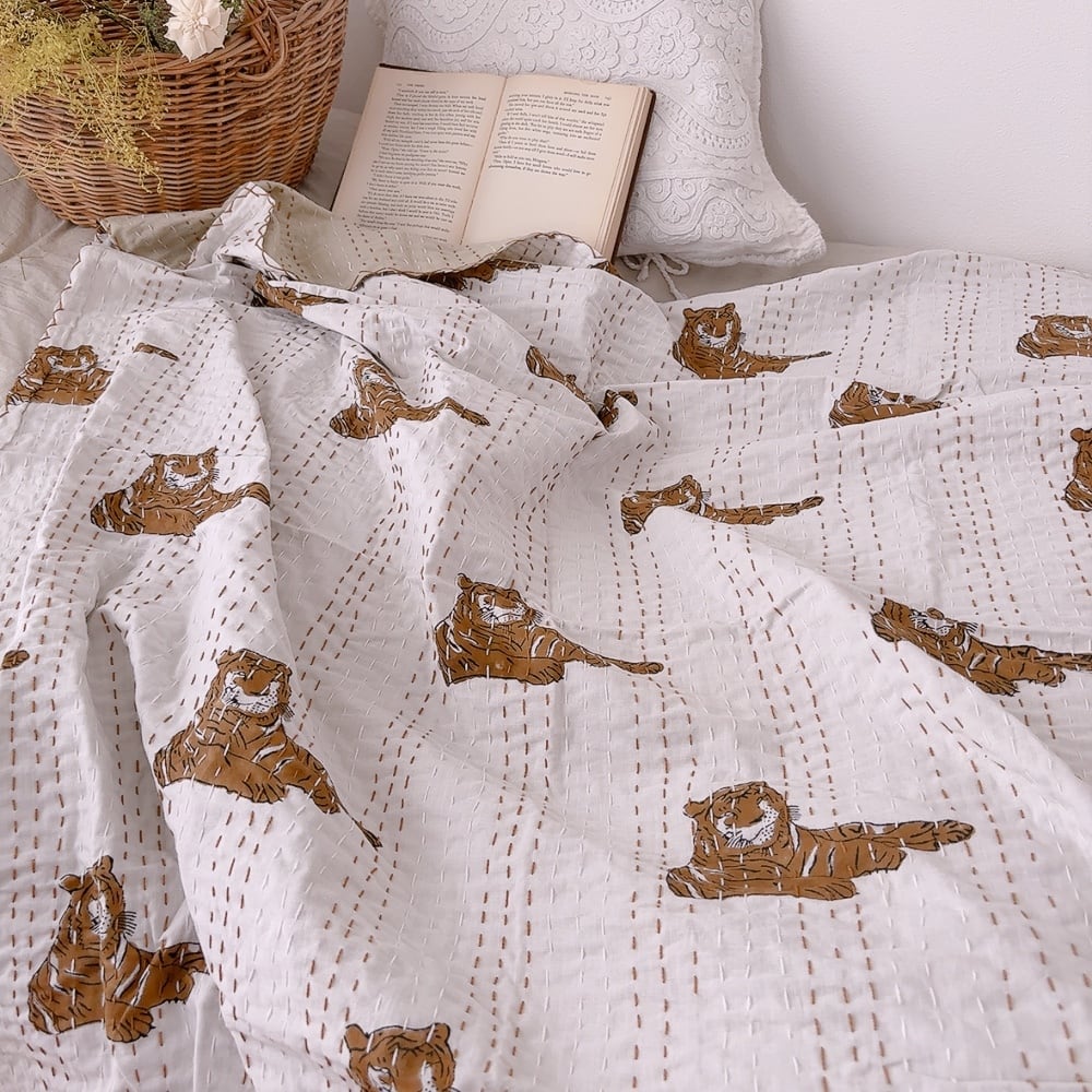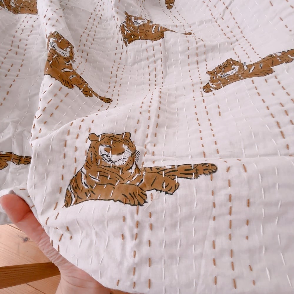 トラ柄がほっこりユニークなべビーサイズのキルトです。