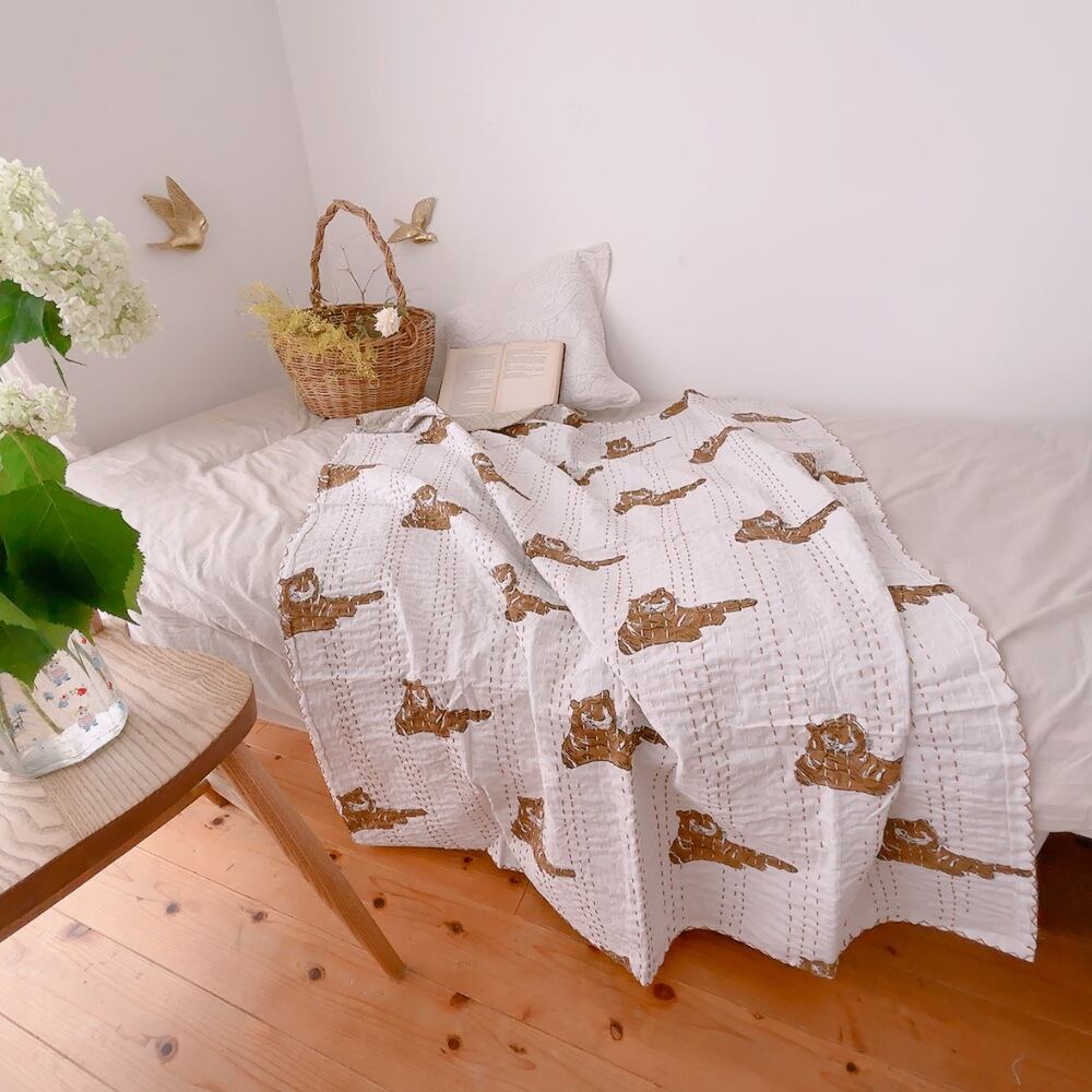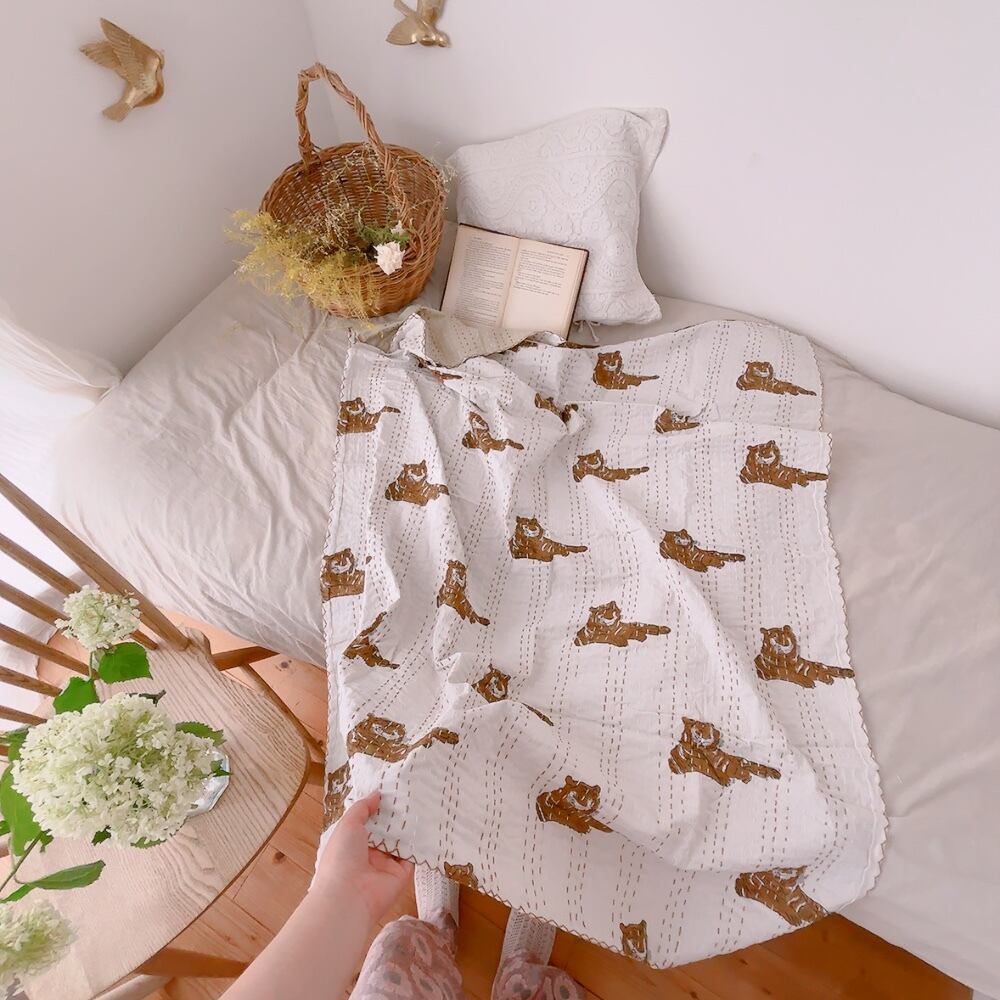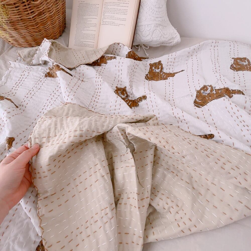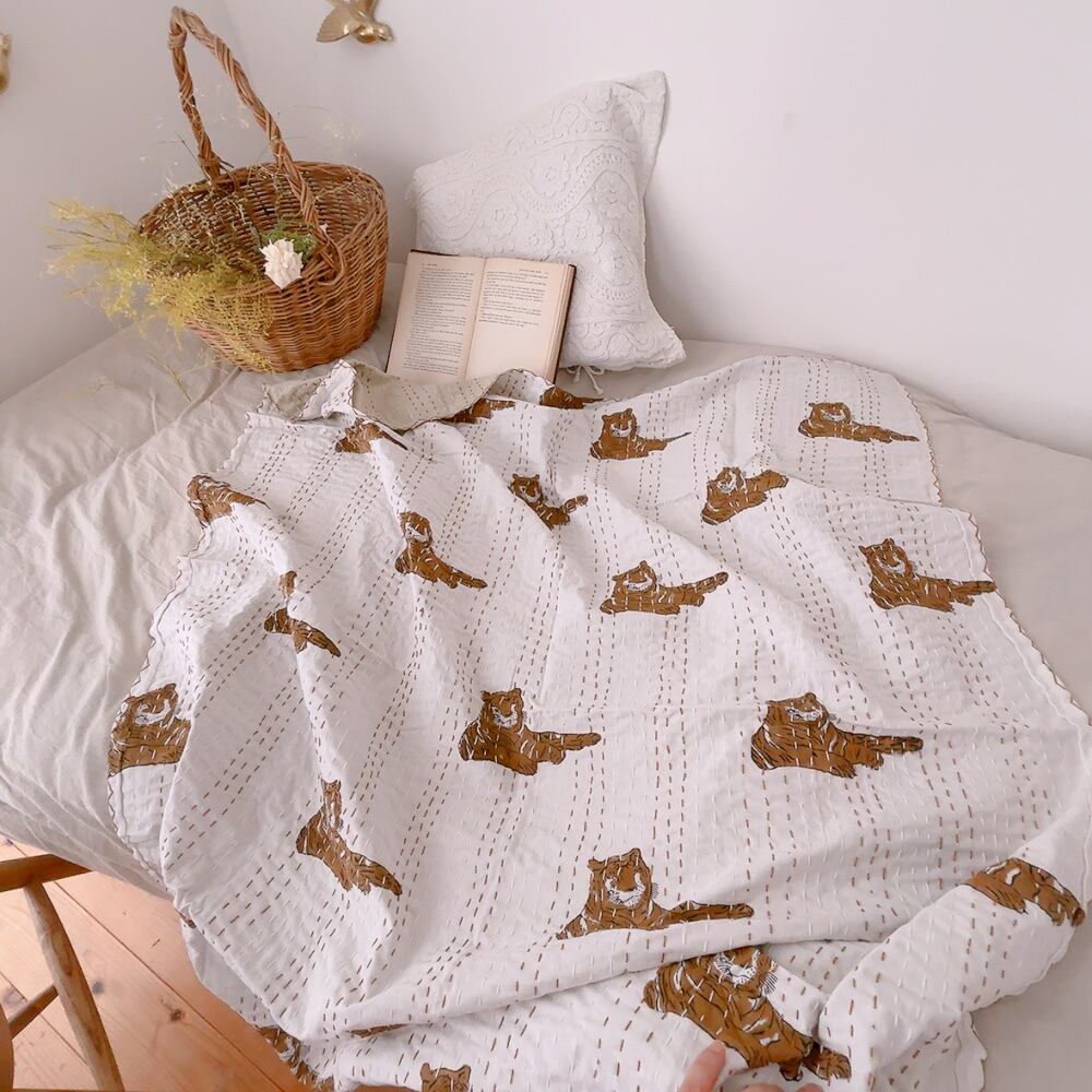 トラ柄がほっこりユニークなべビーサイズのキルトです。