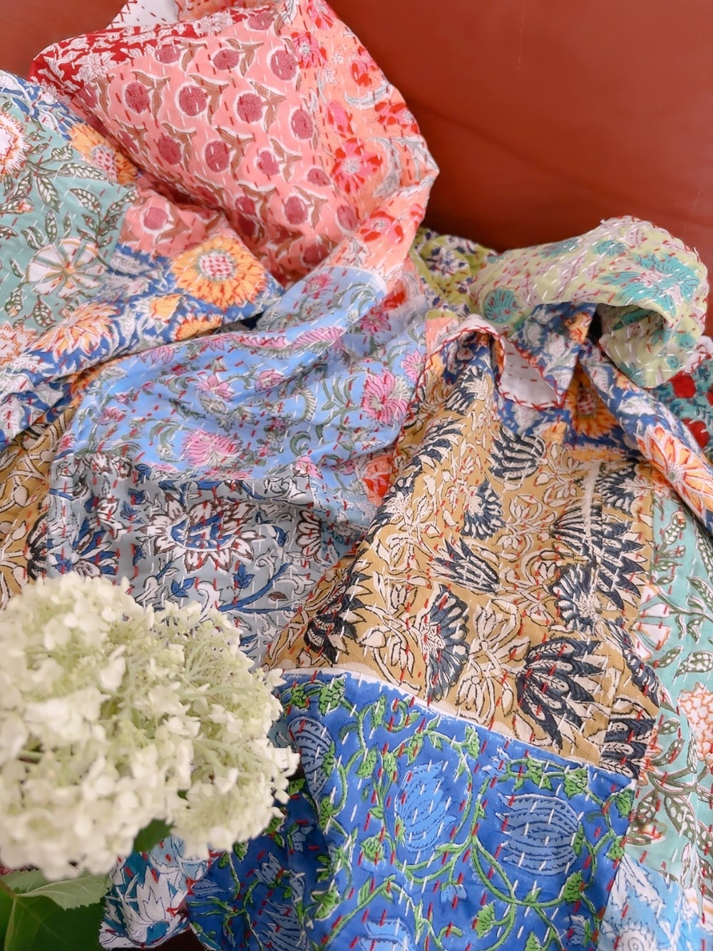 ブロックプリントキルトの愛らしい柄は、