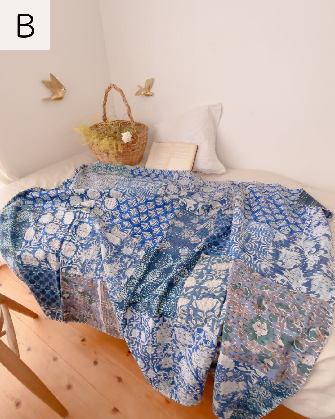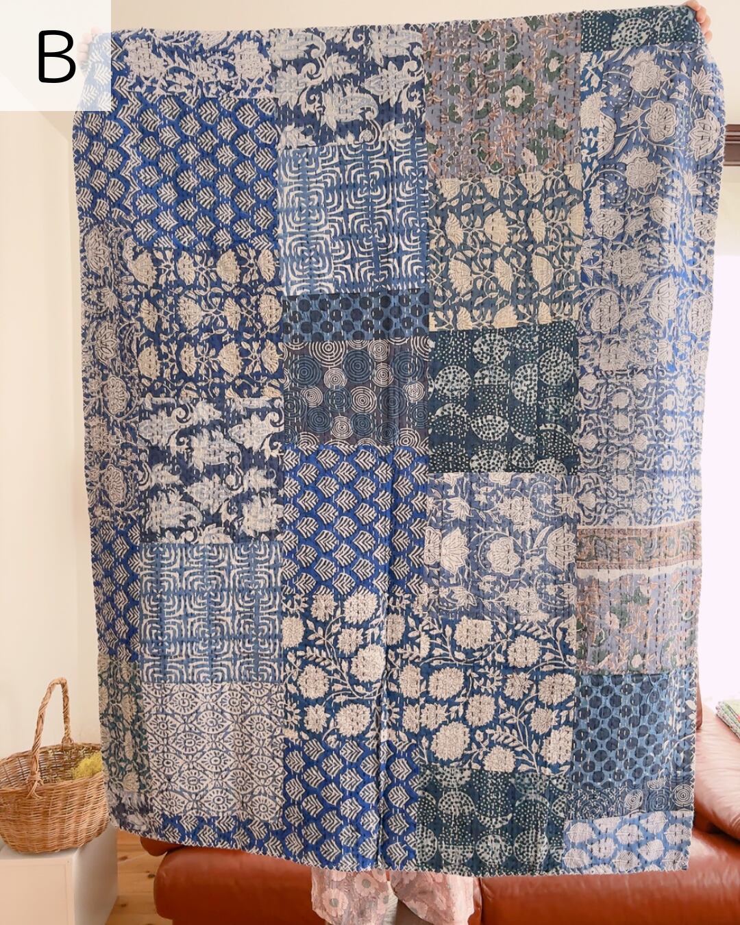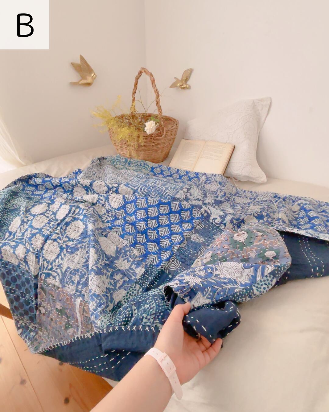 【S】インディゴパッチワーク(A)(B) ブロックプリントキルト