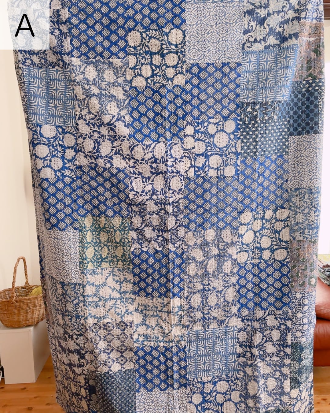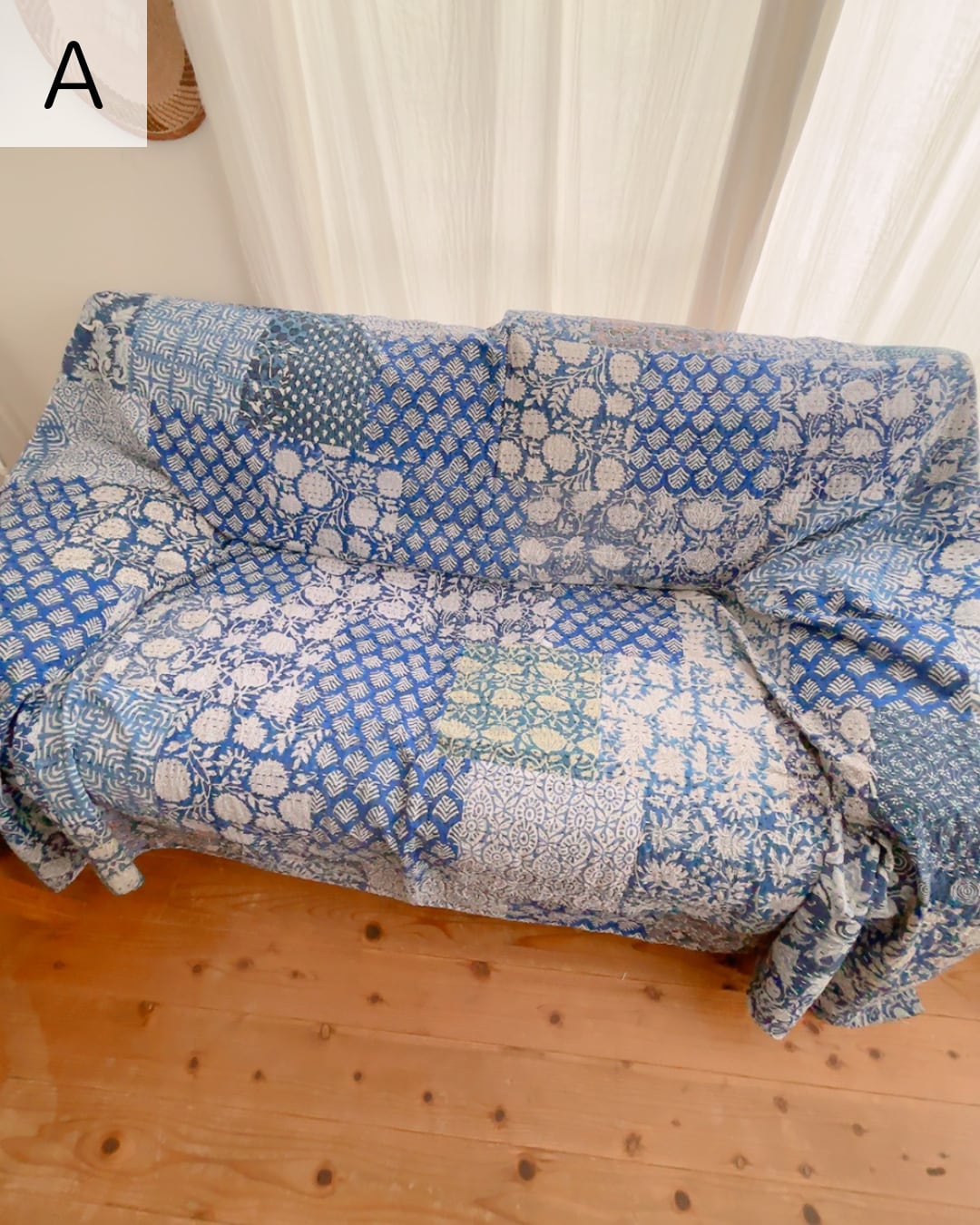 【M】インディゴパッチワーク(A)(B) ブロックプリントキルト