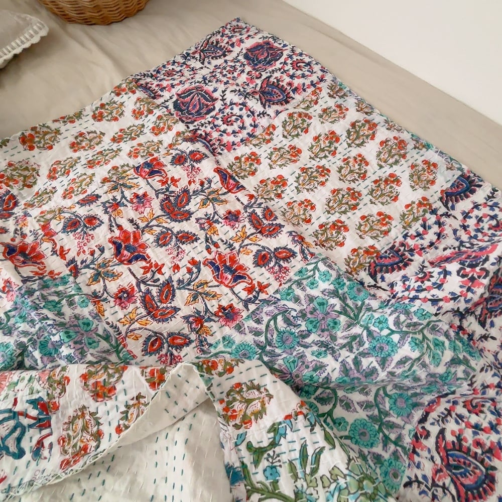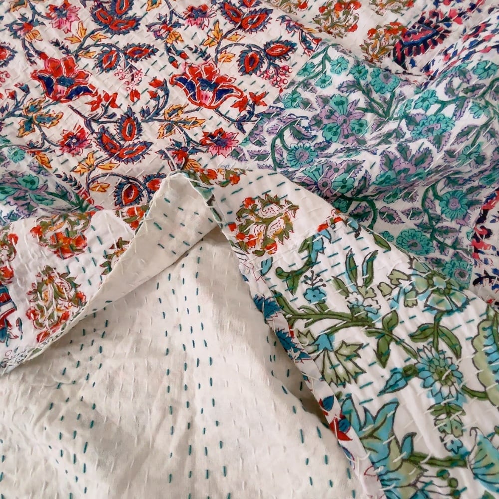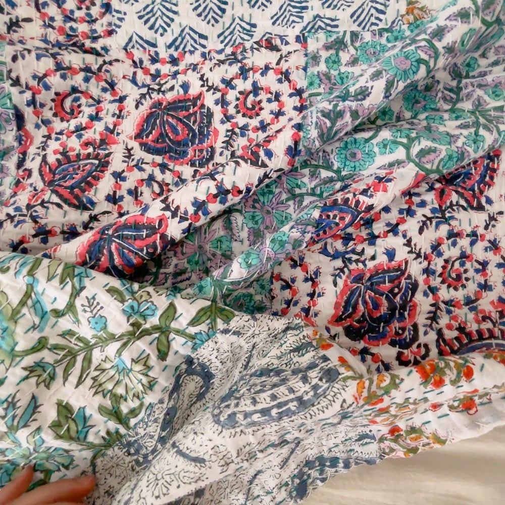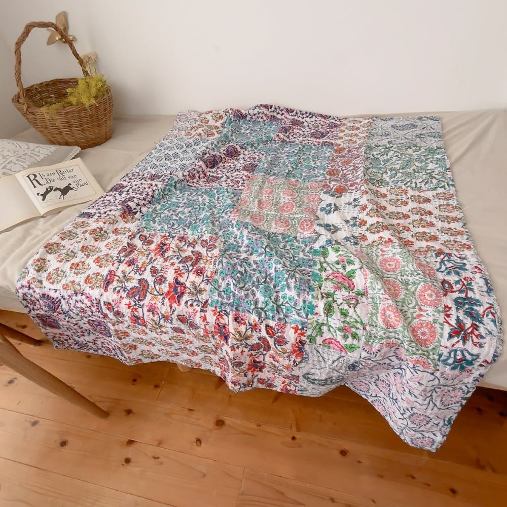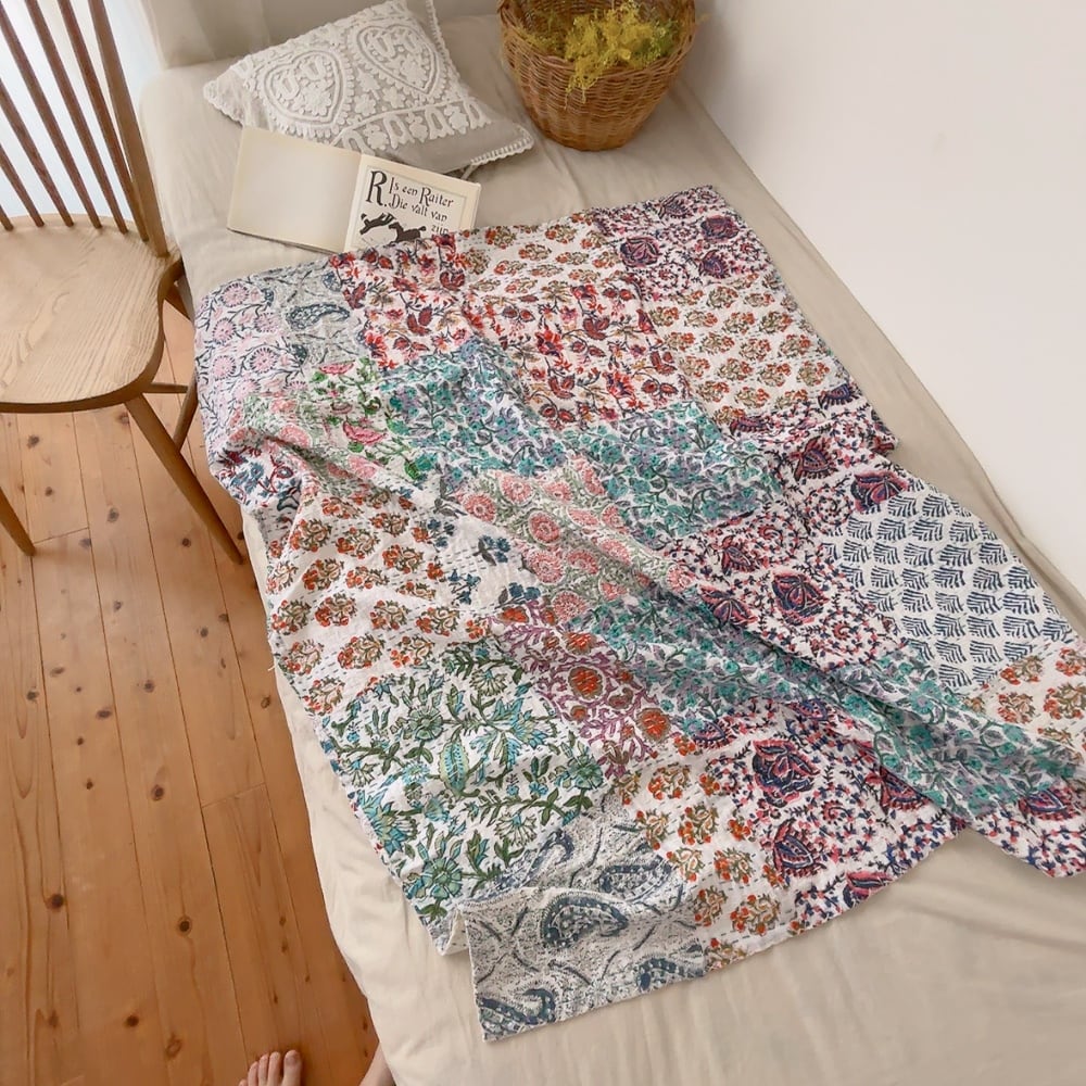 【S】ホワイトパッチワーク(D) ブロックプリントキルト