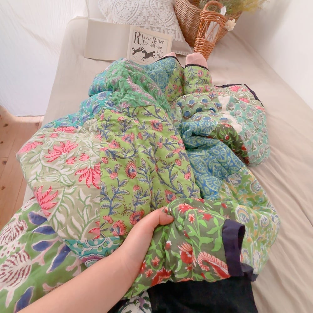ブロックプリントキルトの愛らしい柄は、
