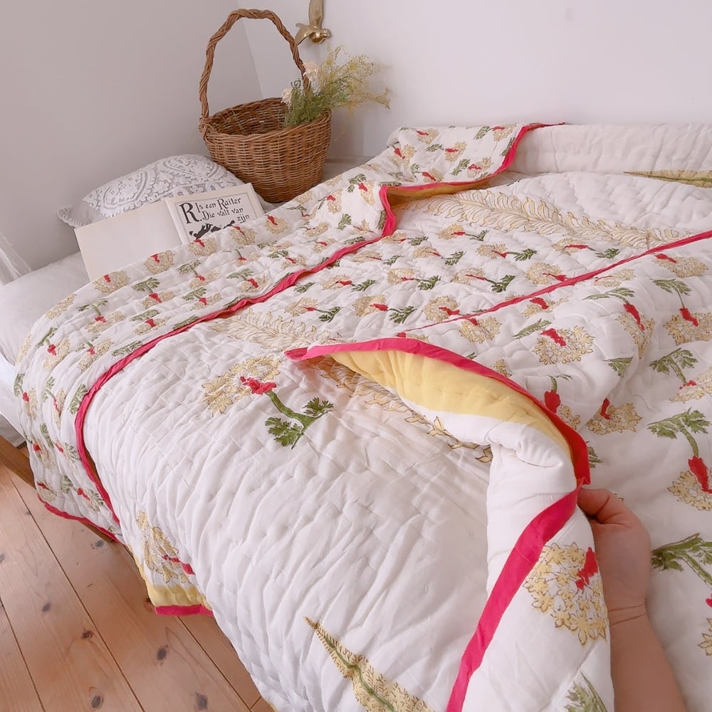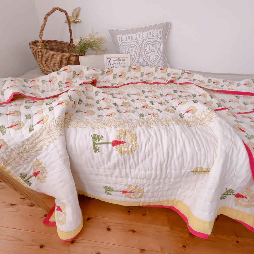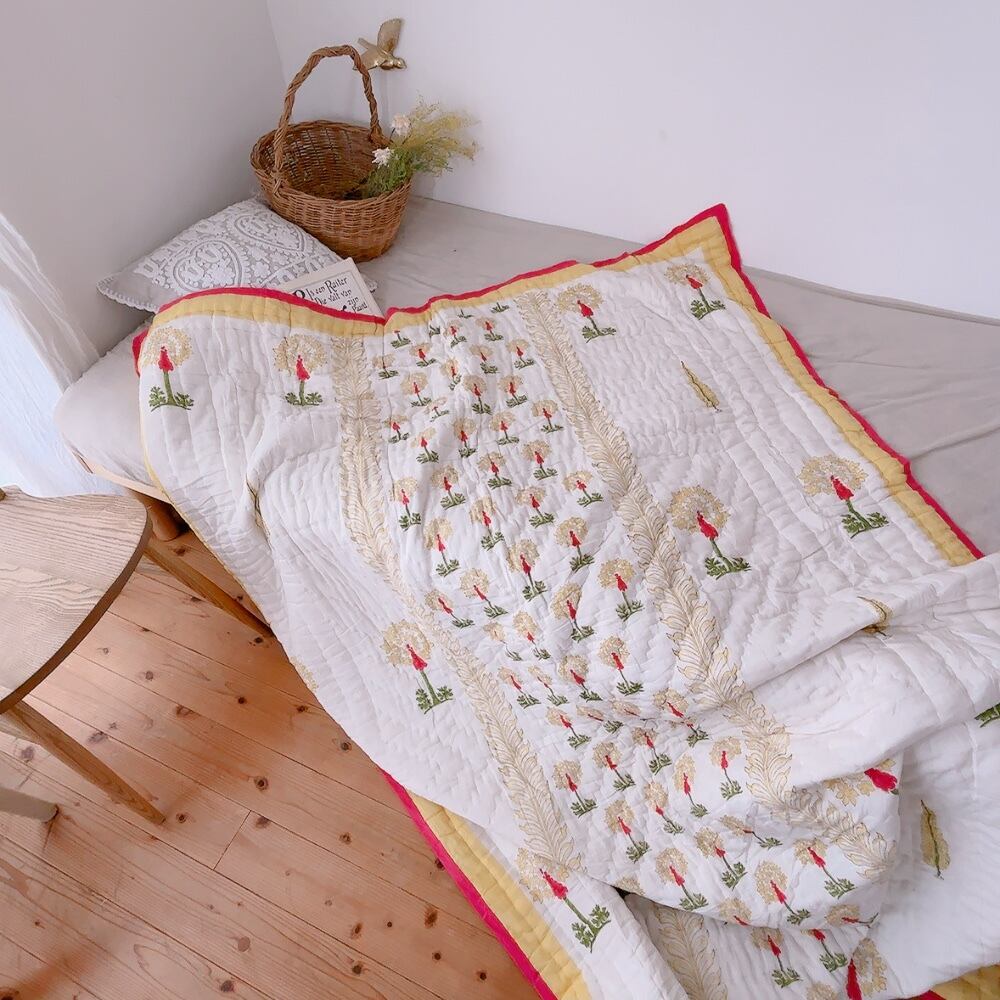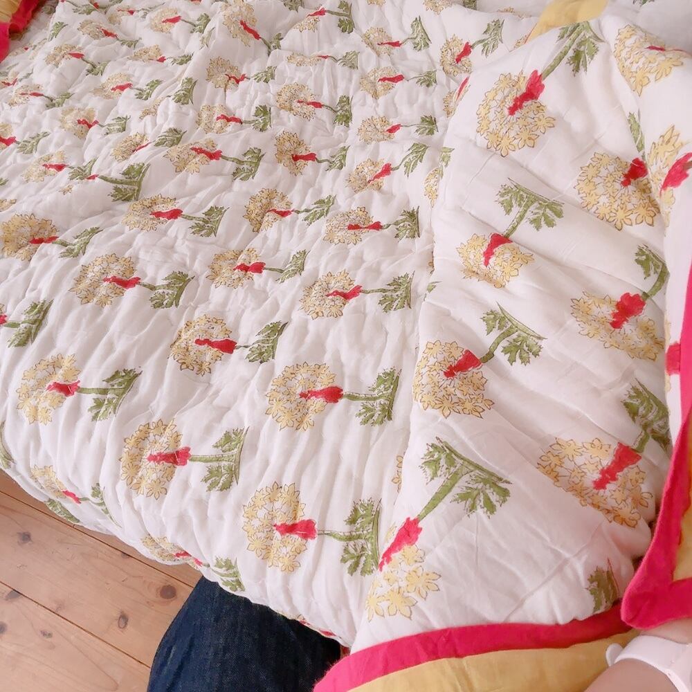 綿入り【M】たんぽぽ ブロックプリントキルト