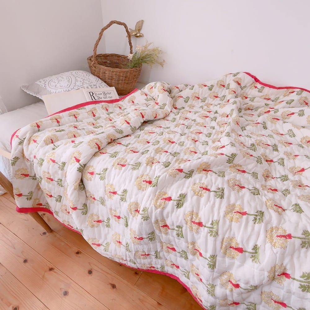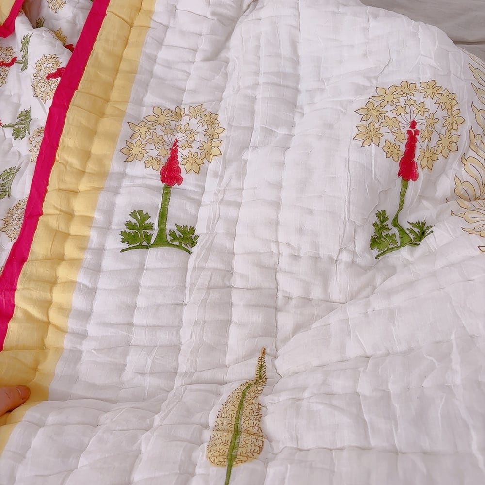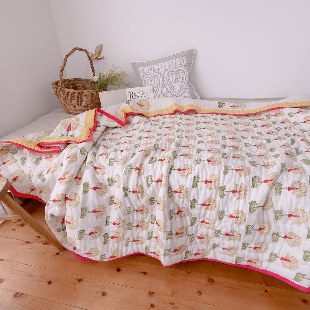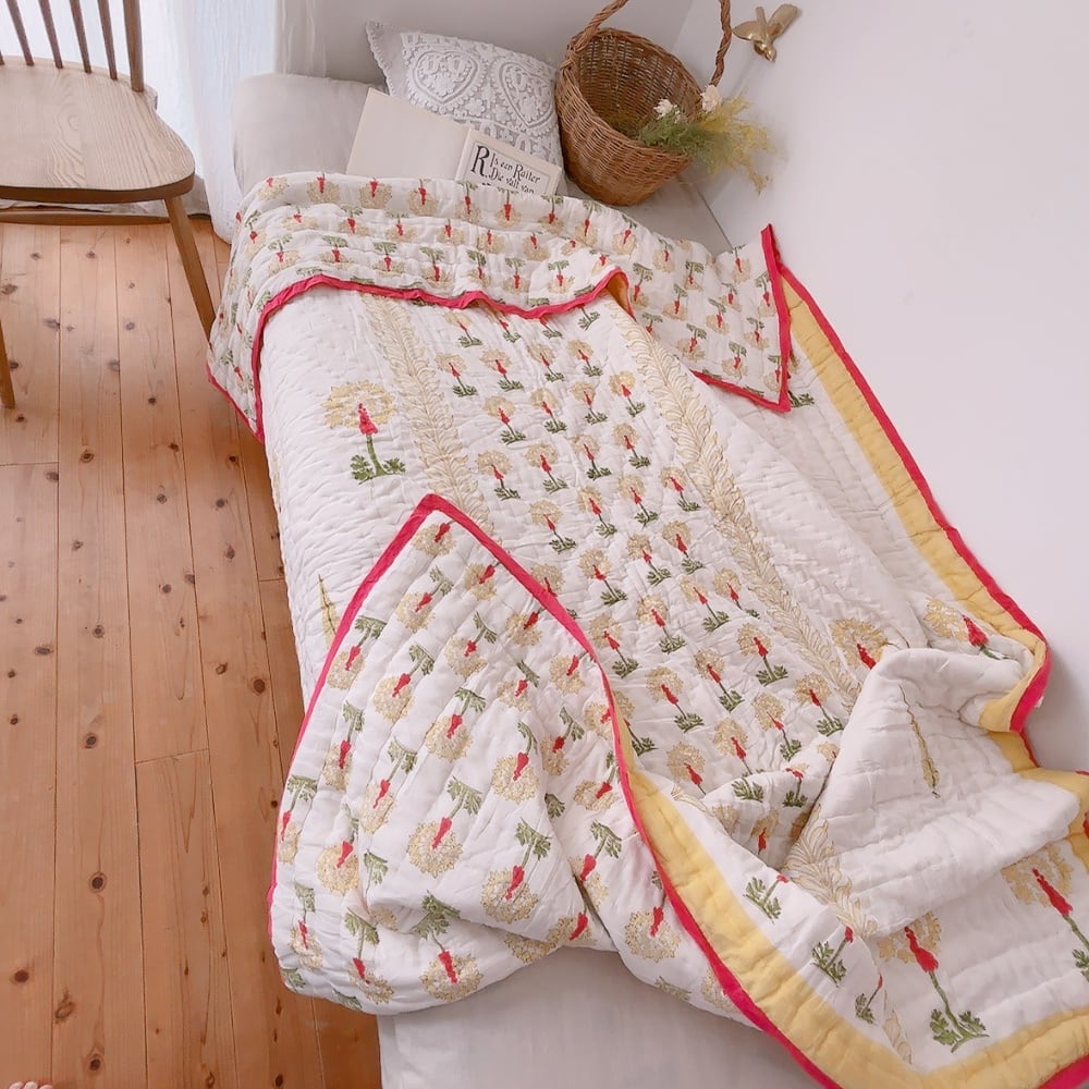 綿入り【M】たんぽぽ ブロックプリントキルト