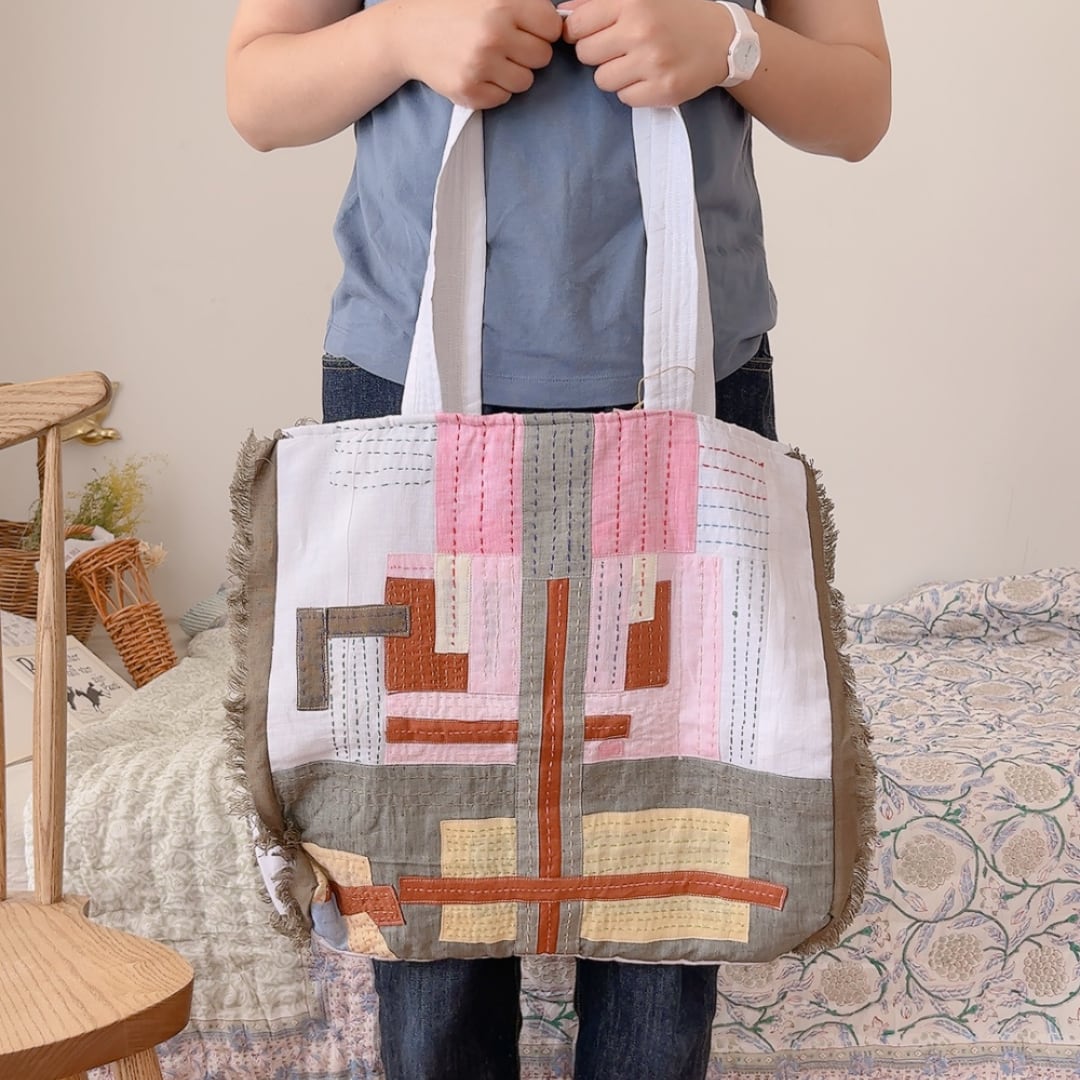 【パッチワーク】インドリネン・トートバッグ