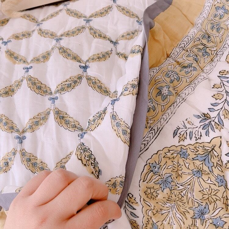 ブロックプリントキルトの愛らしい柄は、