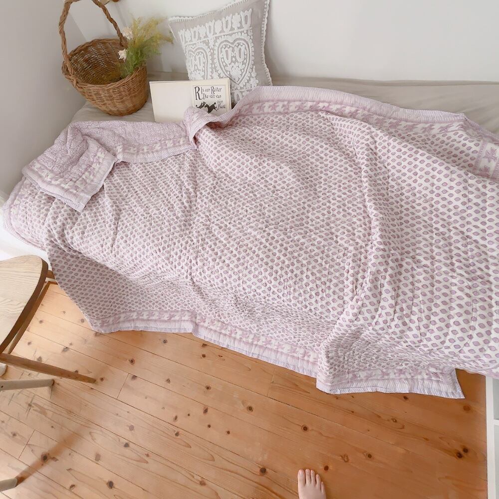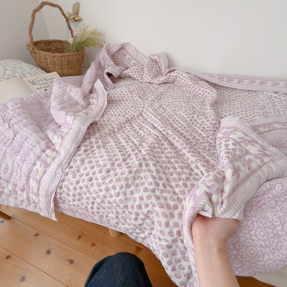 【受注販売会】綿入り【M】ラベンダー ブロックプリントキルト