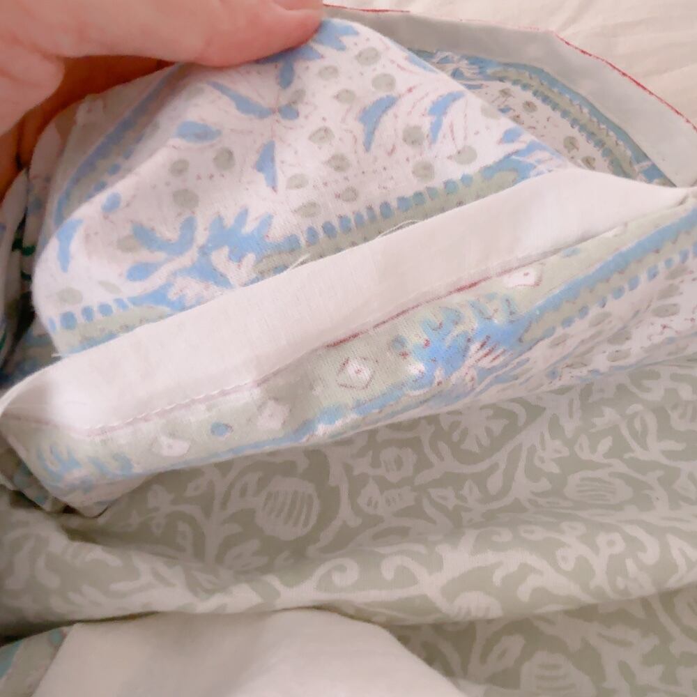 ※最後の2枚のお写真のように、この枕カバーは、中布の縫い合せの部分がロックミシンでの篝が無く、切りっぱなしの仕様になっております。