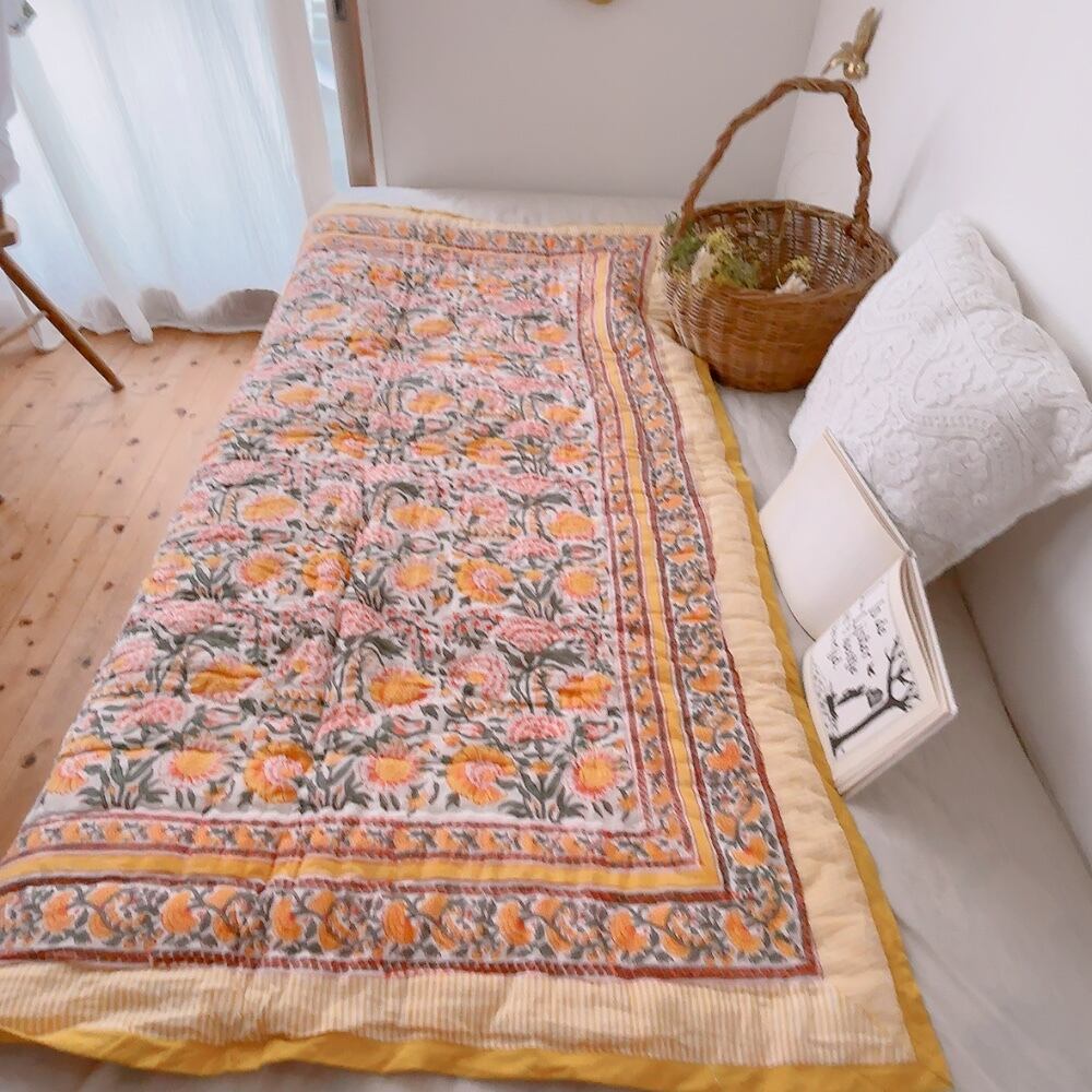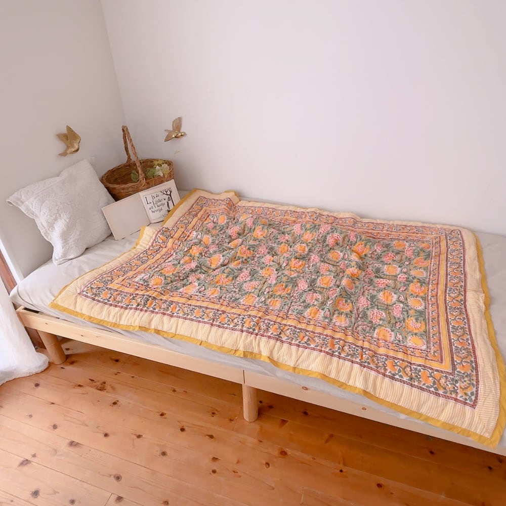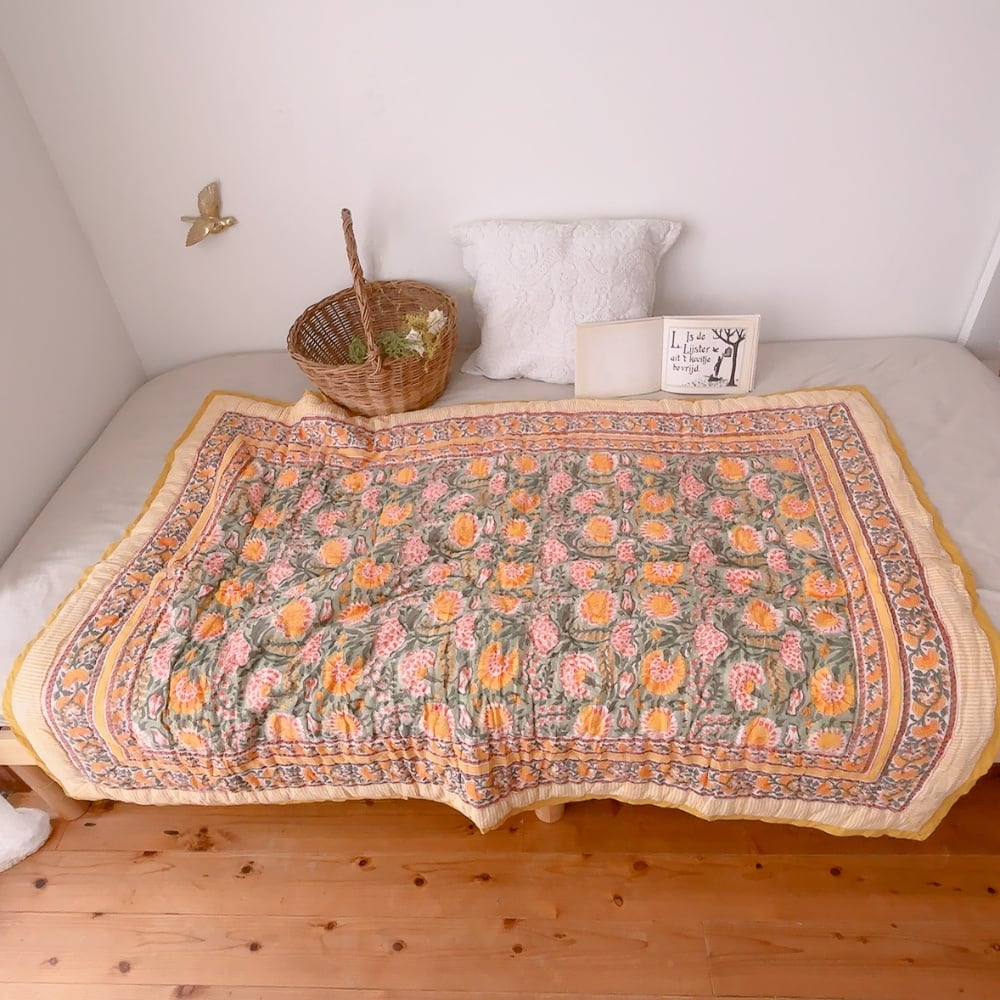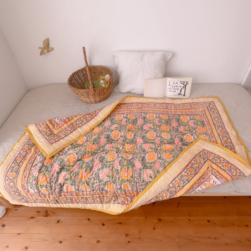 ブロックプリントキルトの愛らしい柄は、