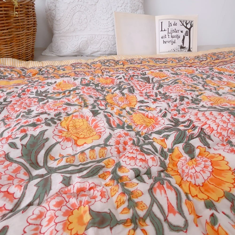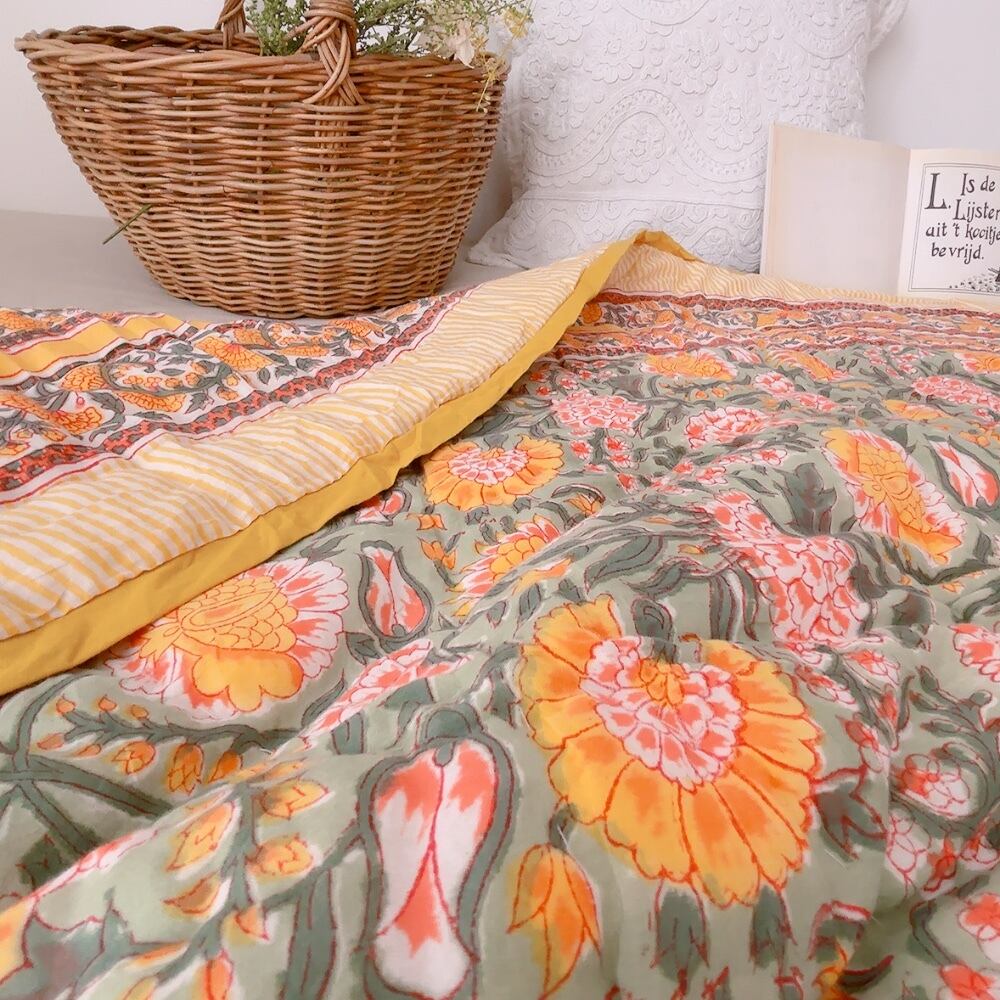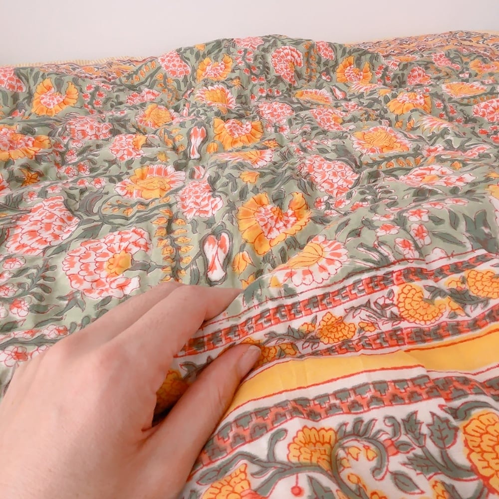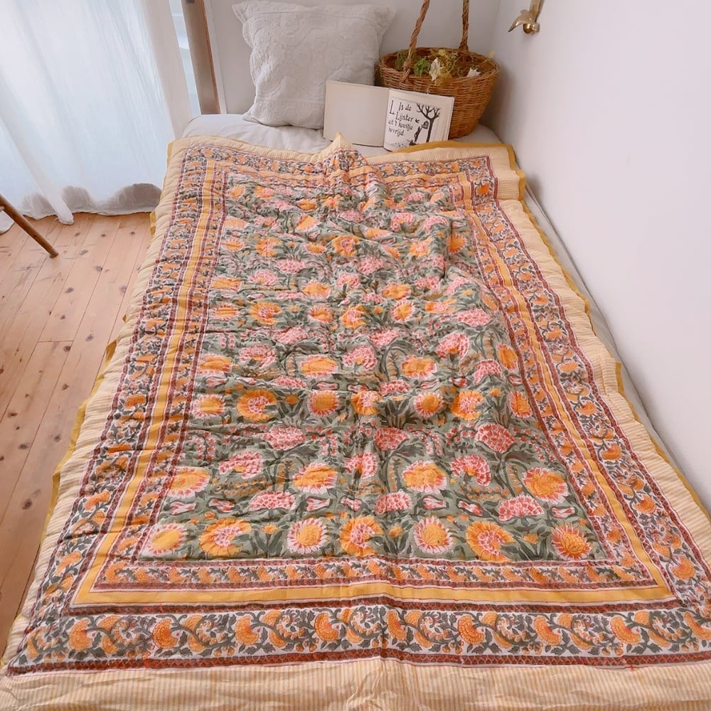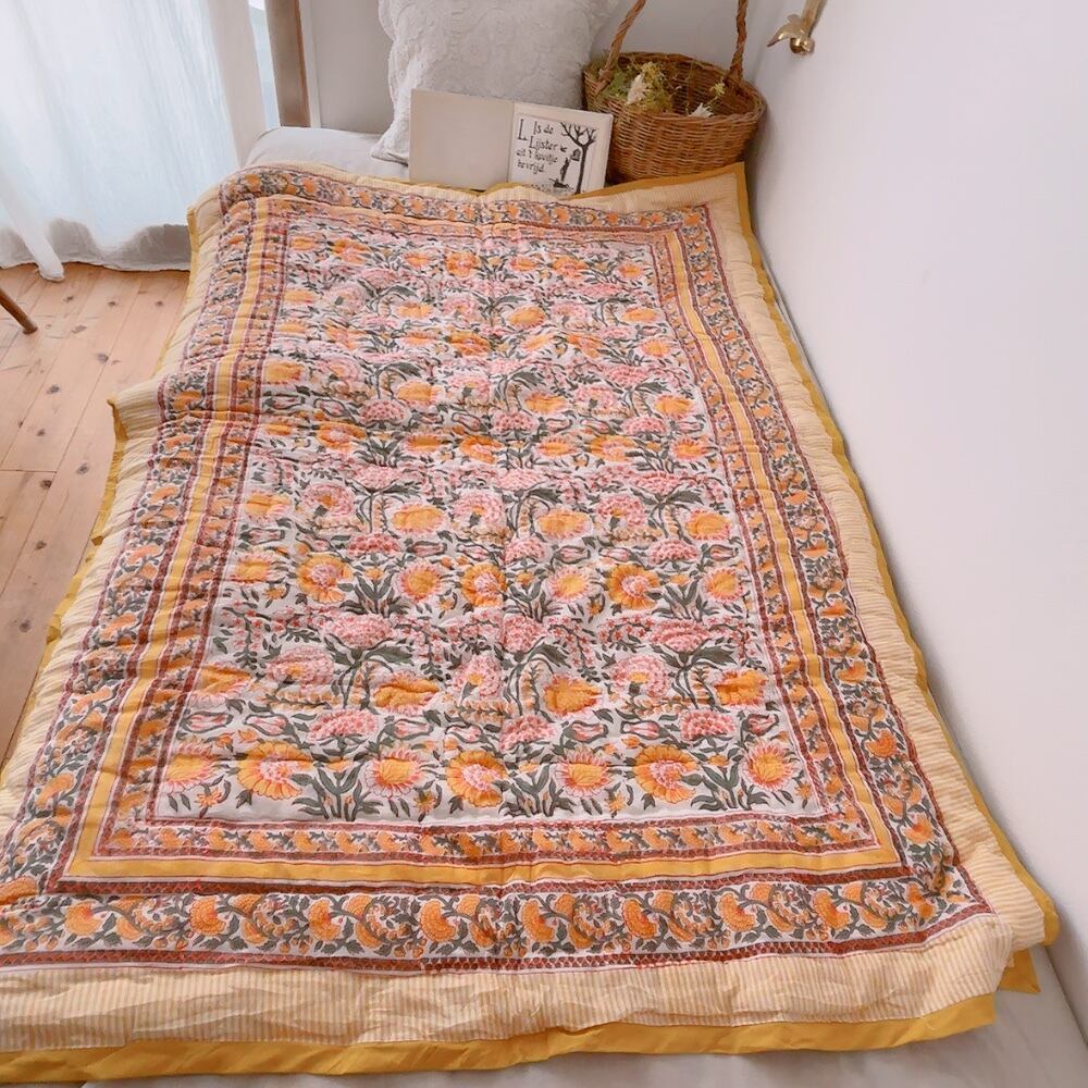 ブロックプリントキルトの愛らしい柄は、