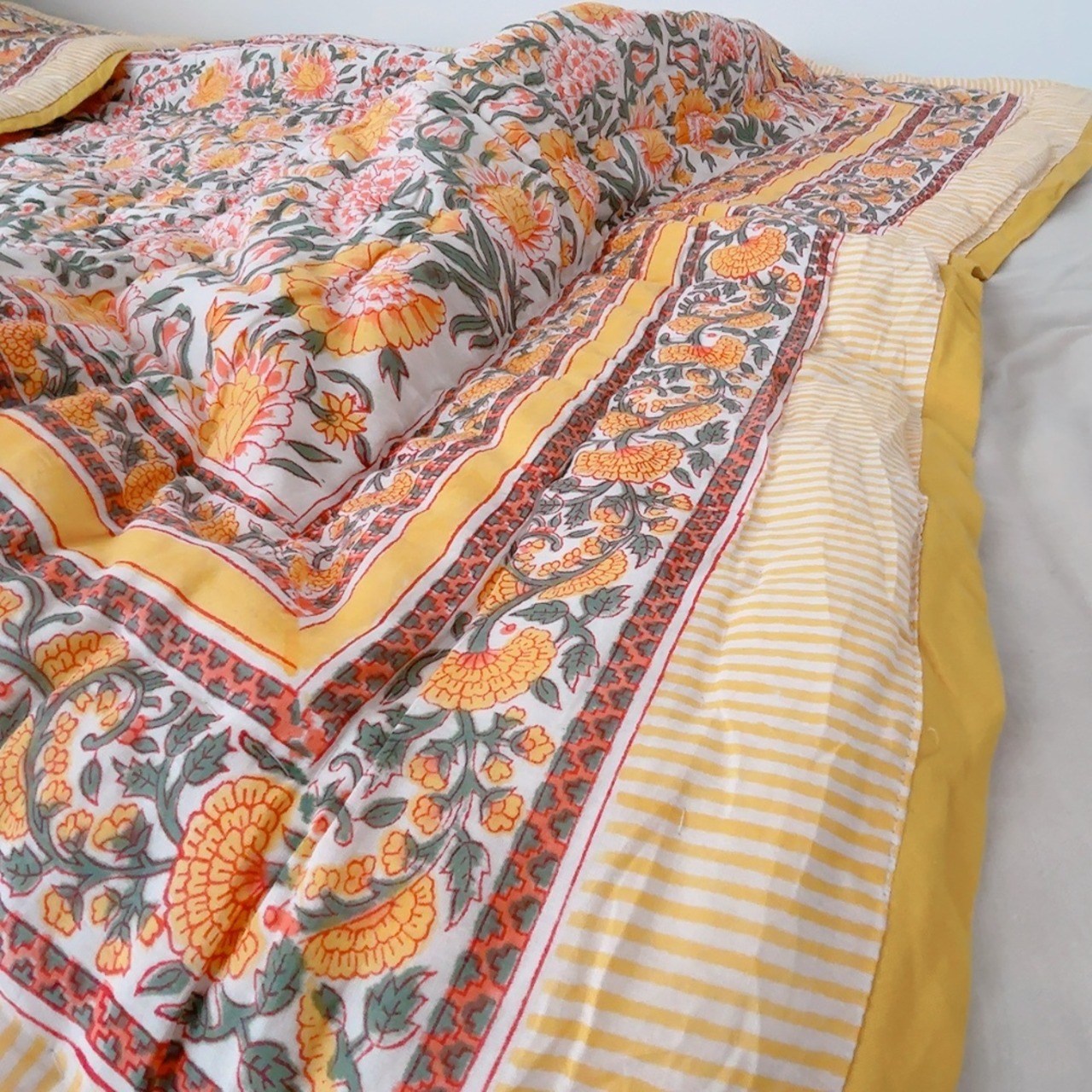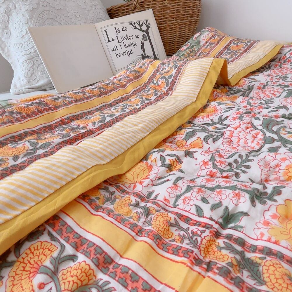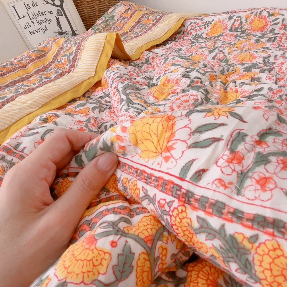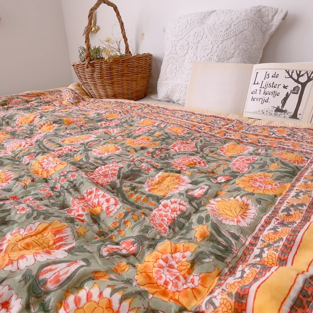 ブロックプリントキルトの愛らしい柄は、