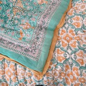 とても可愛らしいお花柄のブロックプリントの綿入りキルトです。