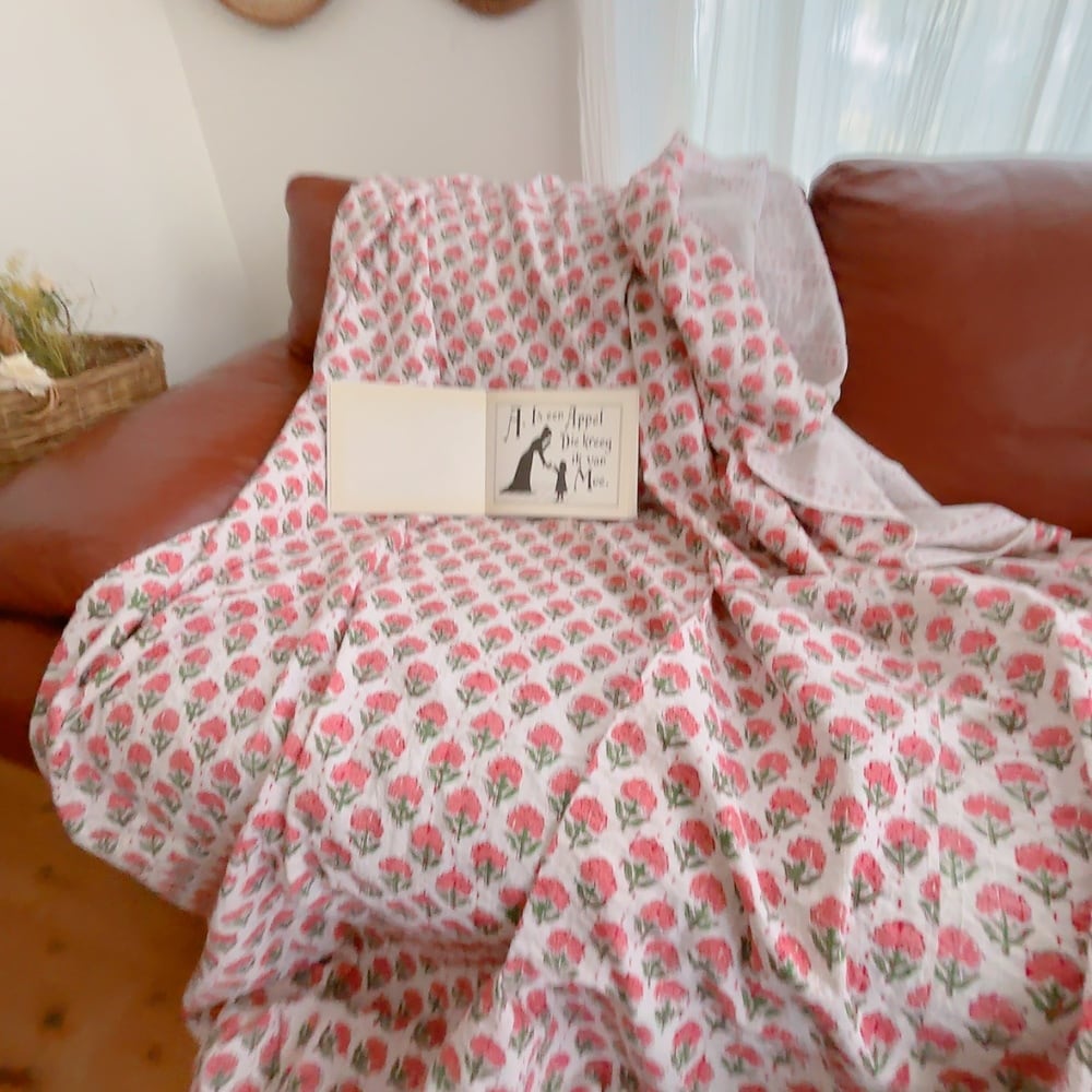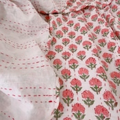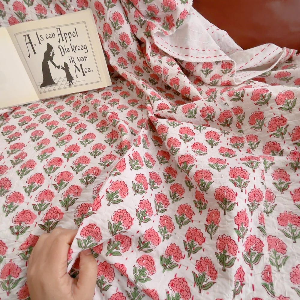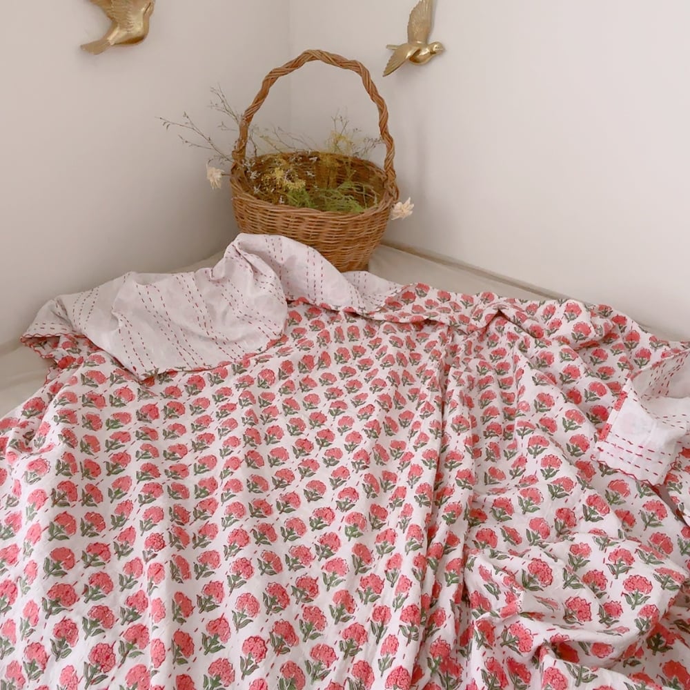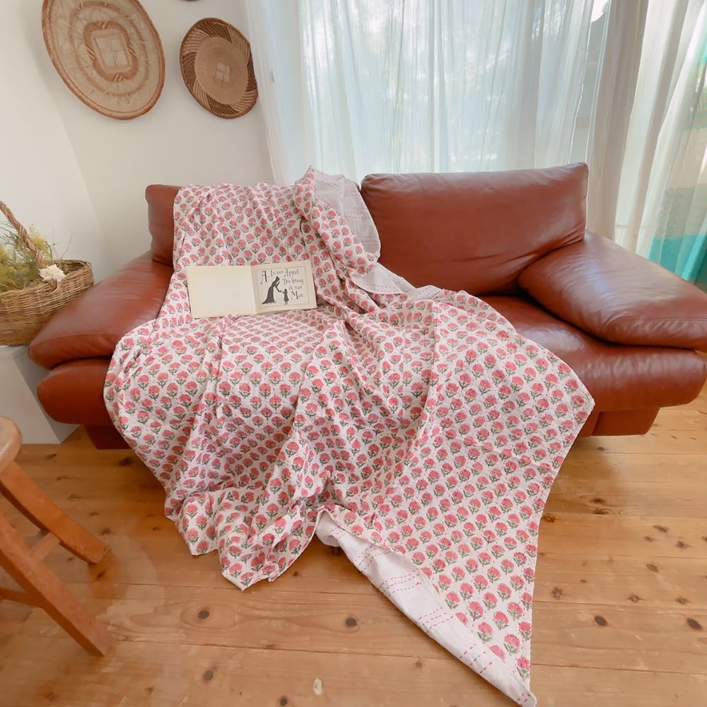 ブロックプリントキルトの優しい風合いのお色味が
