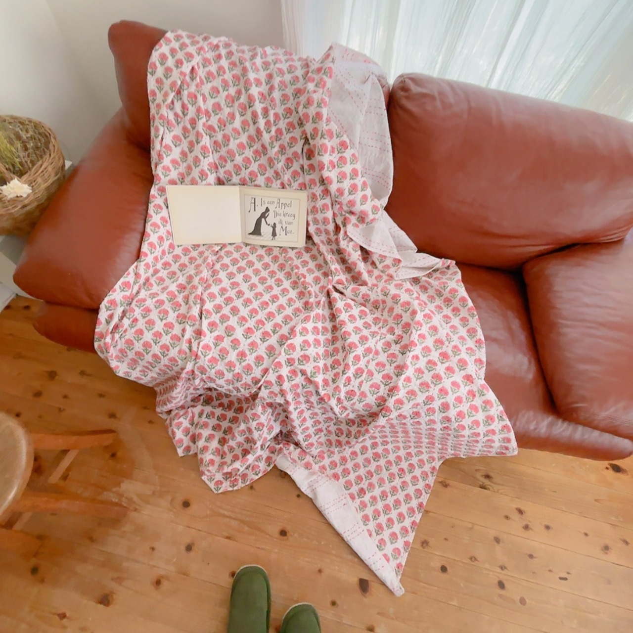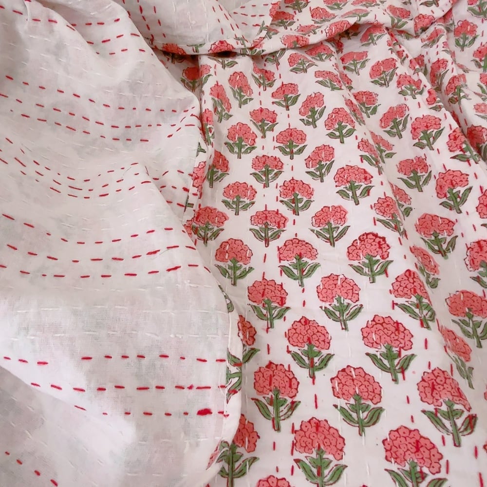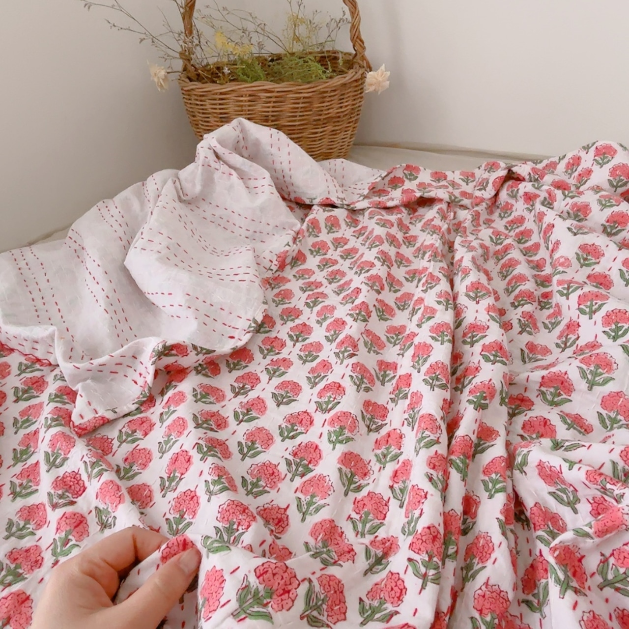 ブロックプリントキルトの優しい風合いのお色味が
