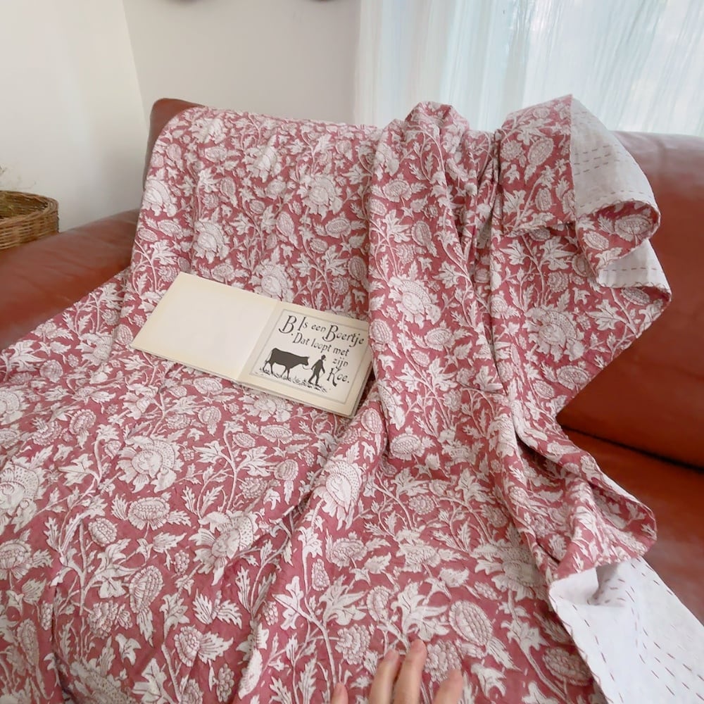 カンタキルト【M】サラシア・あかね ブロックプリントキルト