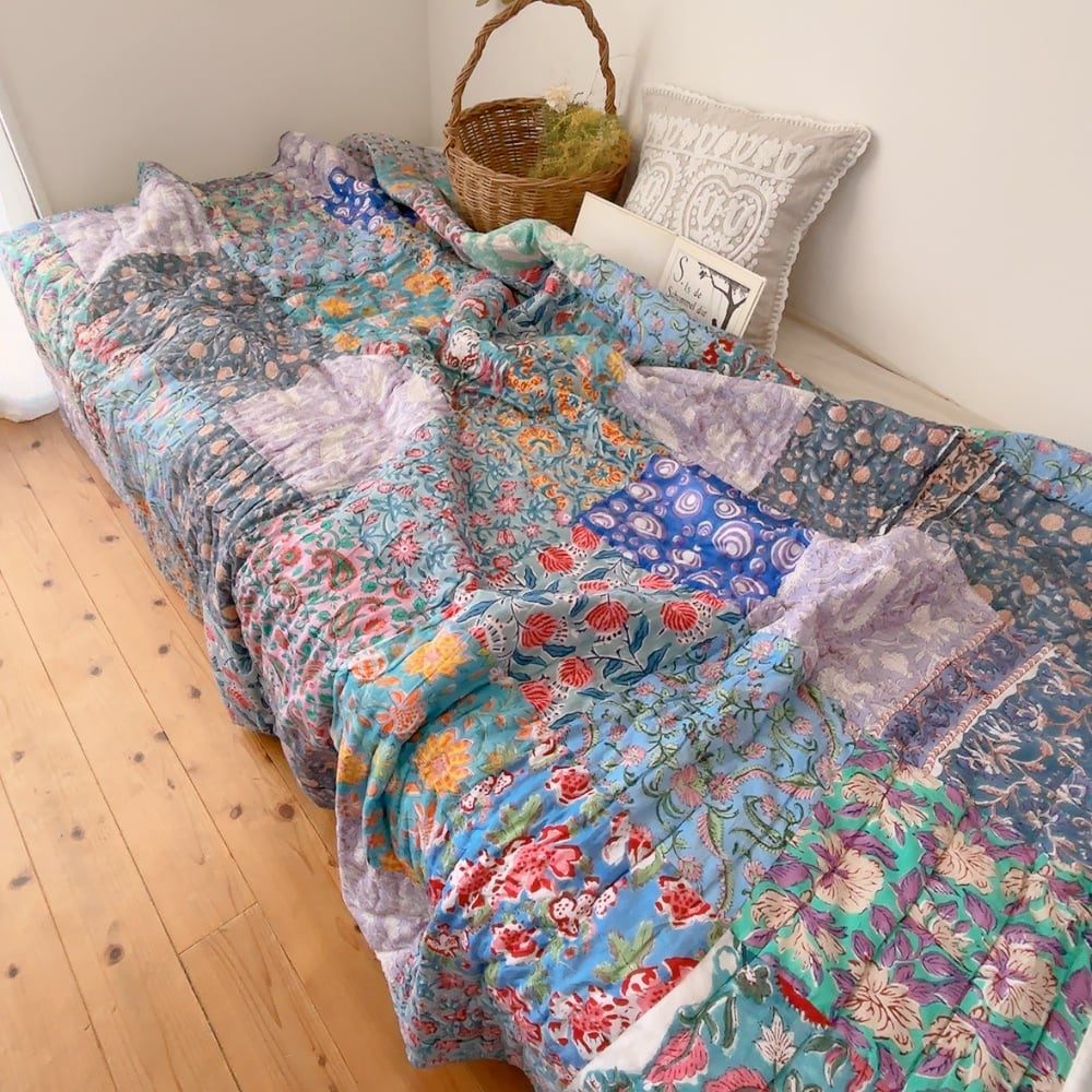 ブロックプリントキルトの愛らしい柄は、