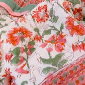 とても可愛らしいお花柄のブロックプリントの綿入りキルトです。
