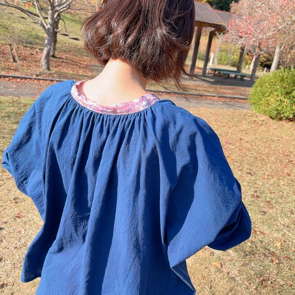 【ライラック】イニンディゴ×ブロックプリント ブラウス