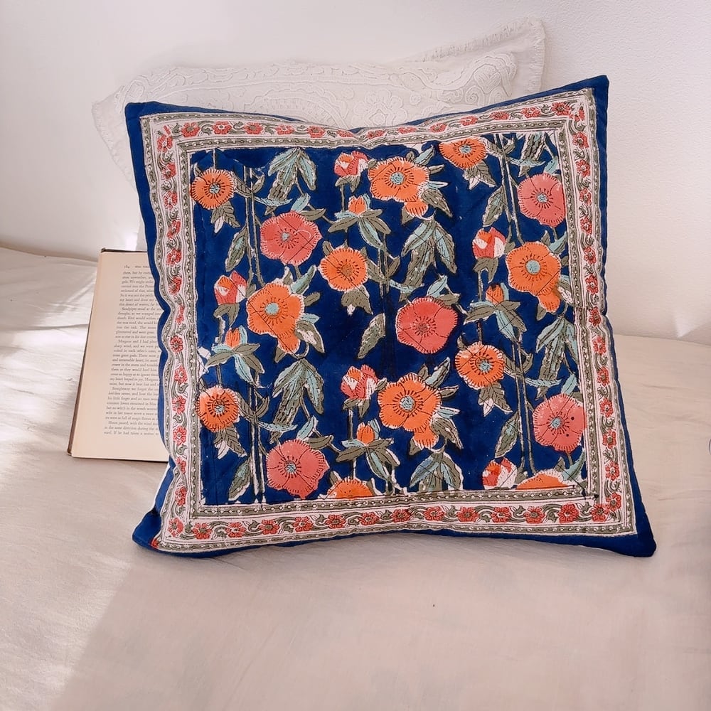 綿入り【L】クッションカバー付き ポピーガーデン ブロックプリントキルト