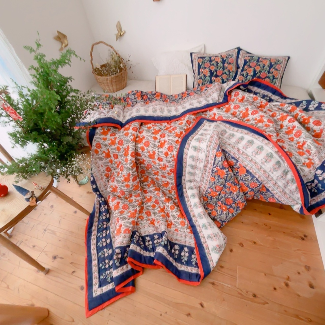 綿入り【L】ポピーガーデン ブロックプリントキルト