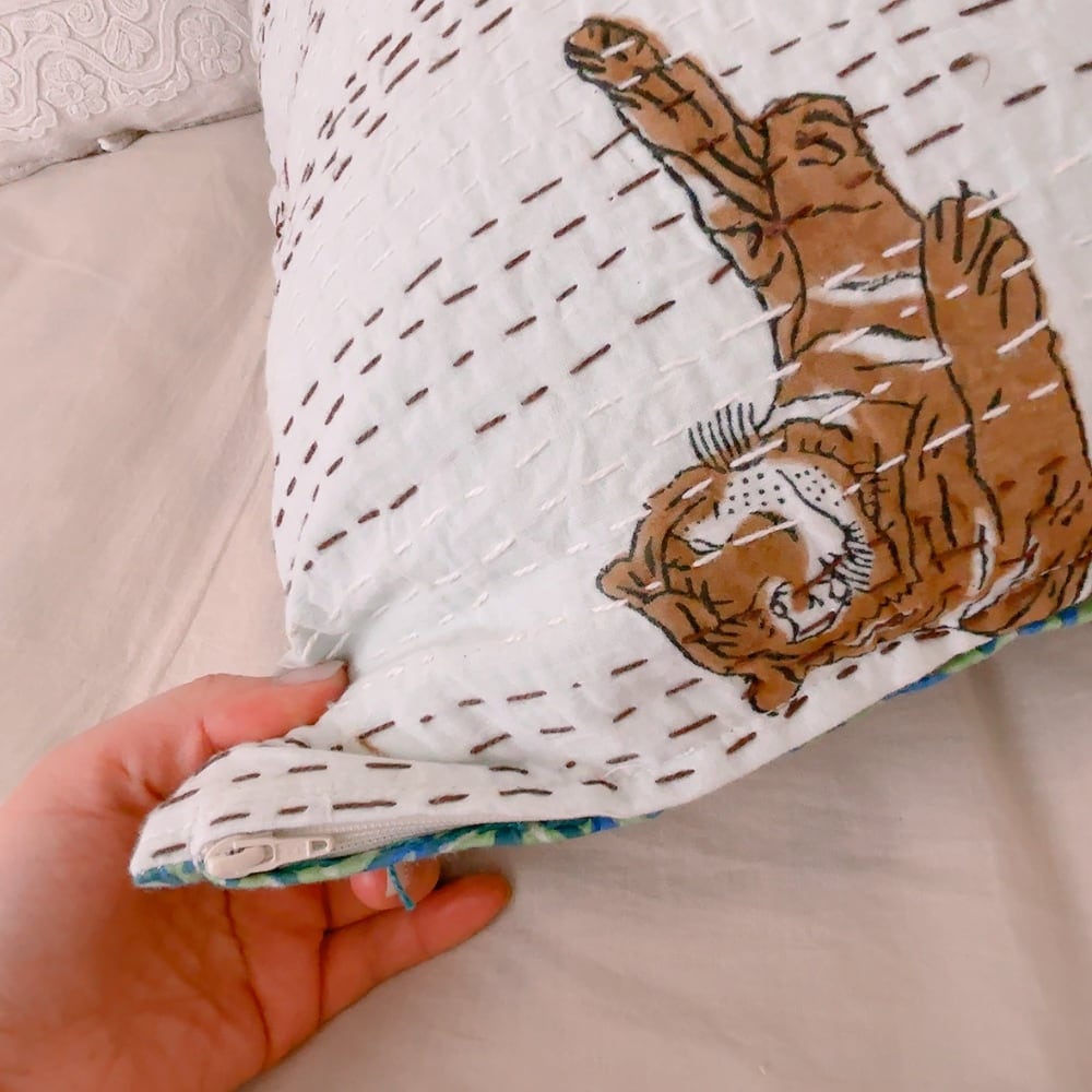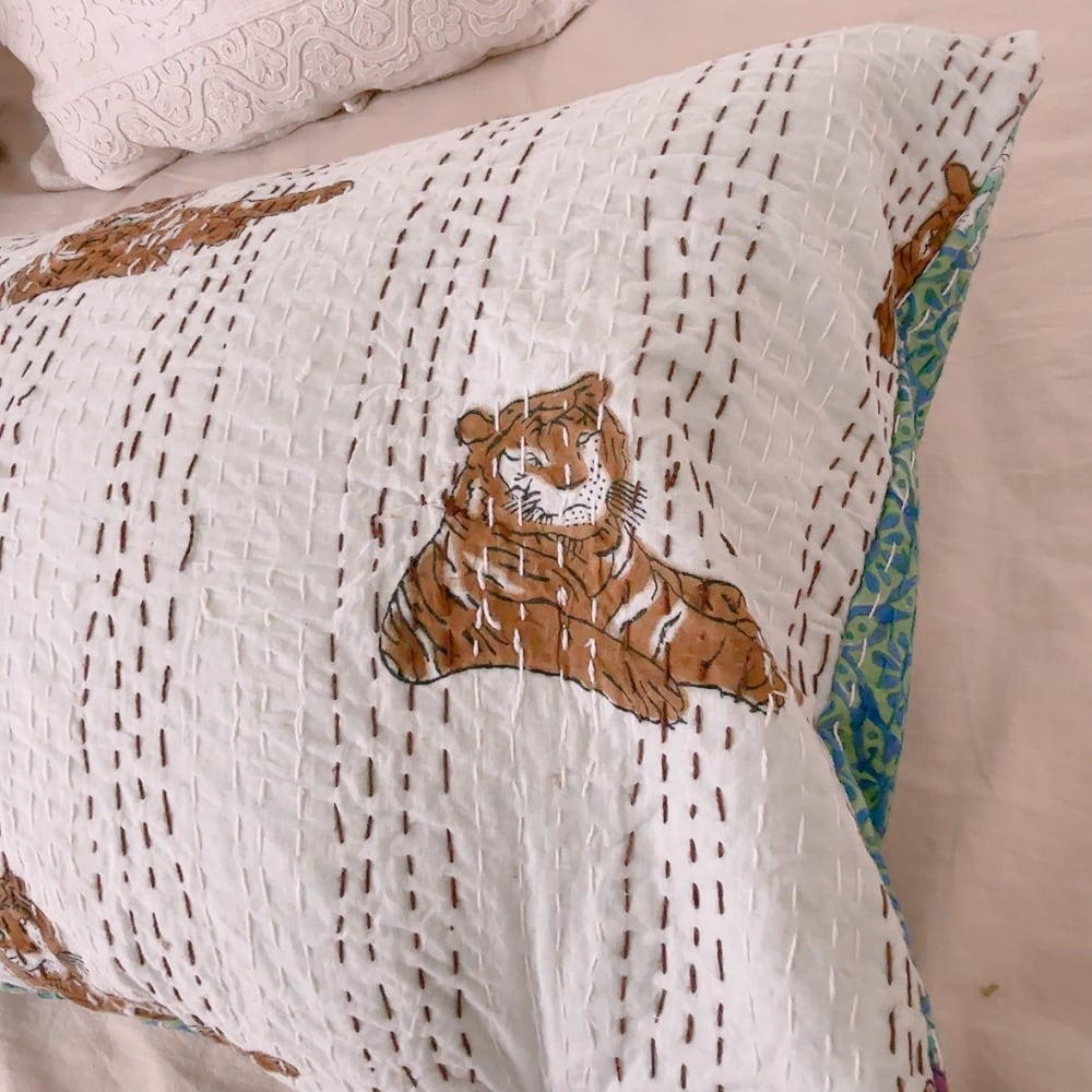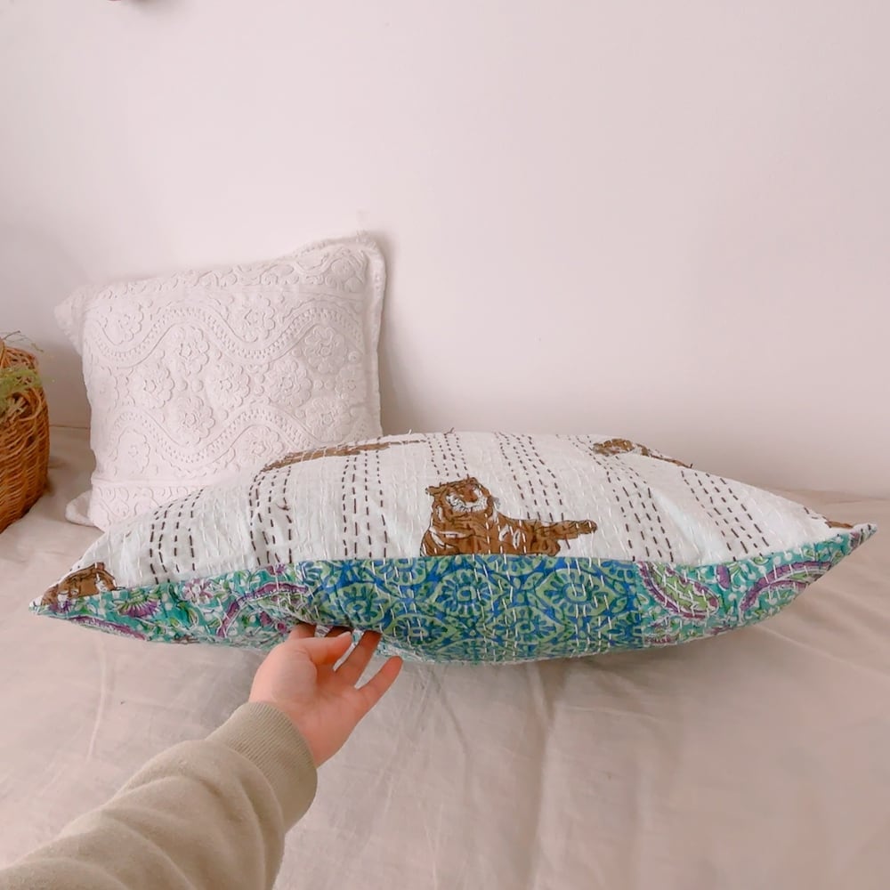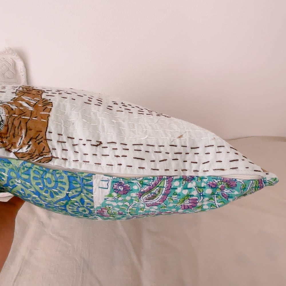 【枕カバー】トラさん×グリーン(A) パッチワーク