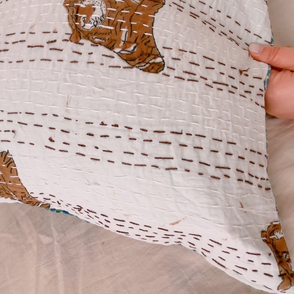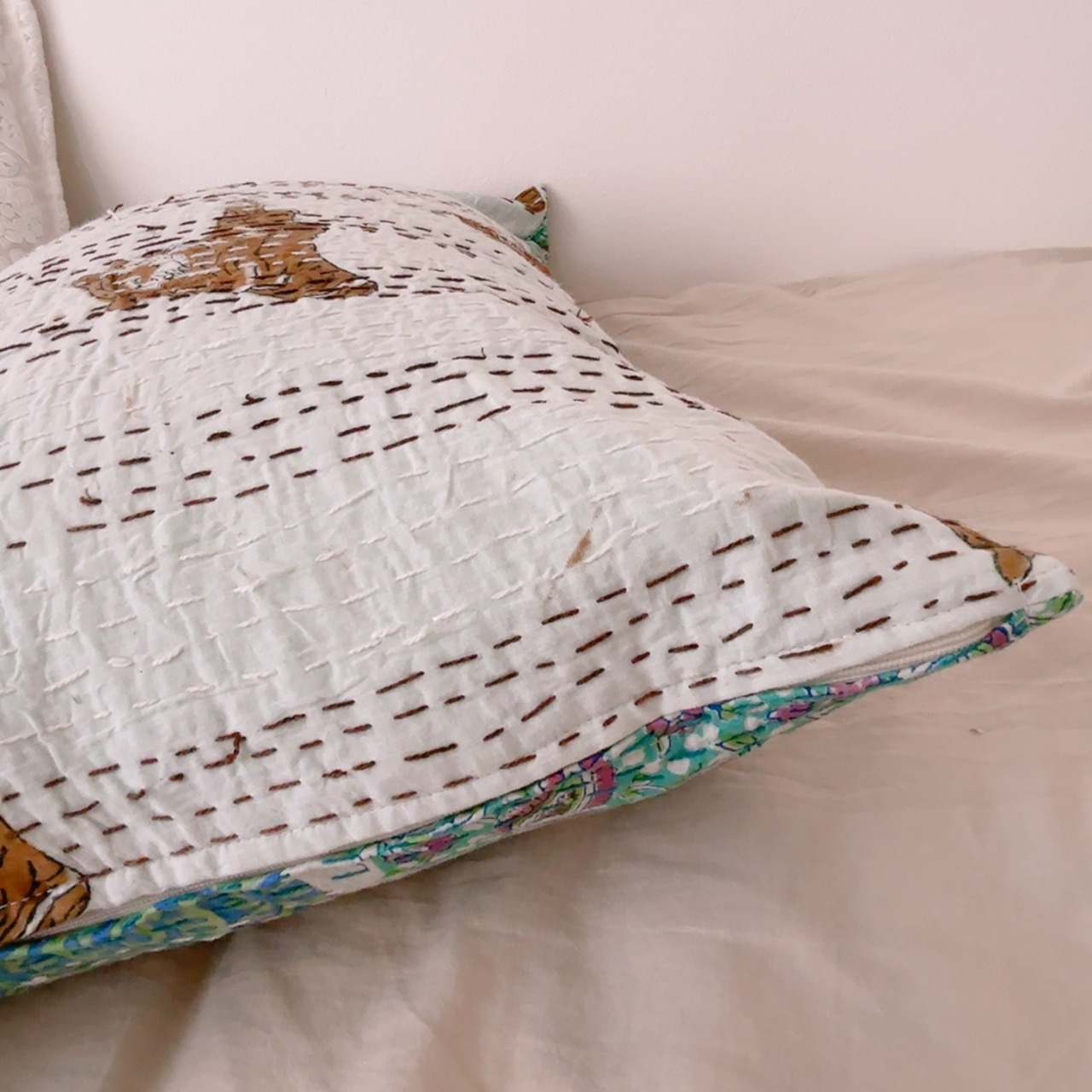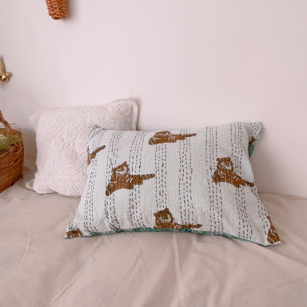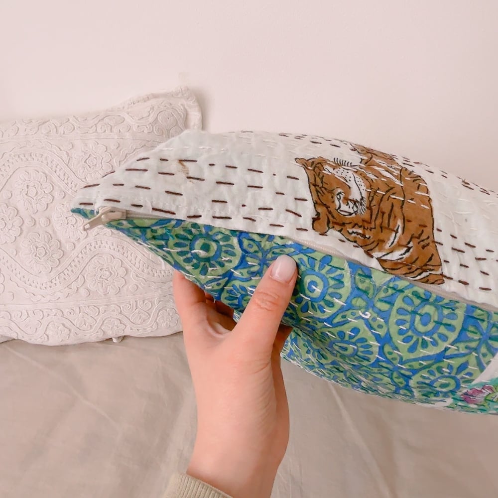 【枕カバー】トラさん×グリーン(A) パッチワーク