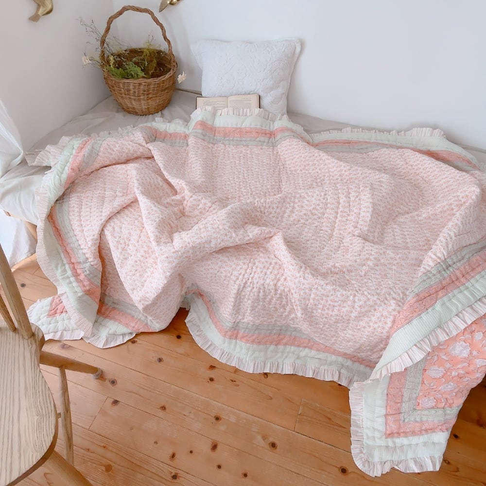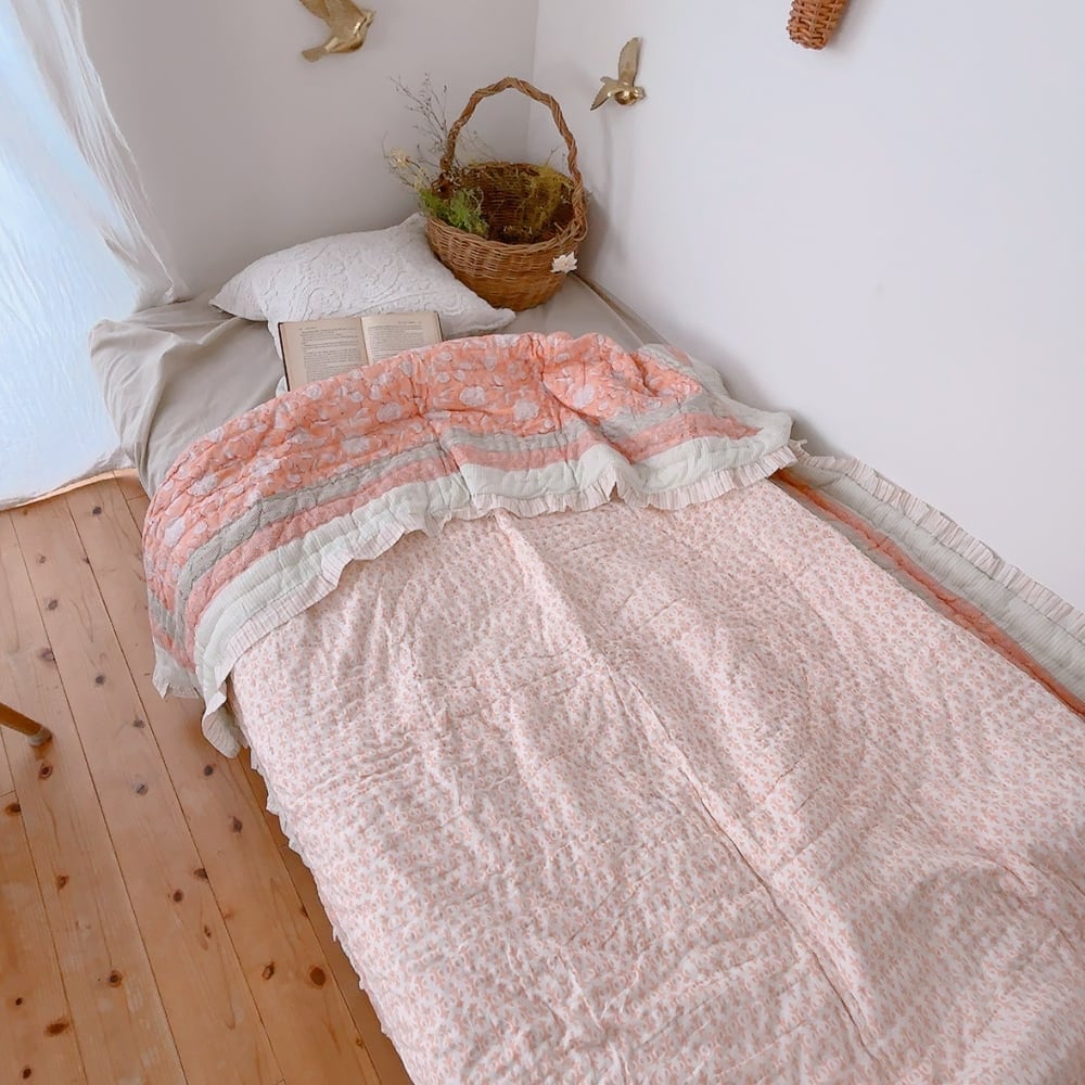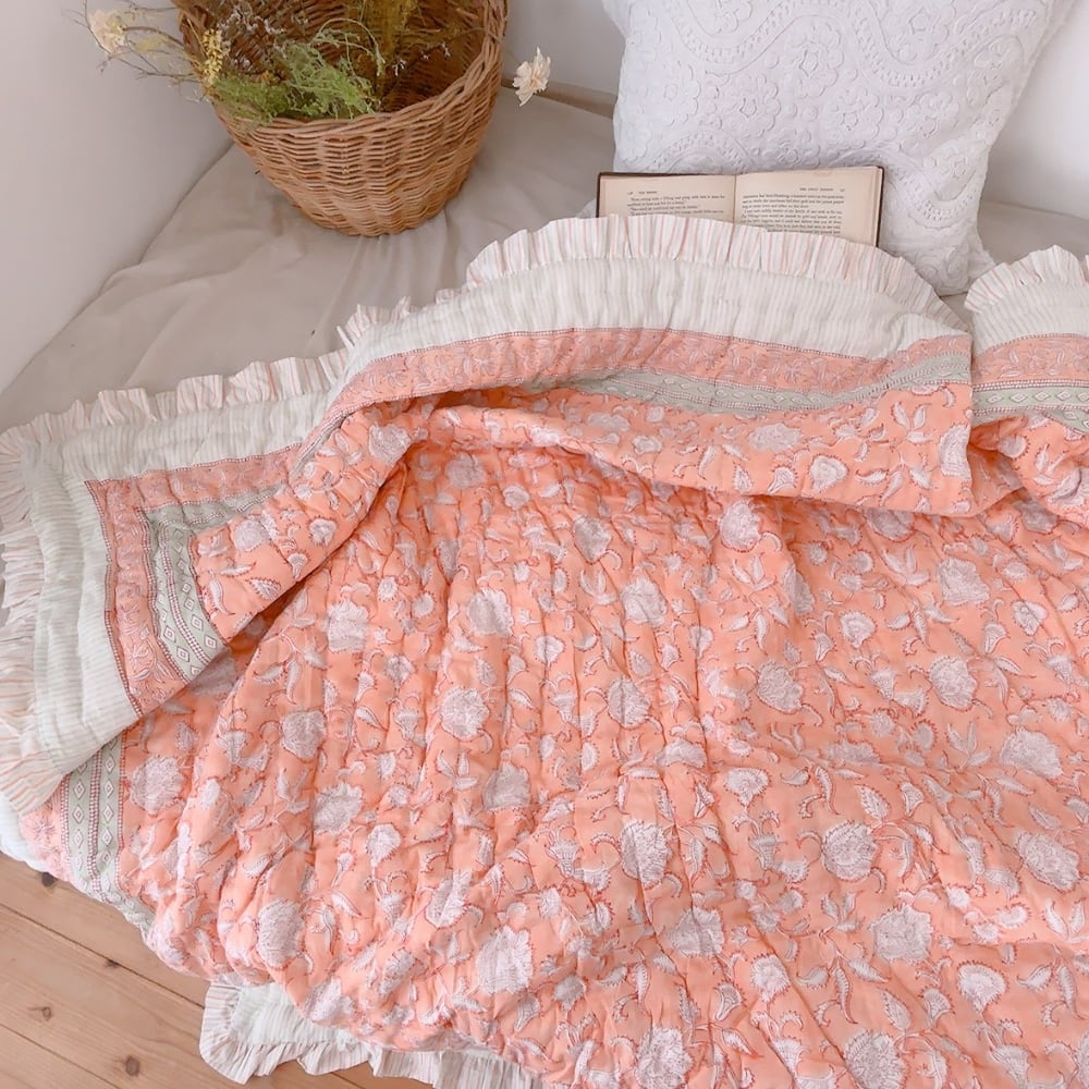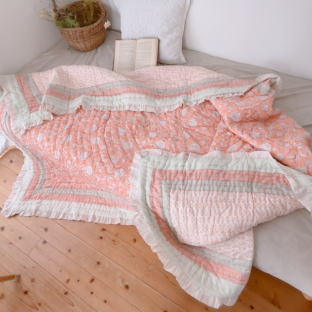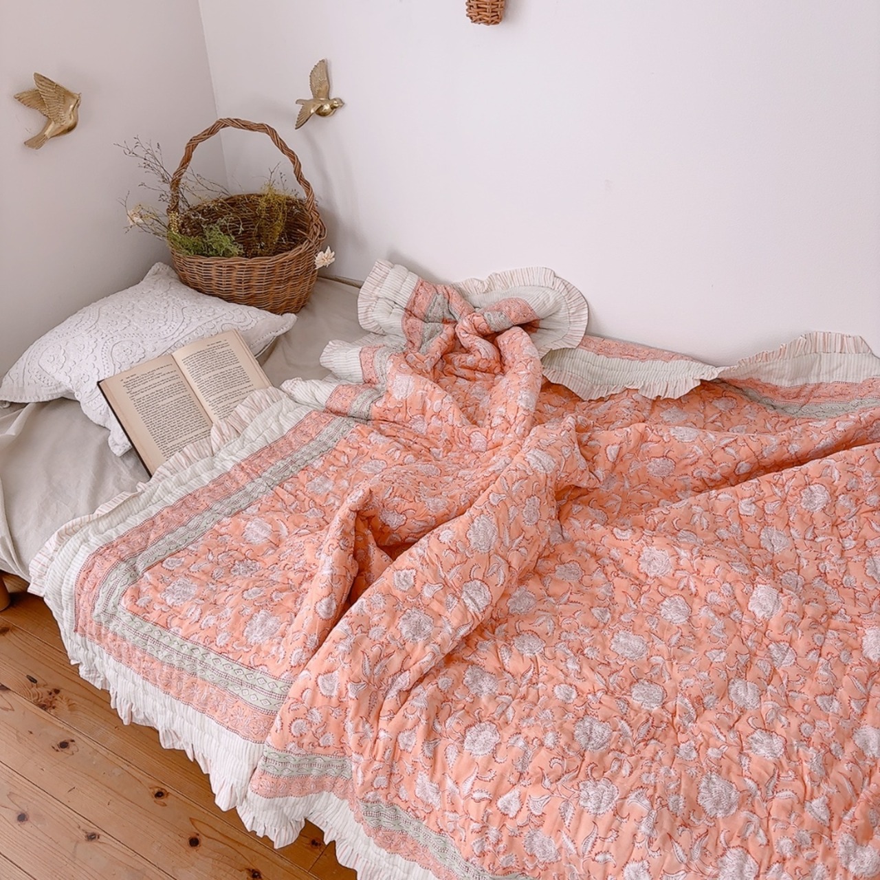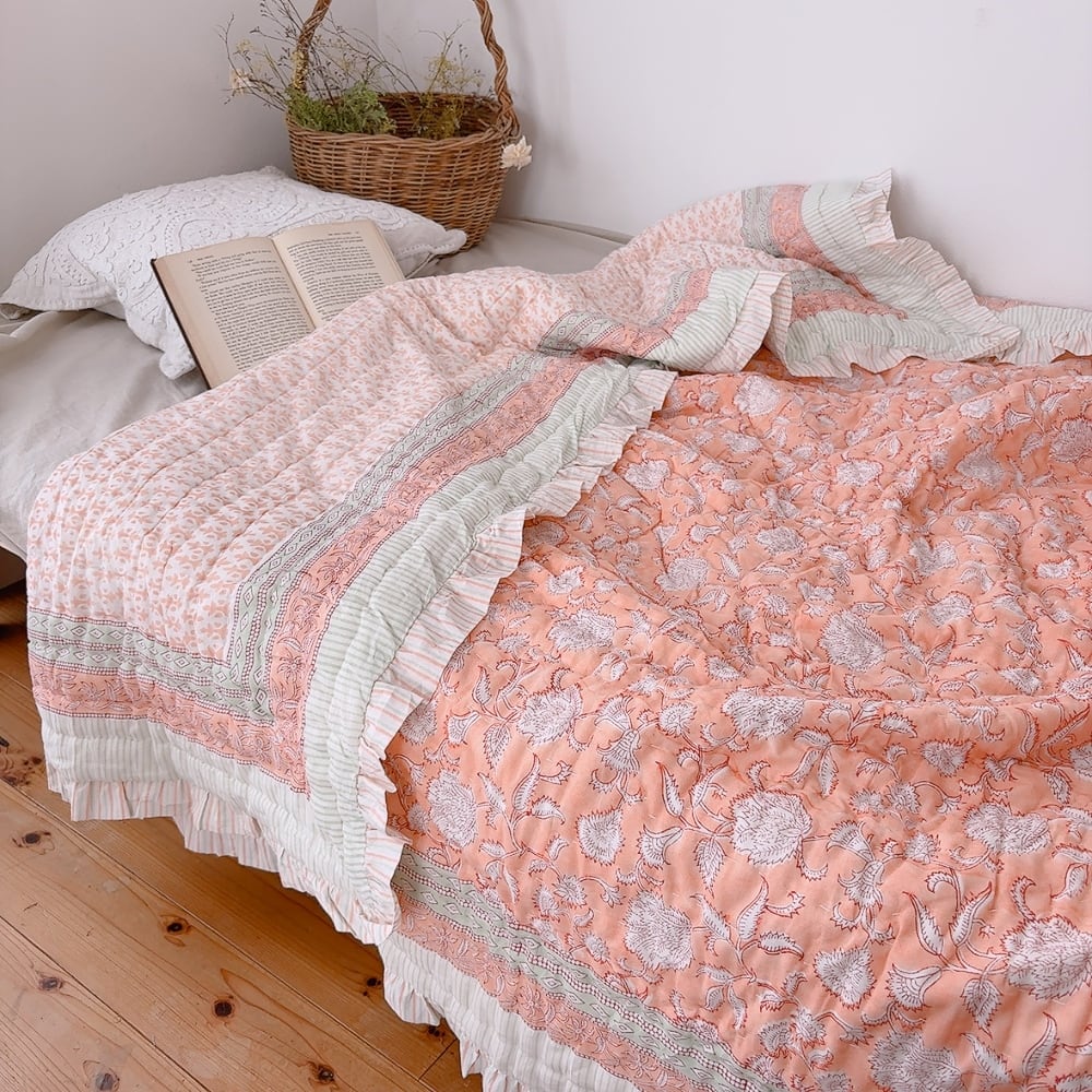 【受注】綿入りフリル【M】 プロヴァンスの花の庭 ブロックプリントキルト