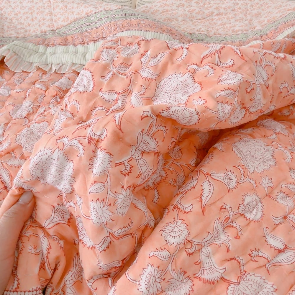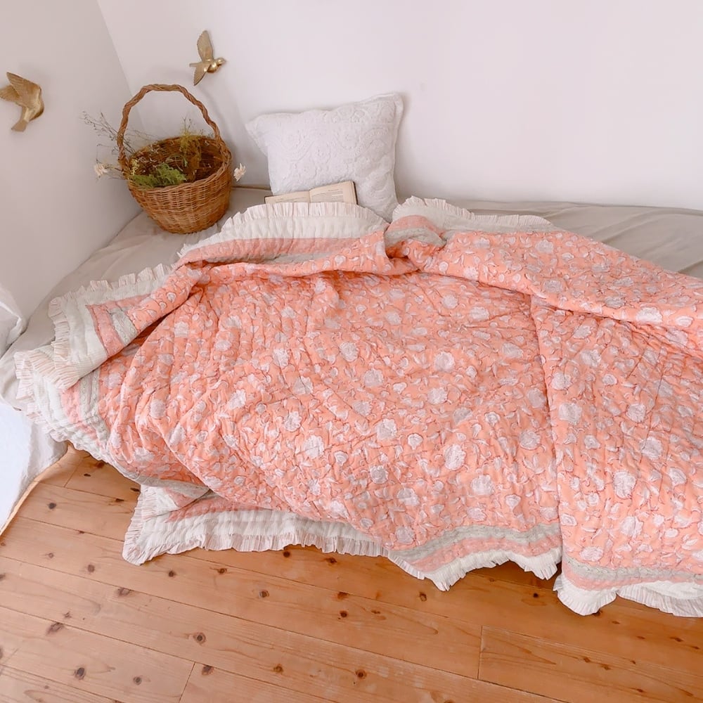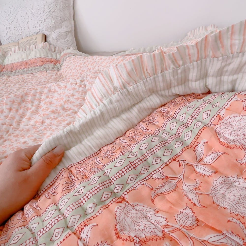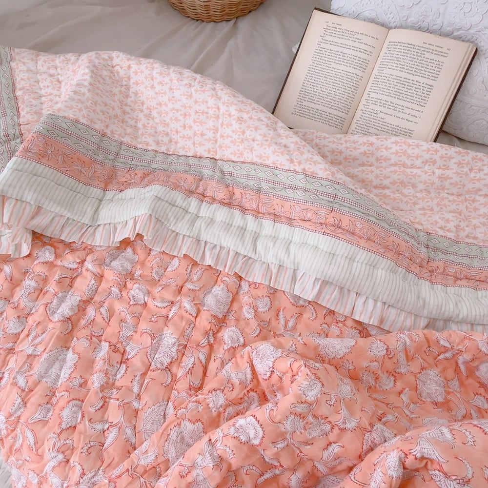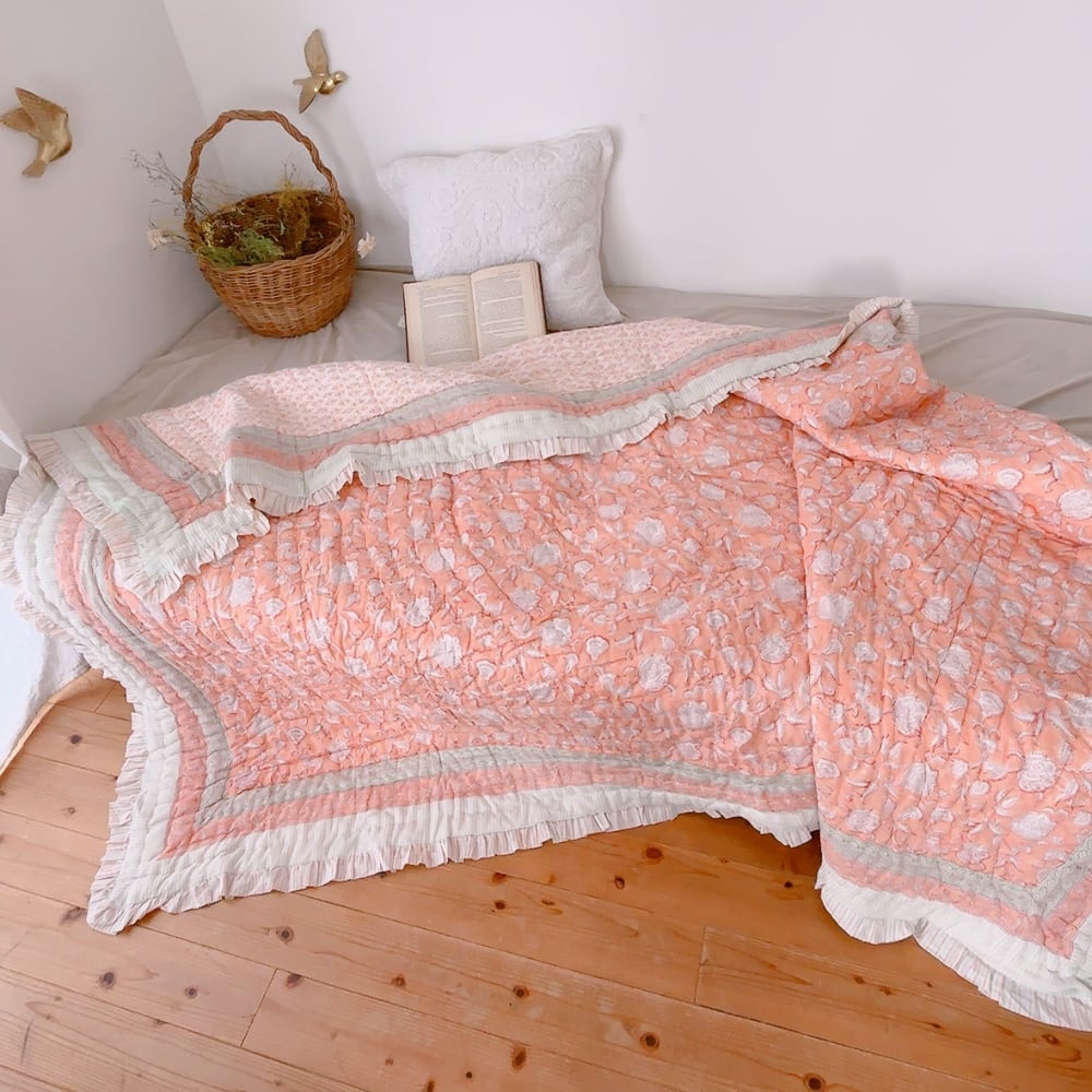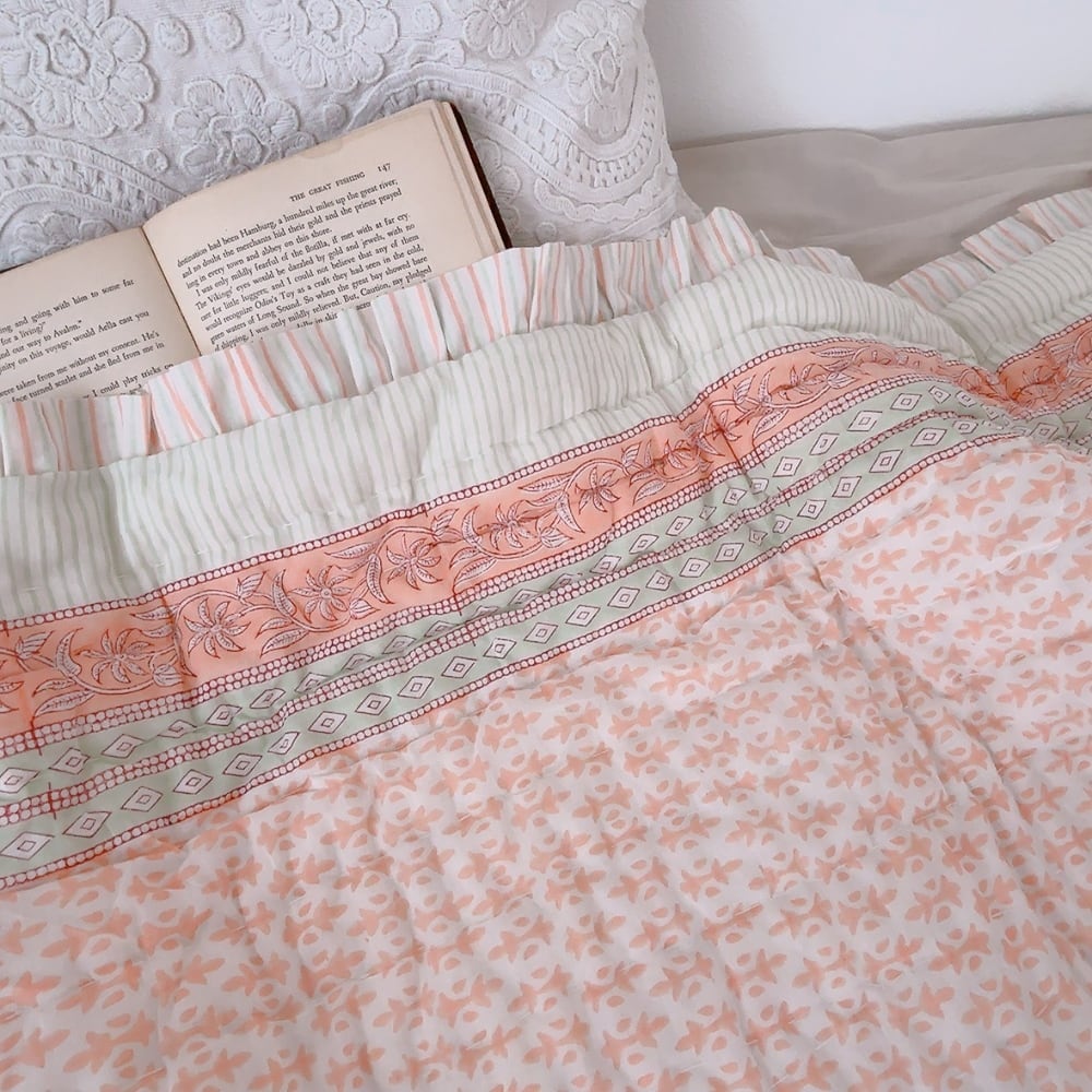 【受注】綿入りフリル【M】 プロヴァンスの花の庭 ブロックプリントキルト