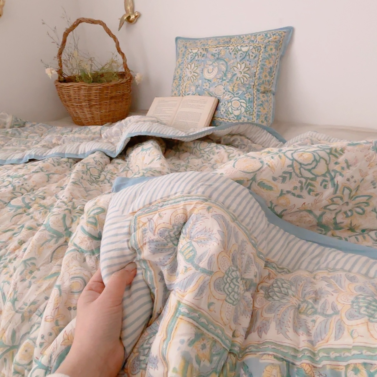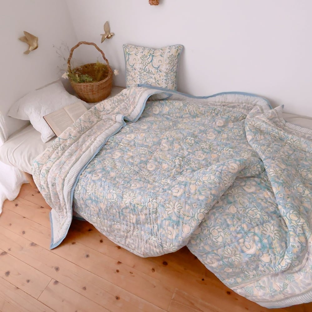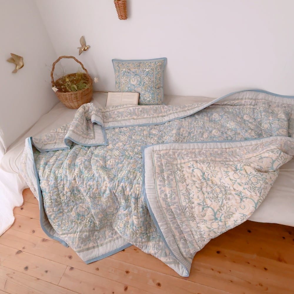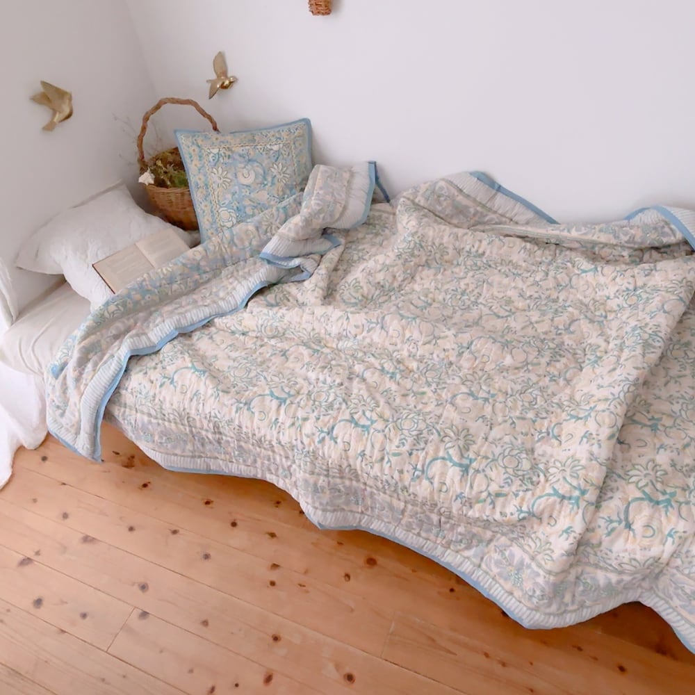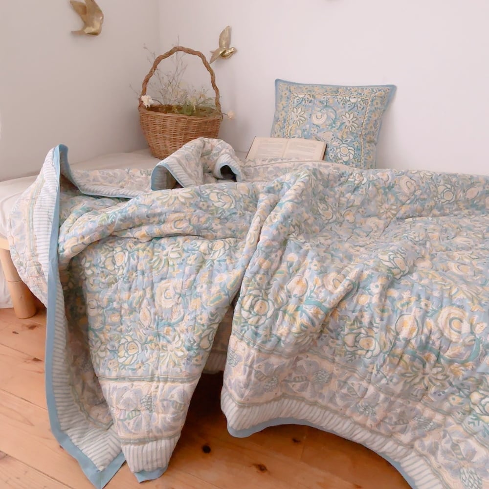 ブロックプリントキルトの愛らしい柄は、