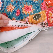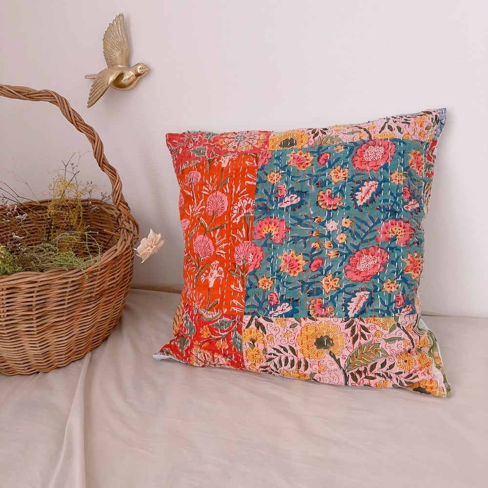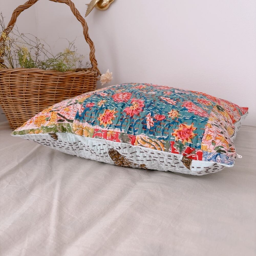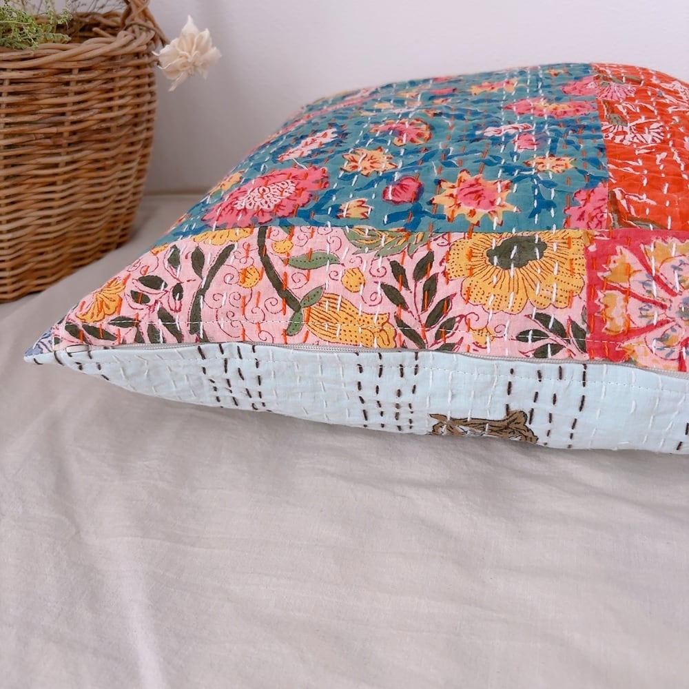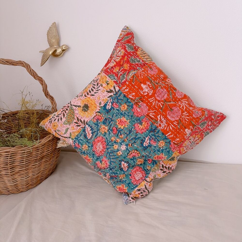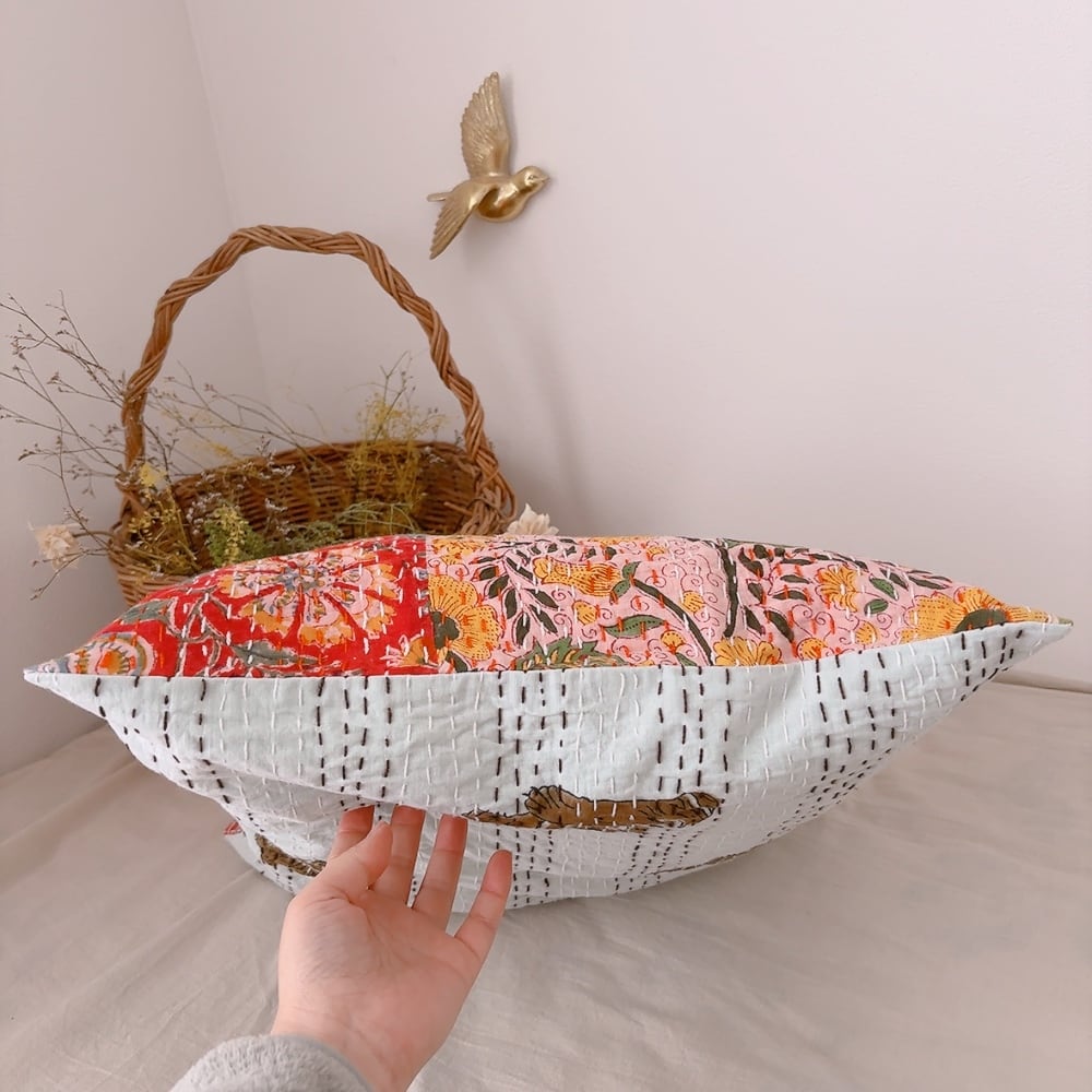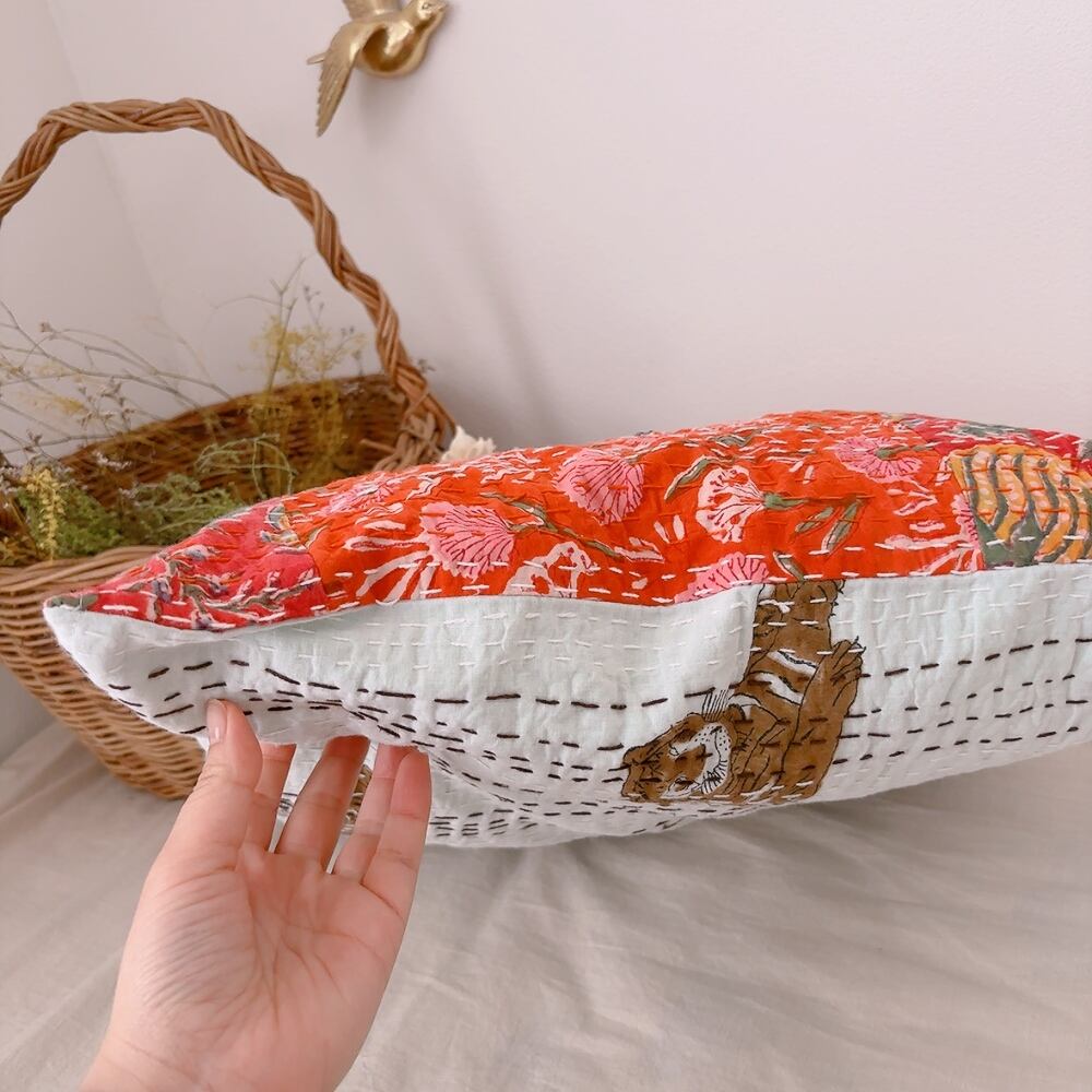 【クッションカバー】トラさん×カラフル(コーラルピンク) パッチワーク
