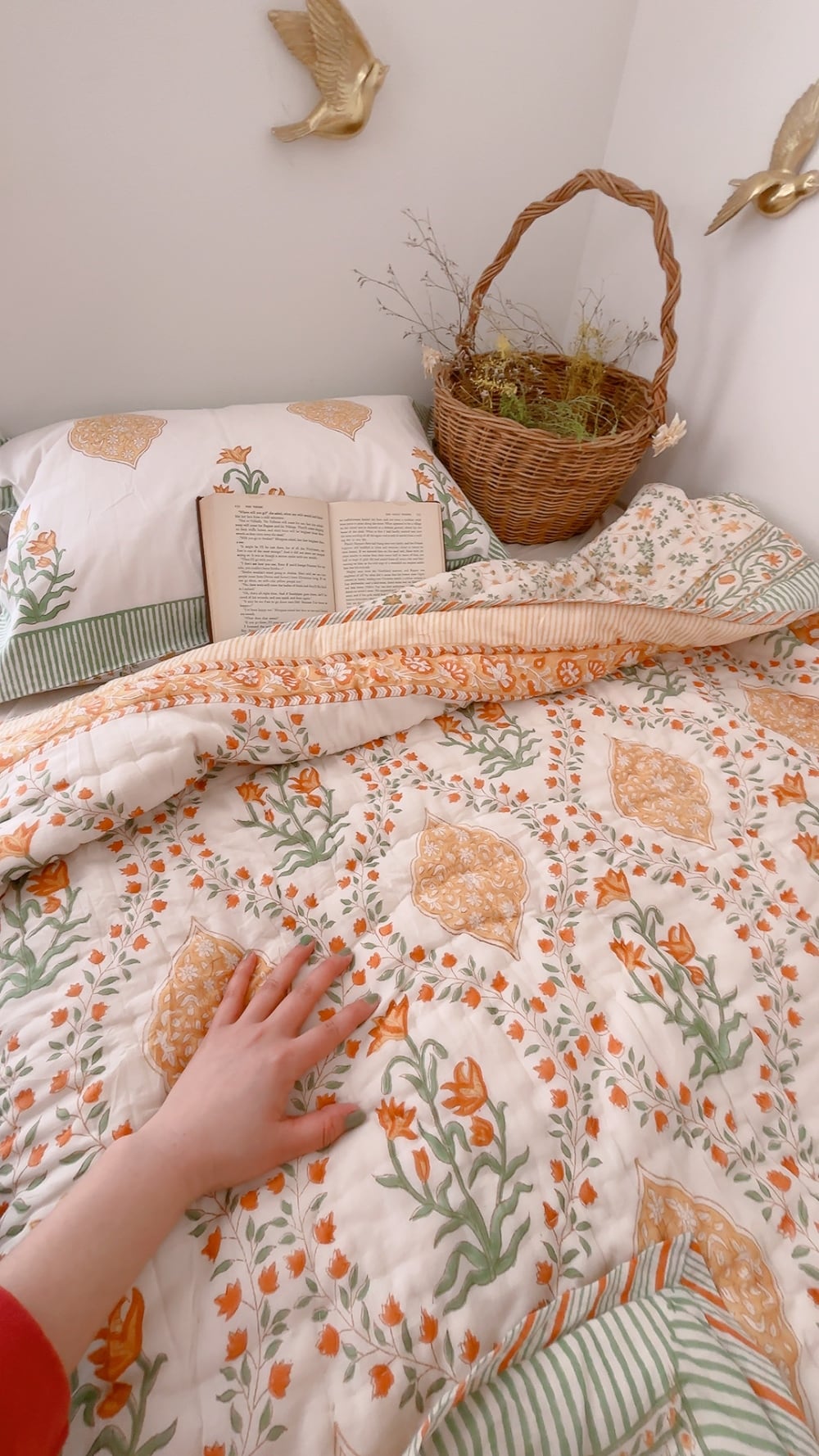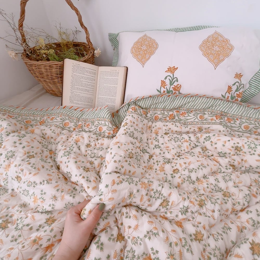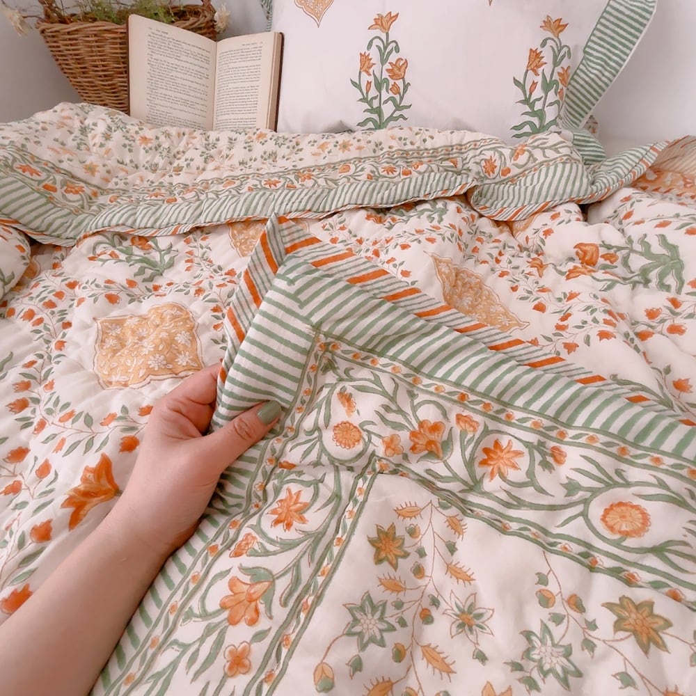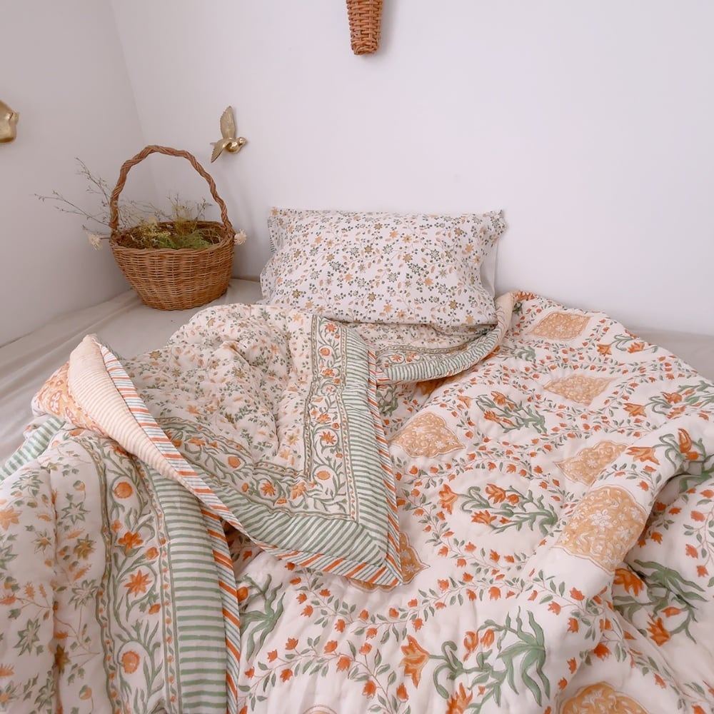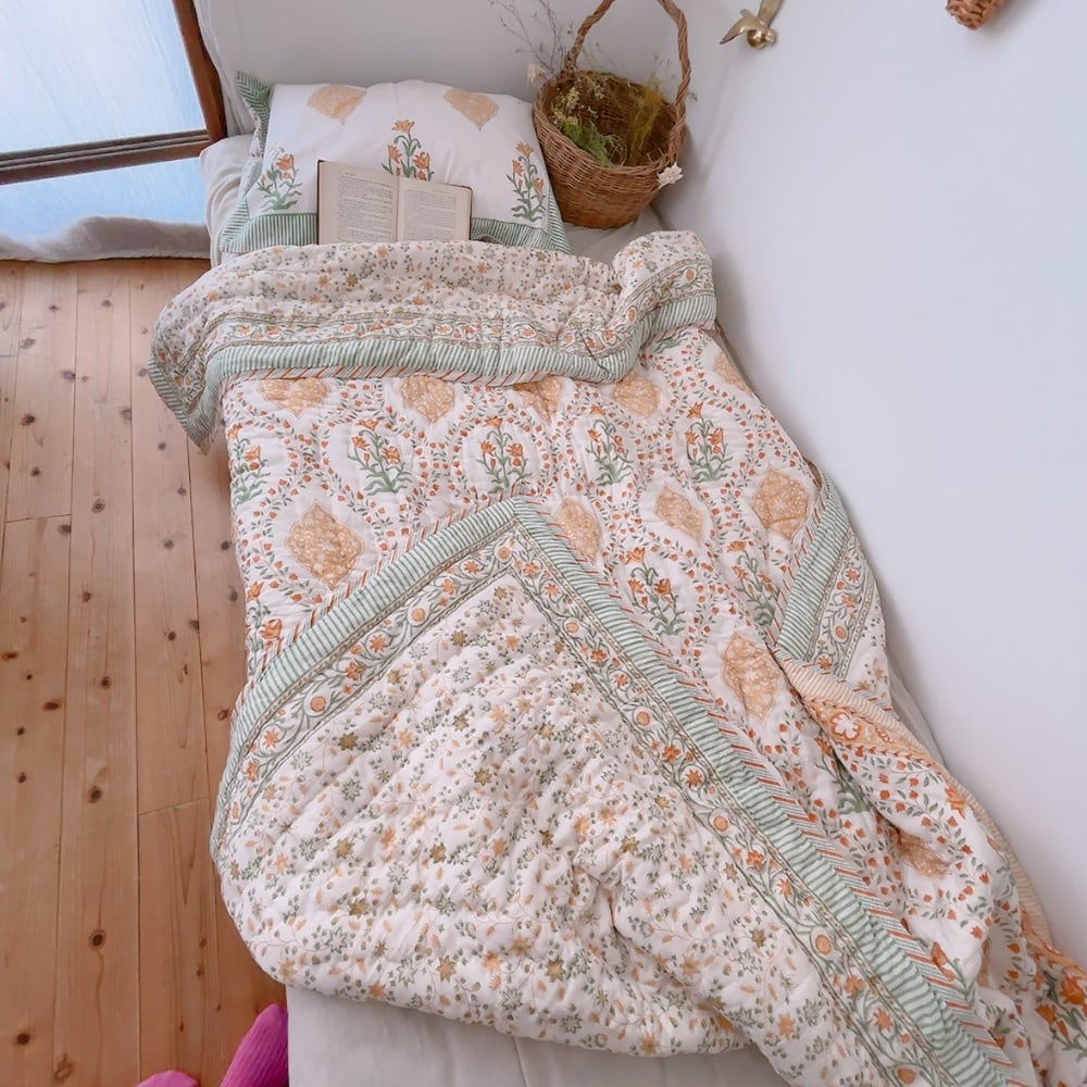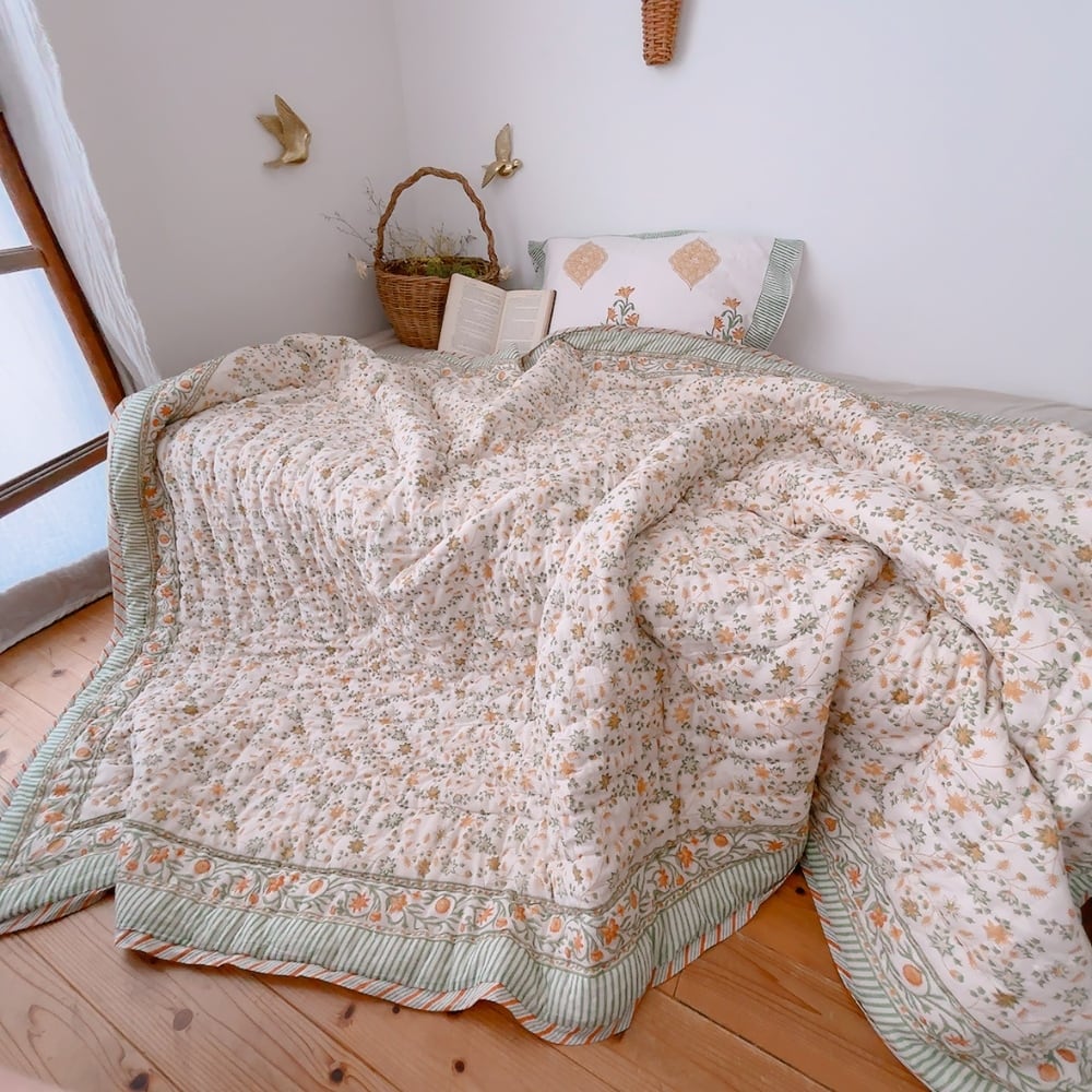 ブロックプリントキルトの愛らしい柄は、