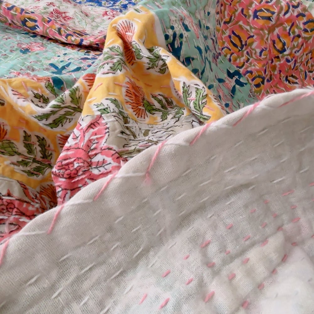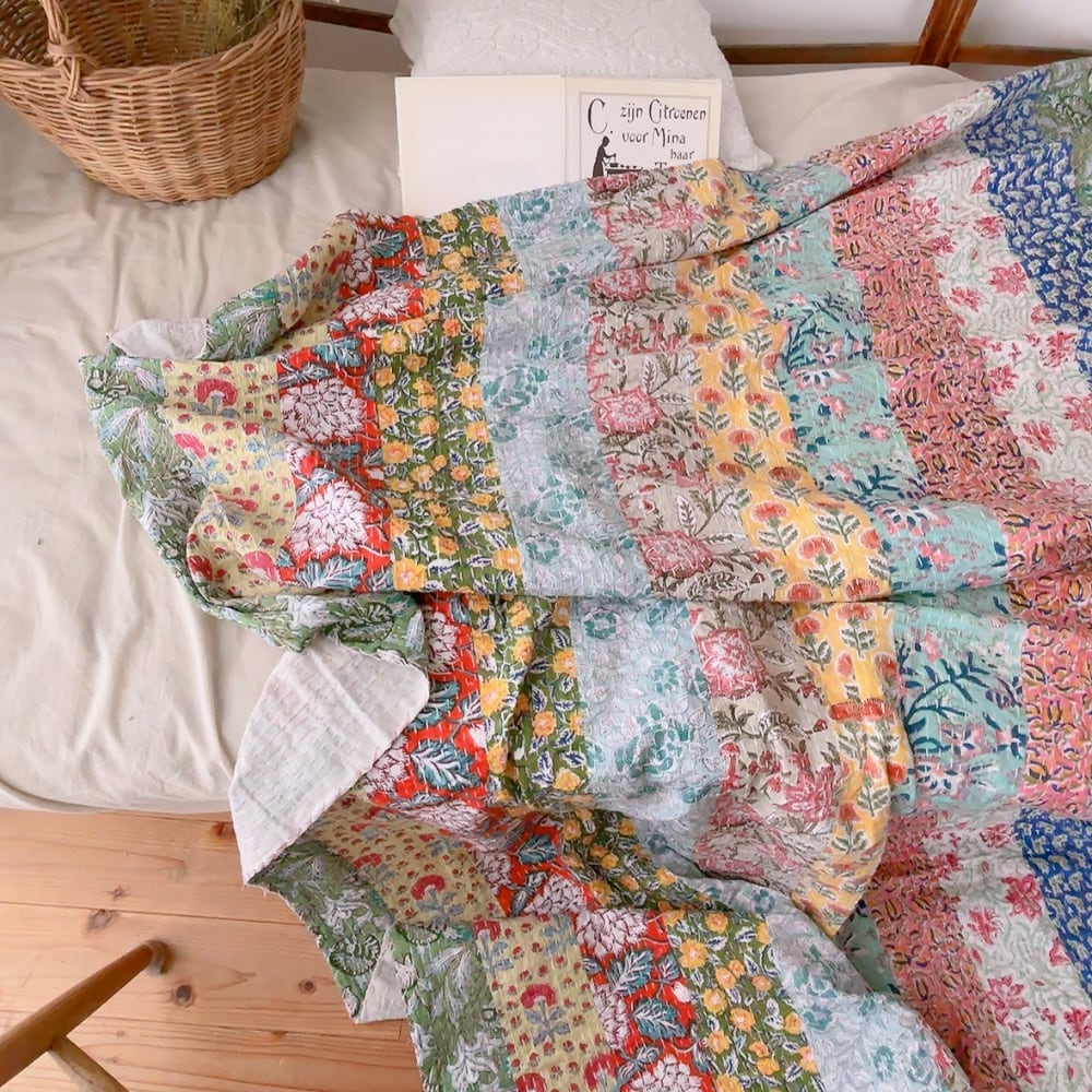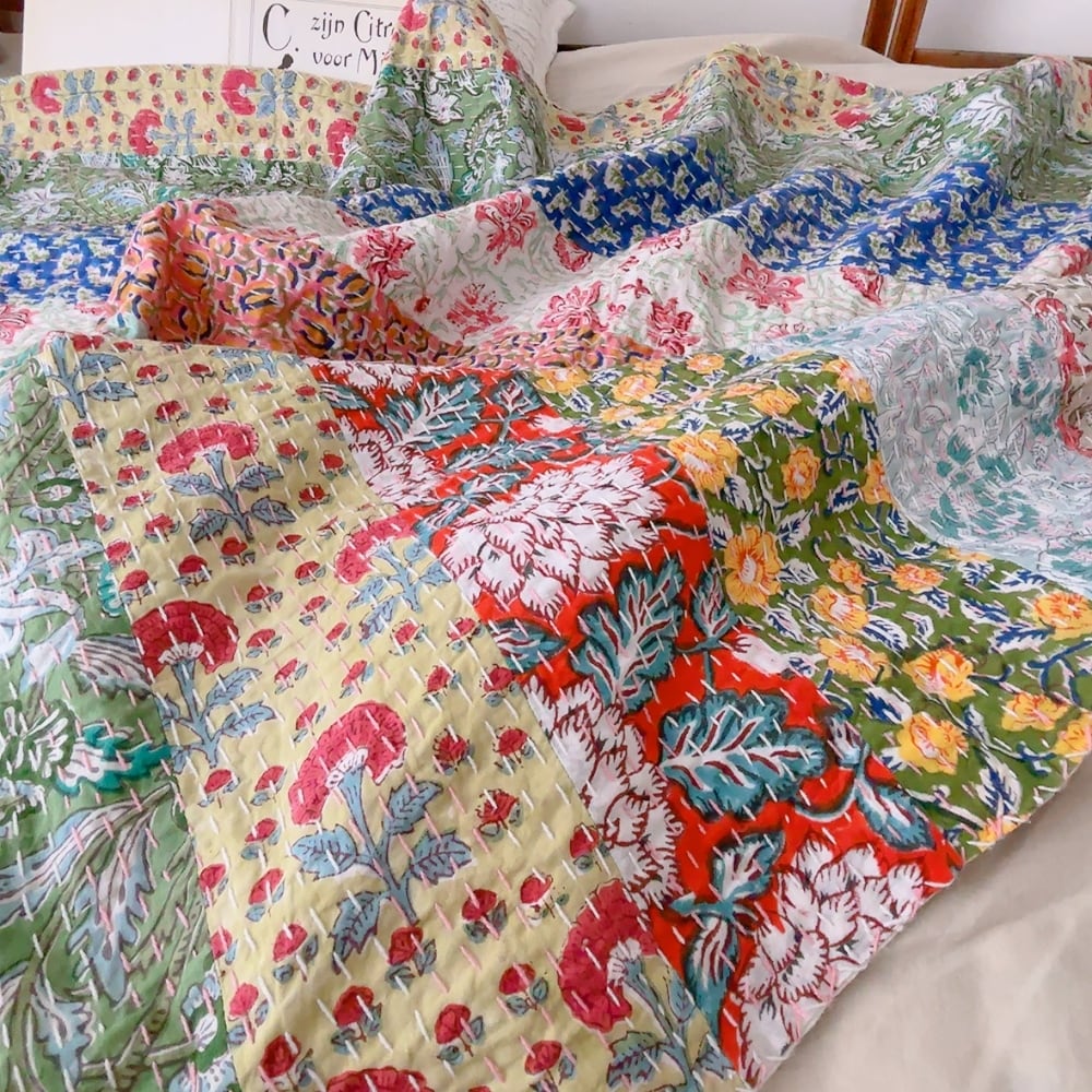 ブロックプリントのカンタキルトです。