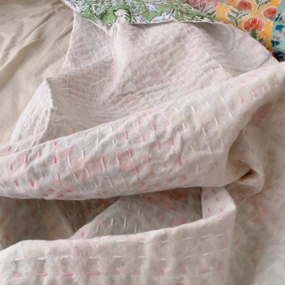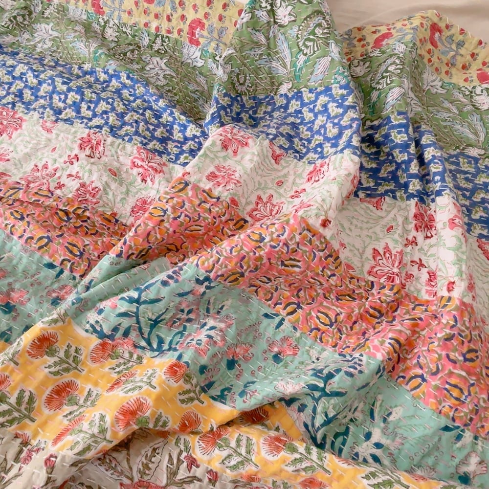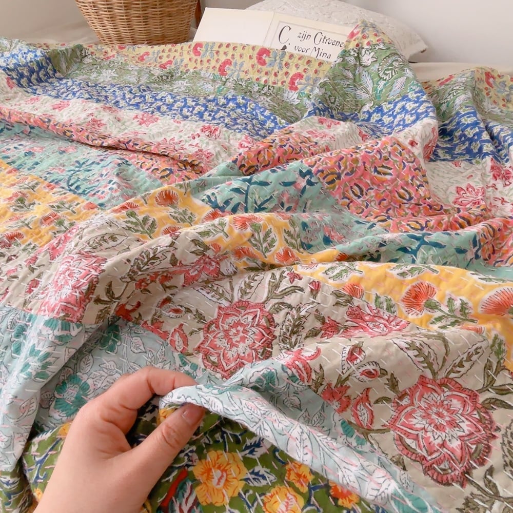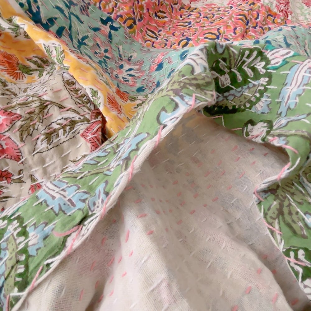 ブロックプリントのカンタキルトです。