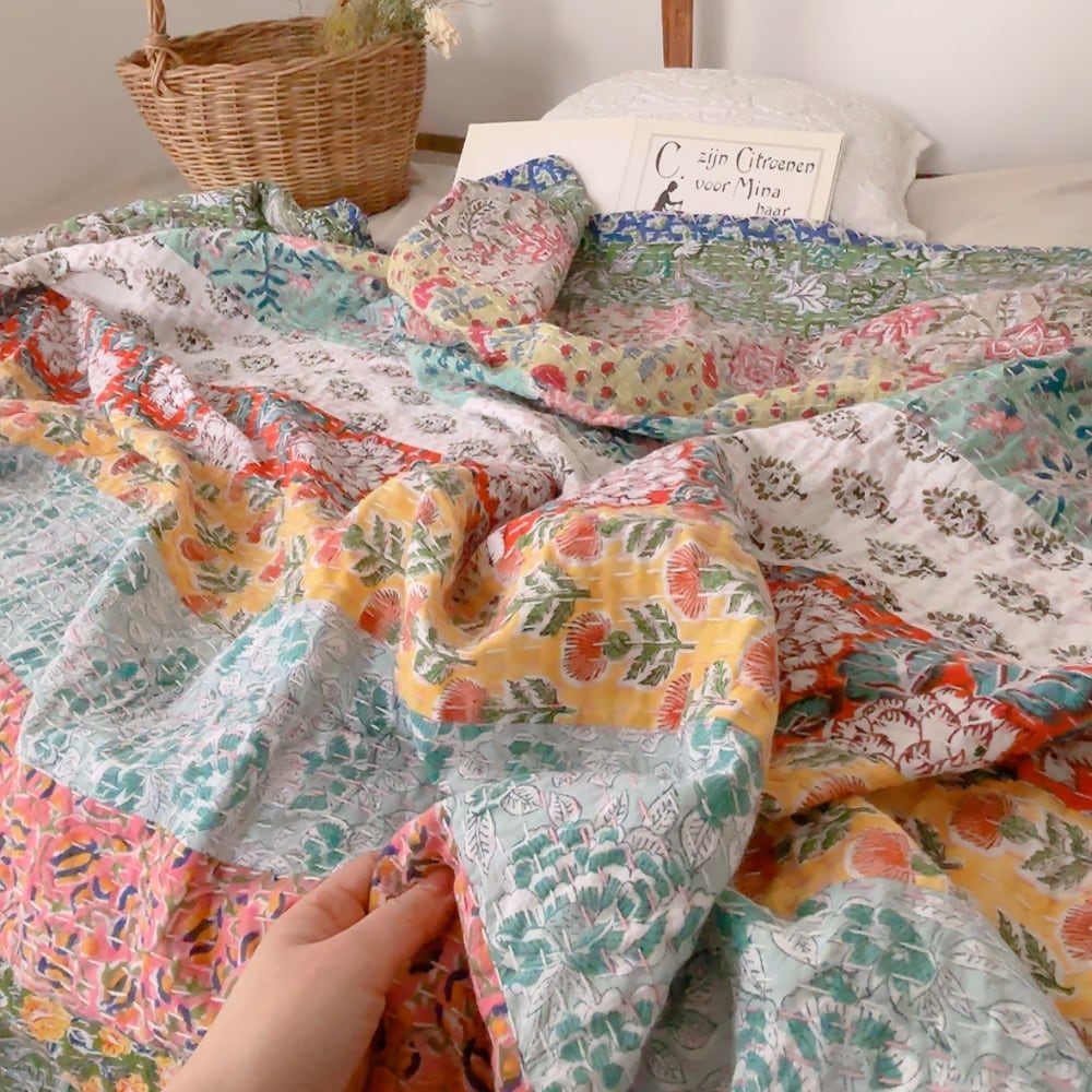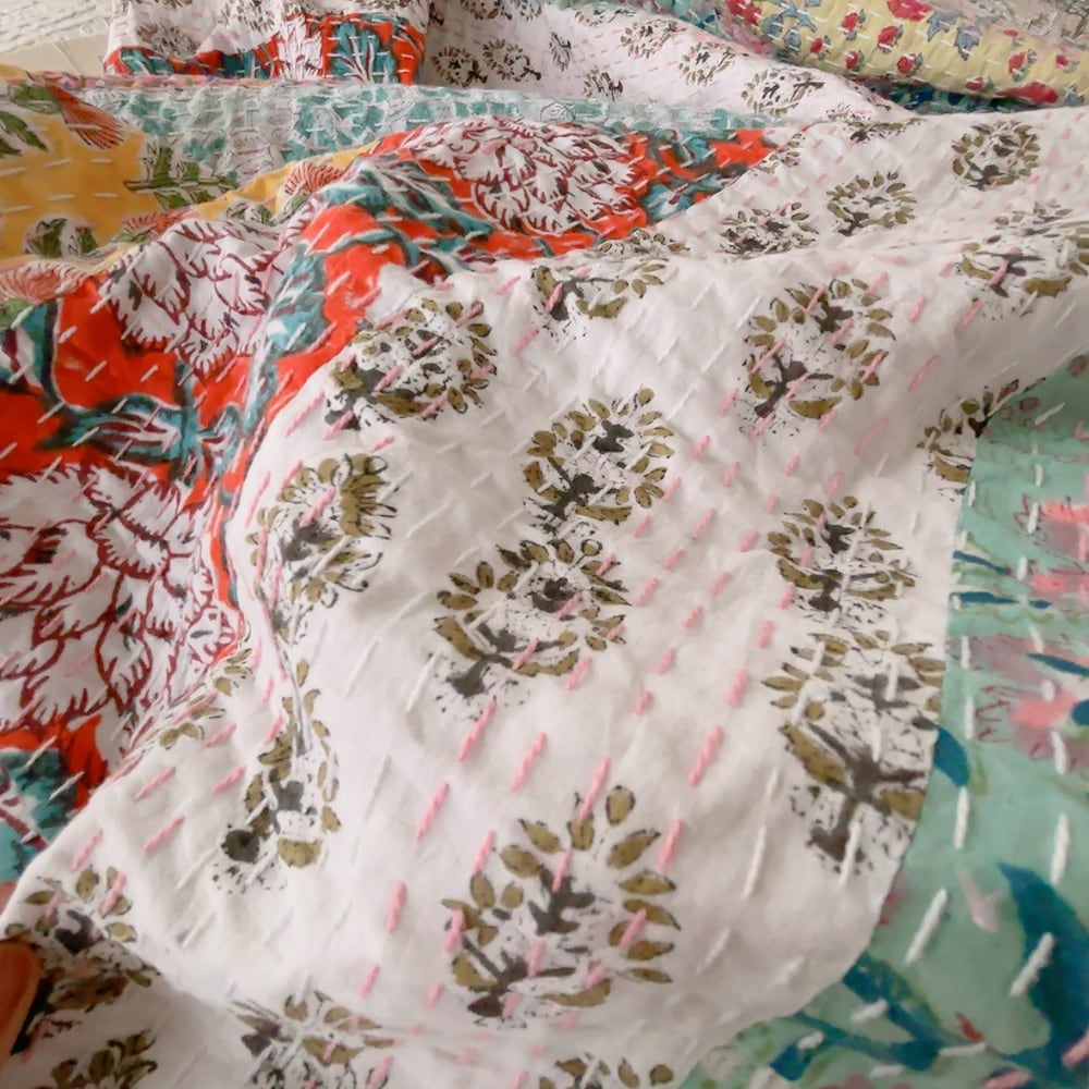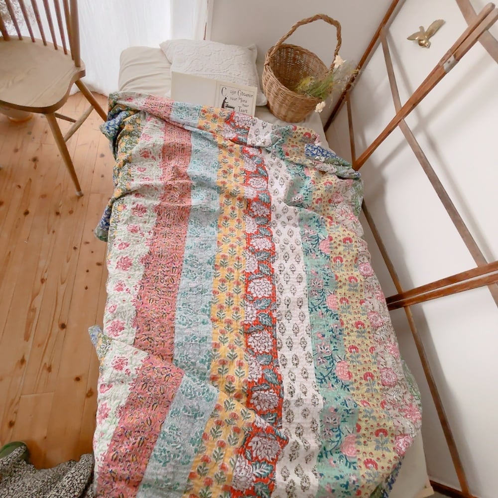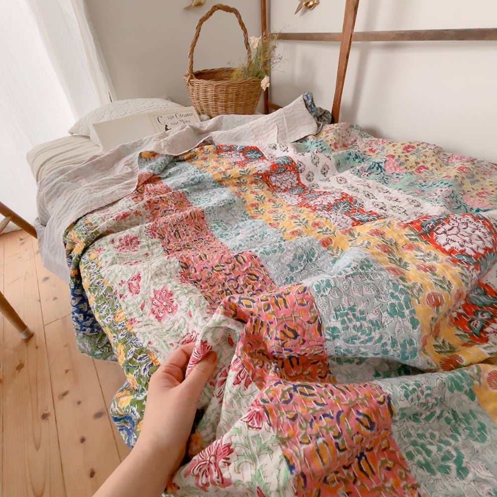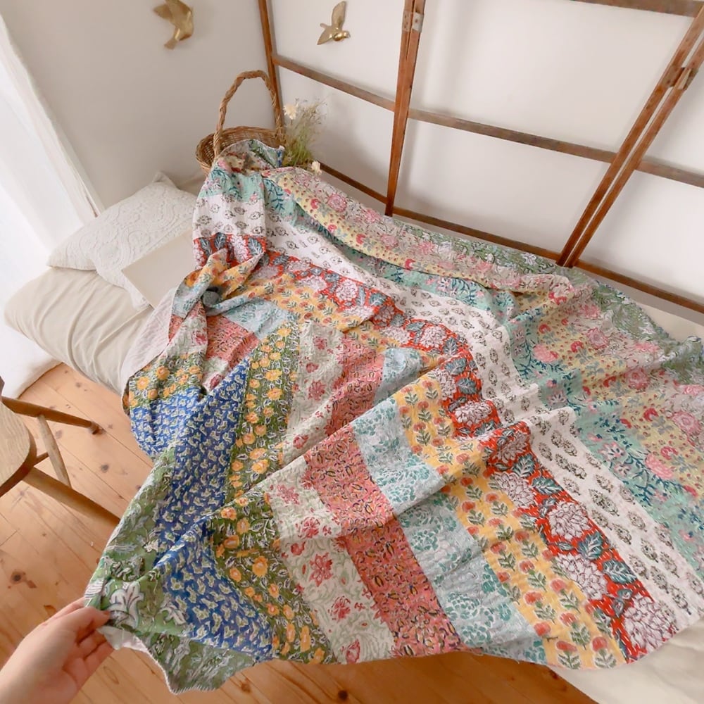 ブロックプリントのカンタキルトです。