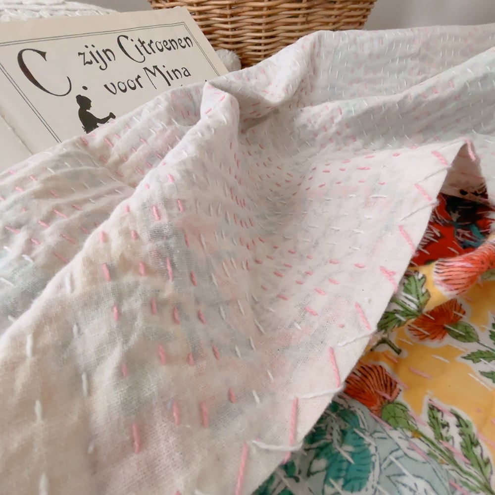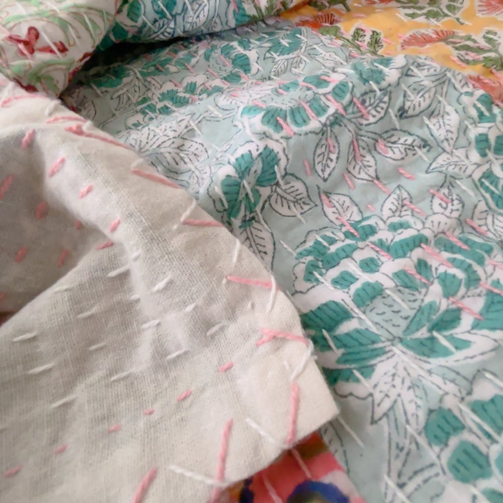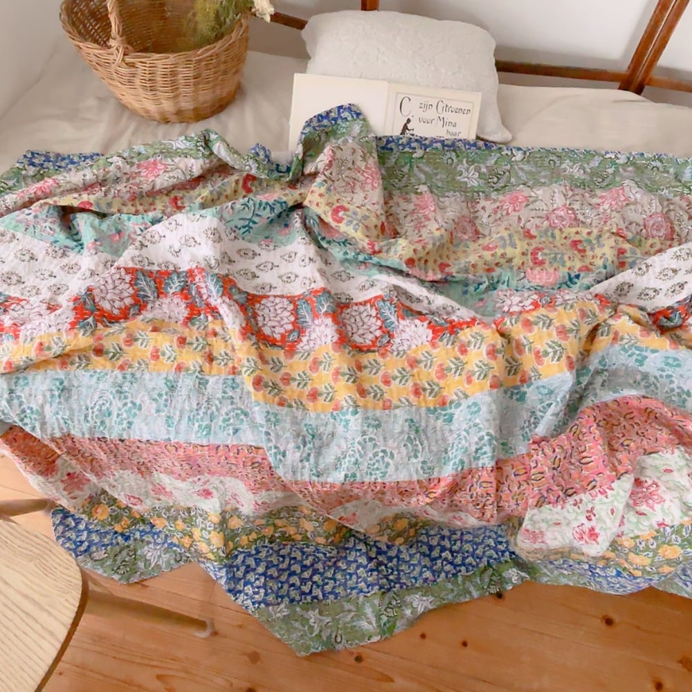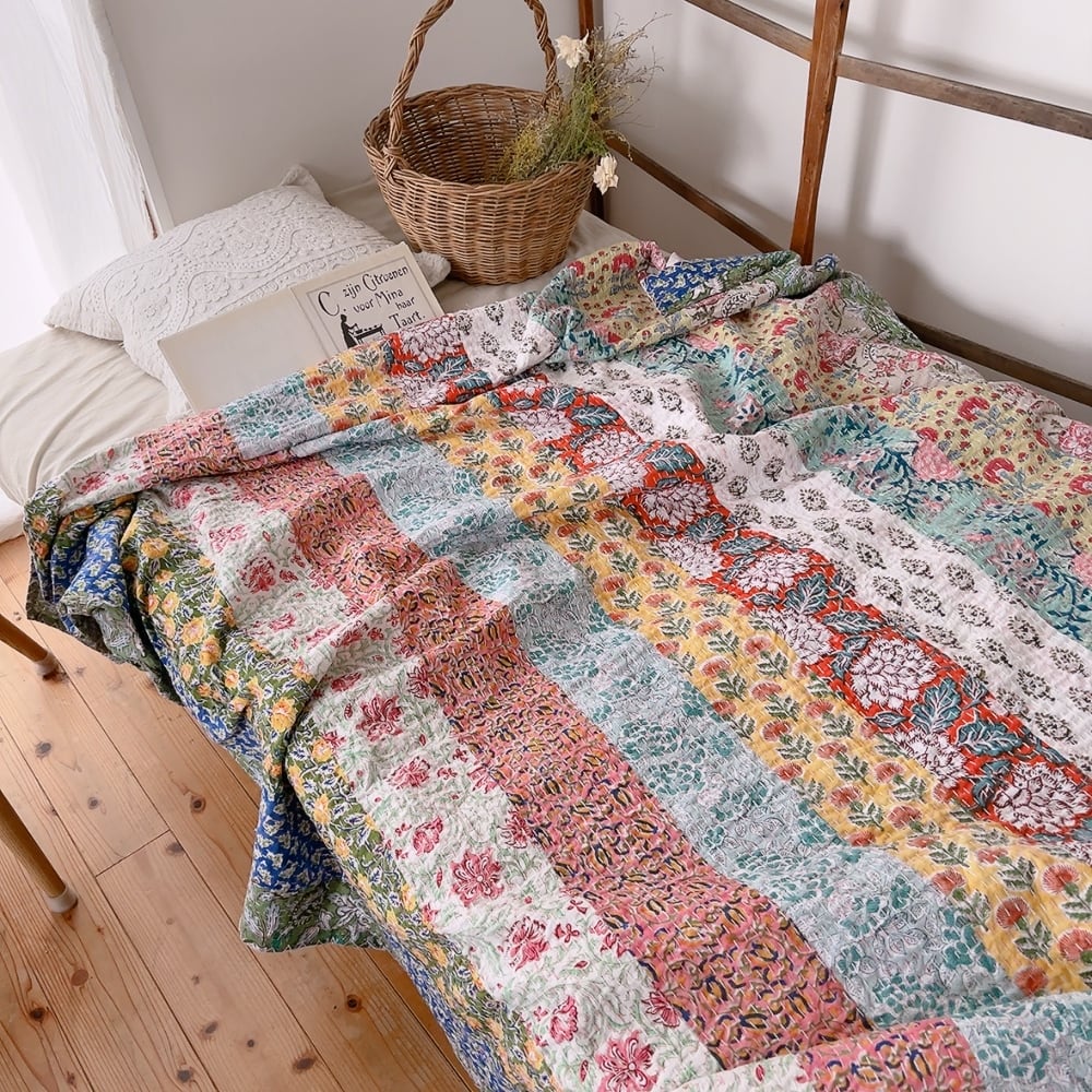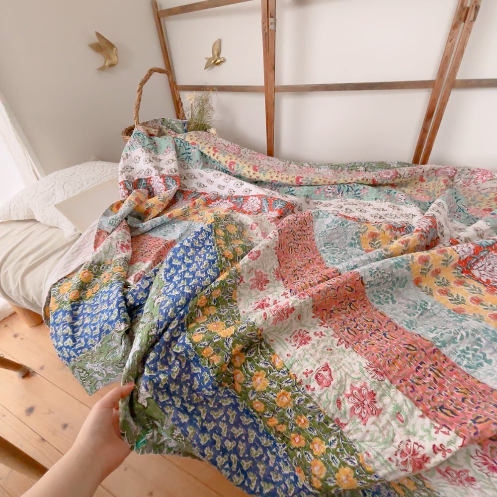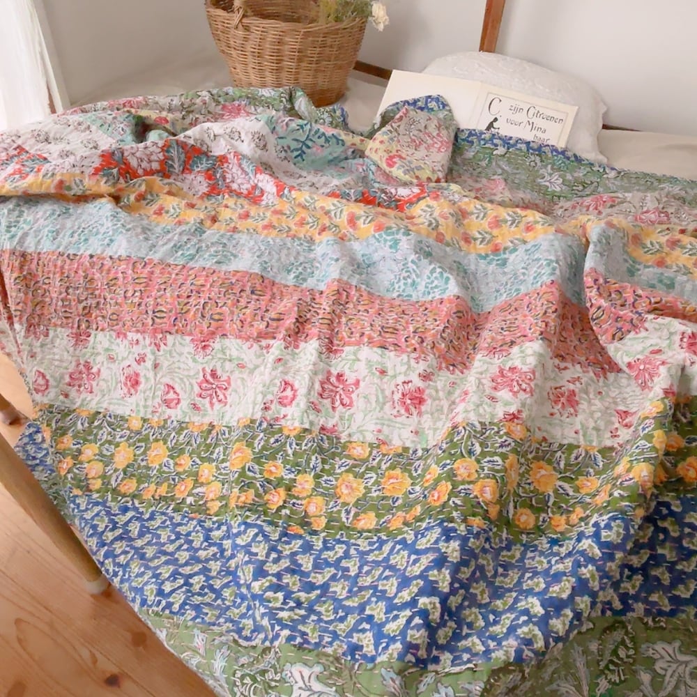ブロックプリントのカンタキルトです。