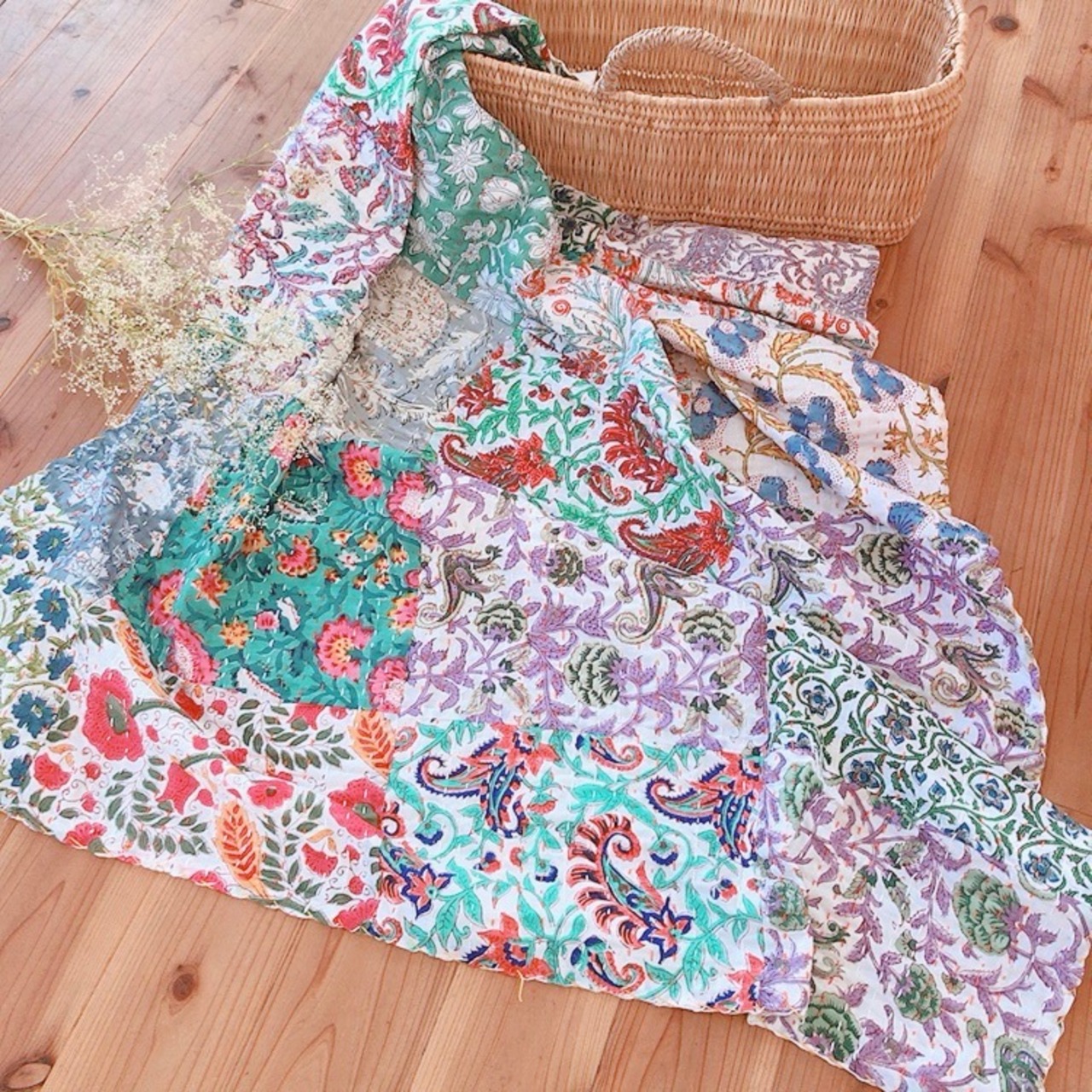 可愛らしいパッチワークのキルトです。