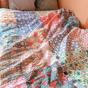 B(M)ベッドカバー パッチワークキルト ブッロクプリント