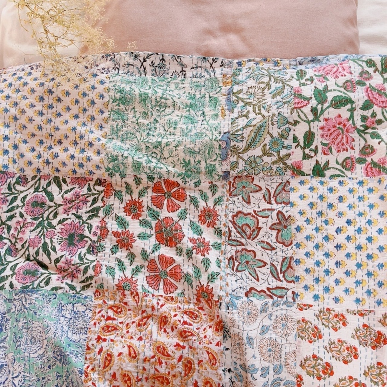 (M)ホワイトパッチワークキルト ベッドカバー ソファーカバー カンタキルト