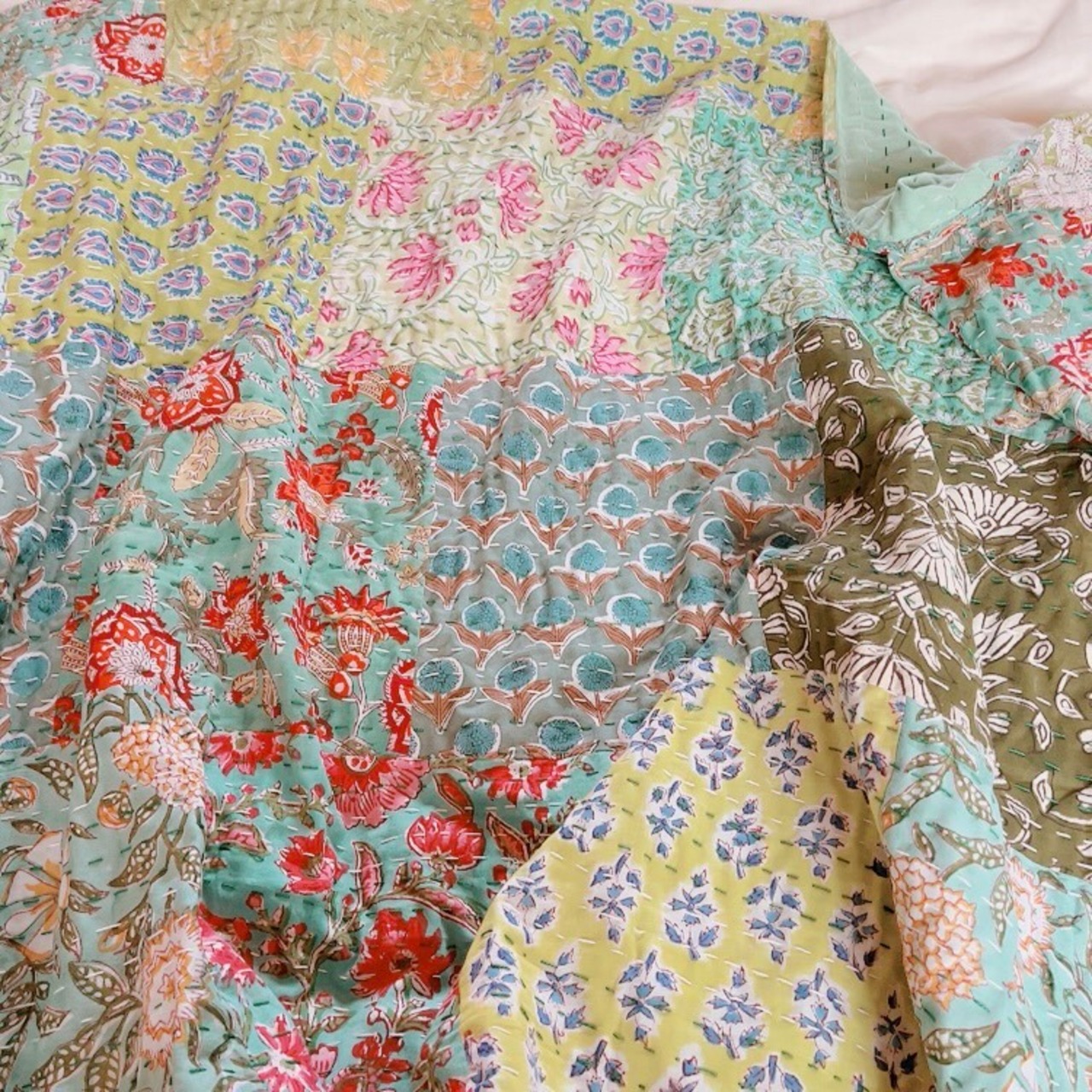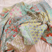 (S)FOREST グリーン系パッチワーク ベビーキルト ひざかけ ブッロクプリントキルト