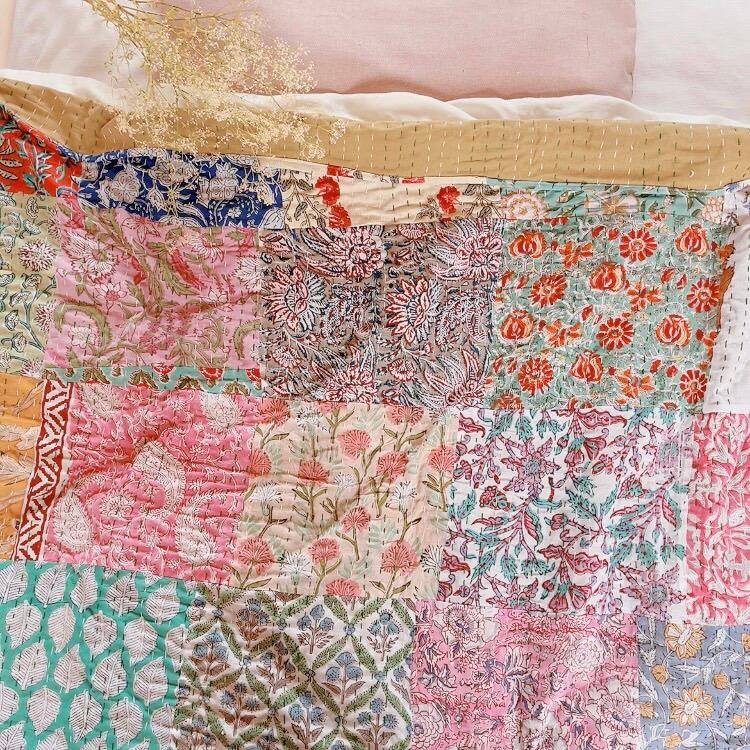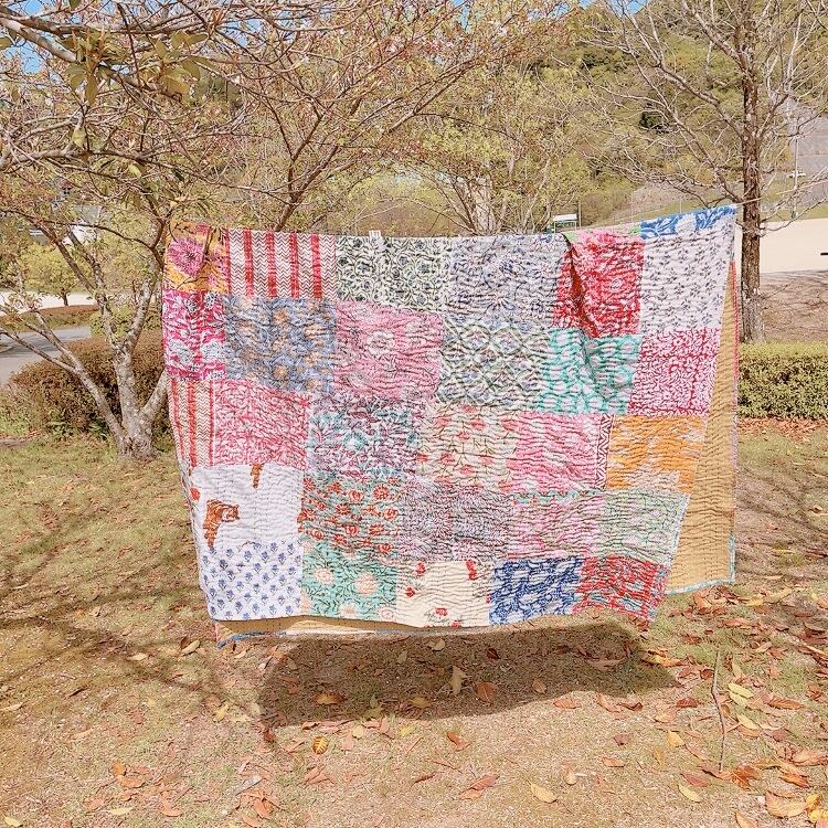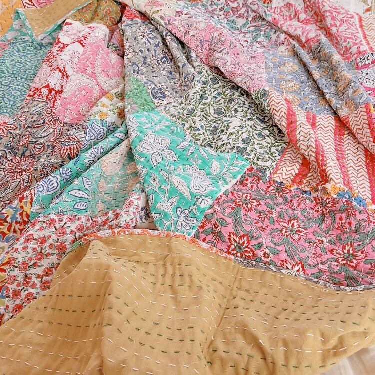 (M)アンバーパッチワークキルト ベッドカバー ソファーカバー カンタキルト